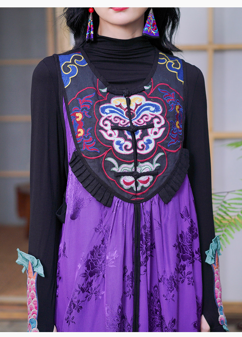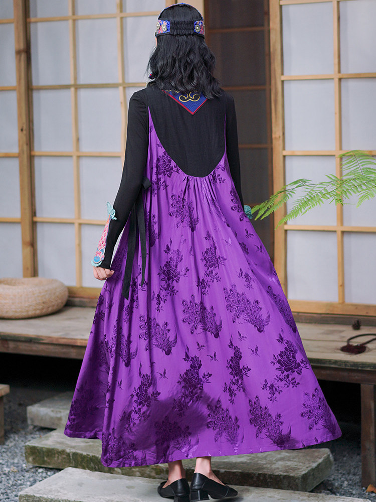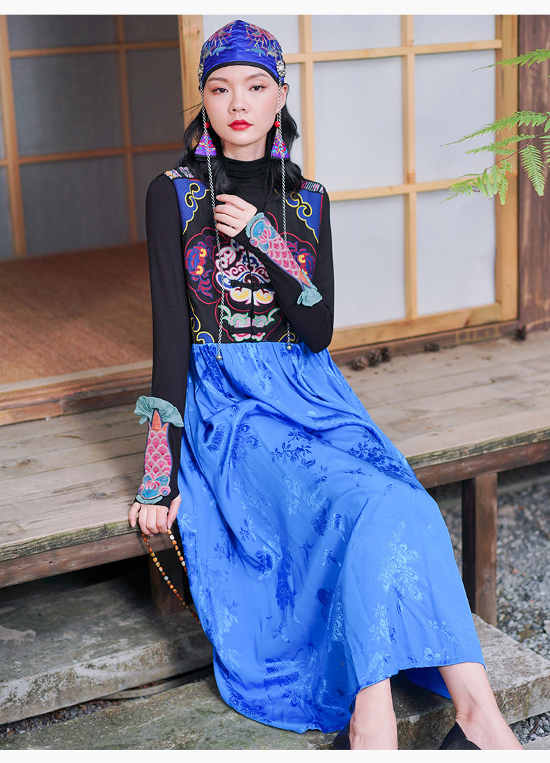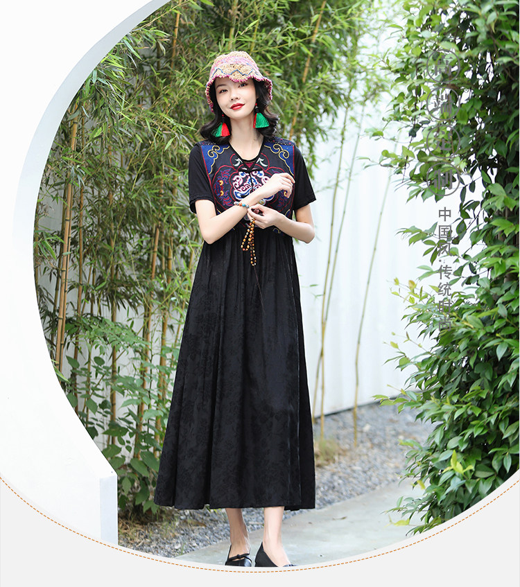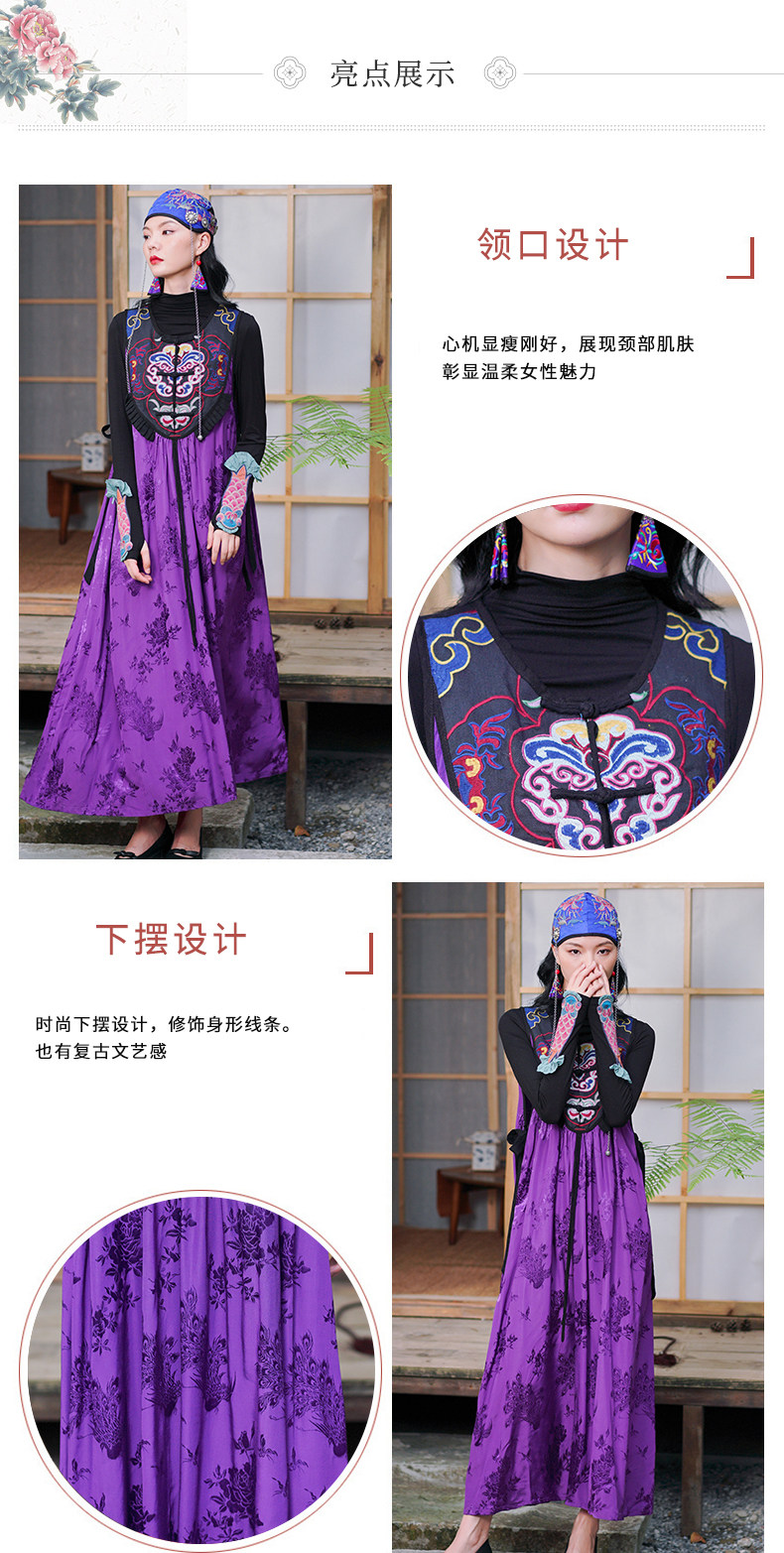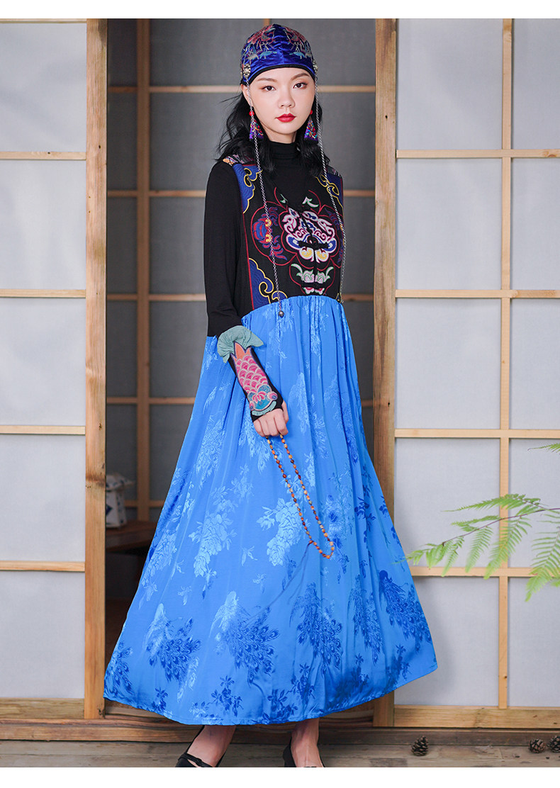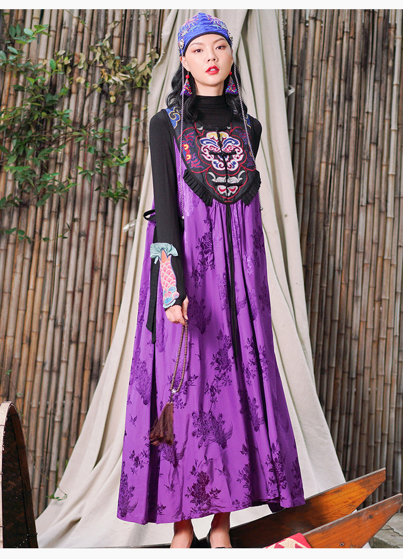 Этническая длинная юбка, платье без рукавов, этнический стиль, с вышивкой, V-образный вырез, А-силуэт