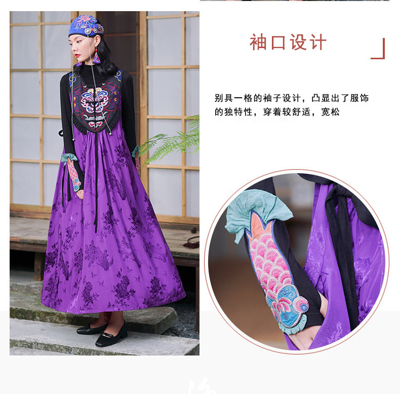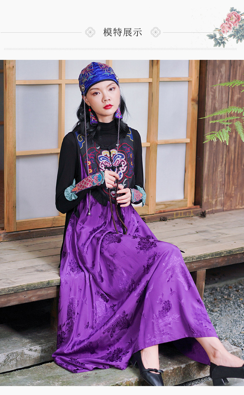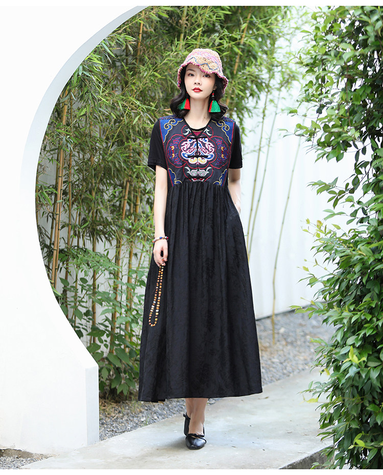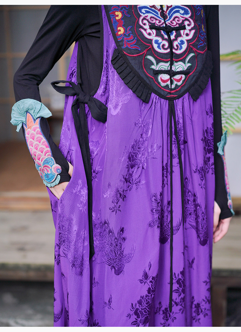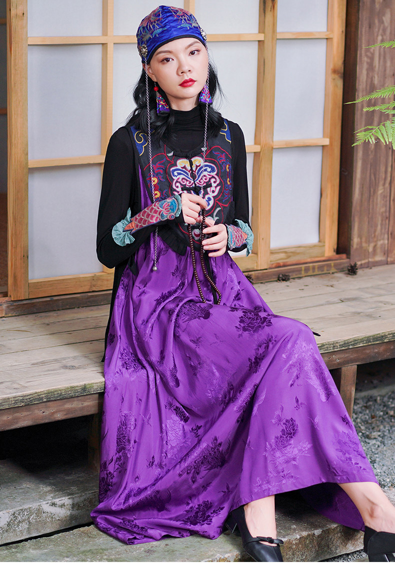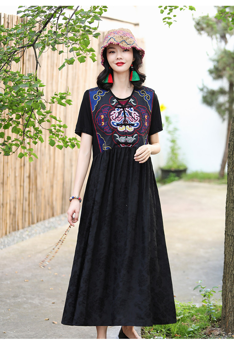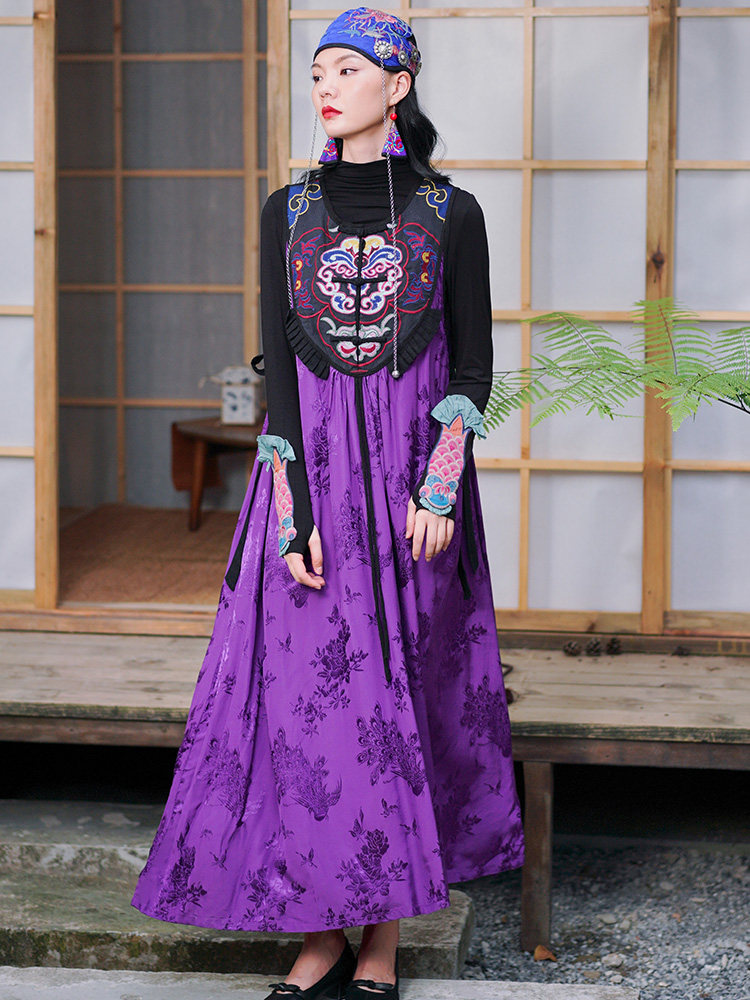 Этническая длинная юбка, платье без рукавов, этнический стиль, с вышивкой, V-образный вырез, А-силуэт