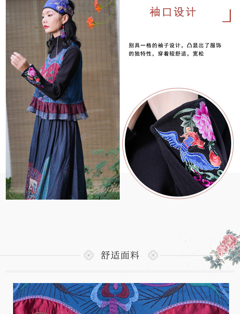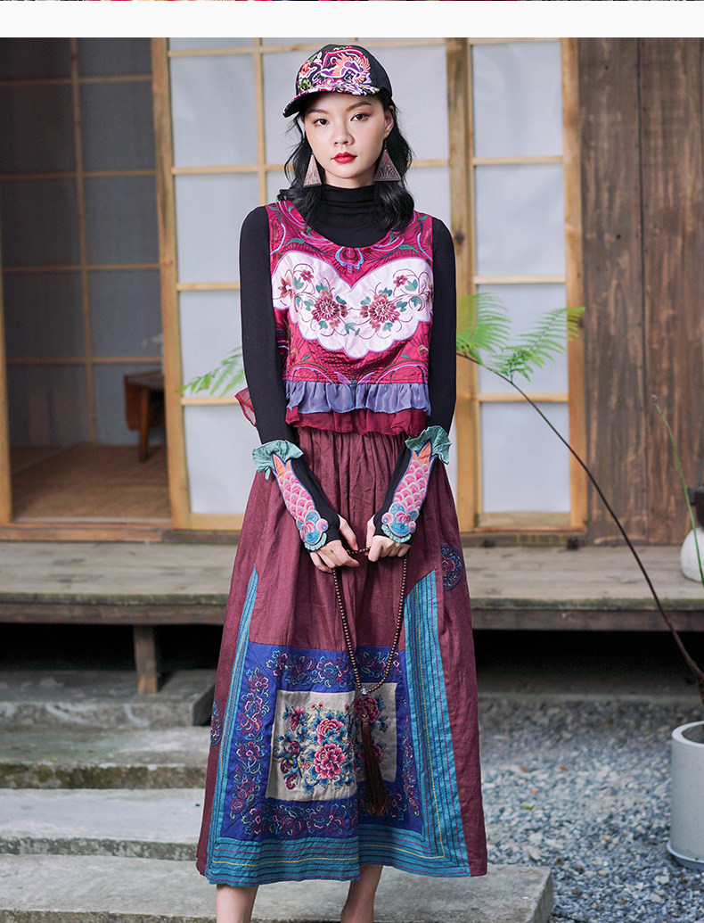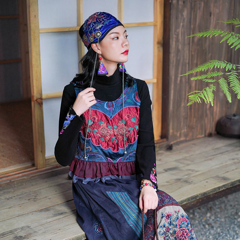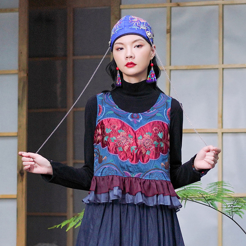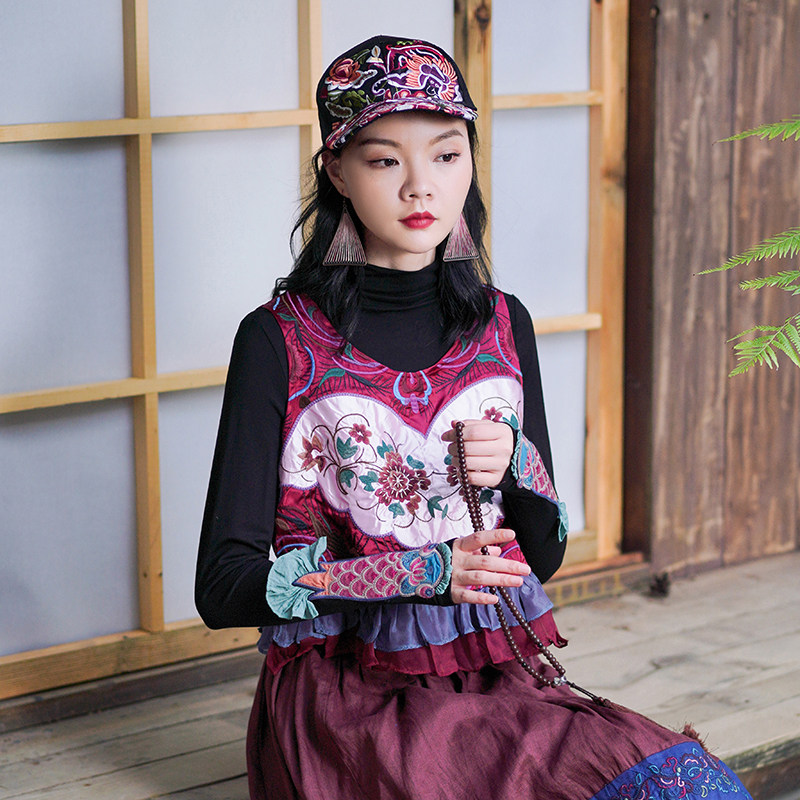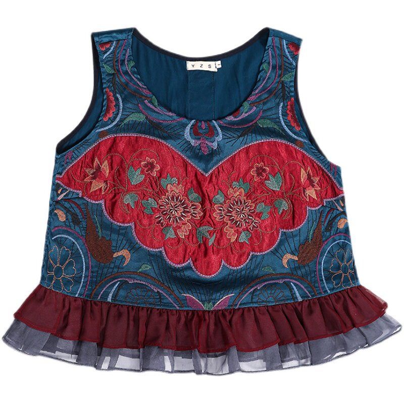 Этнический ретро жилет, майка без рукавов, футболка, нагрудник с круглым воротником, куртка, этнический стиль, с вышивкой