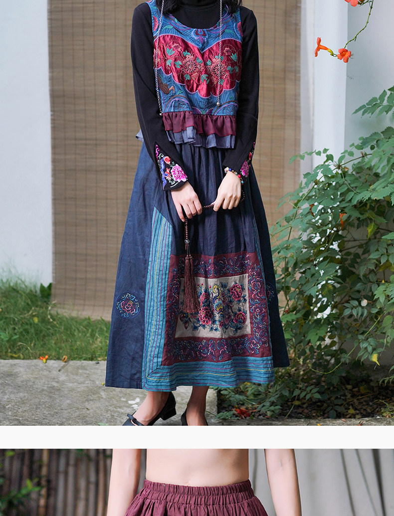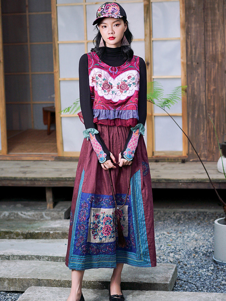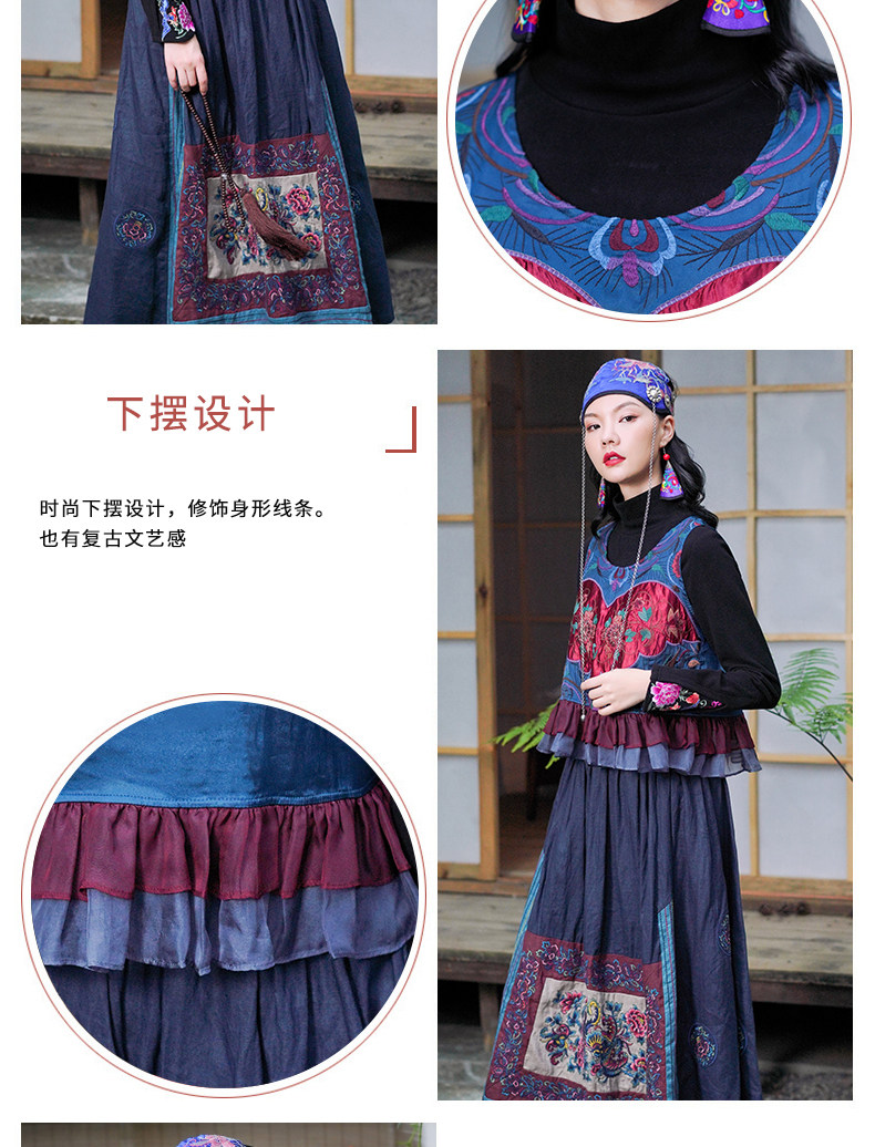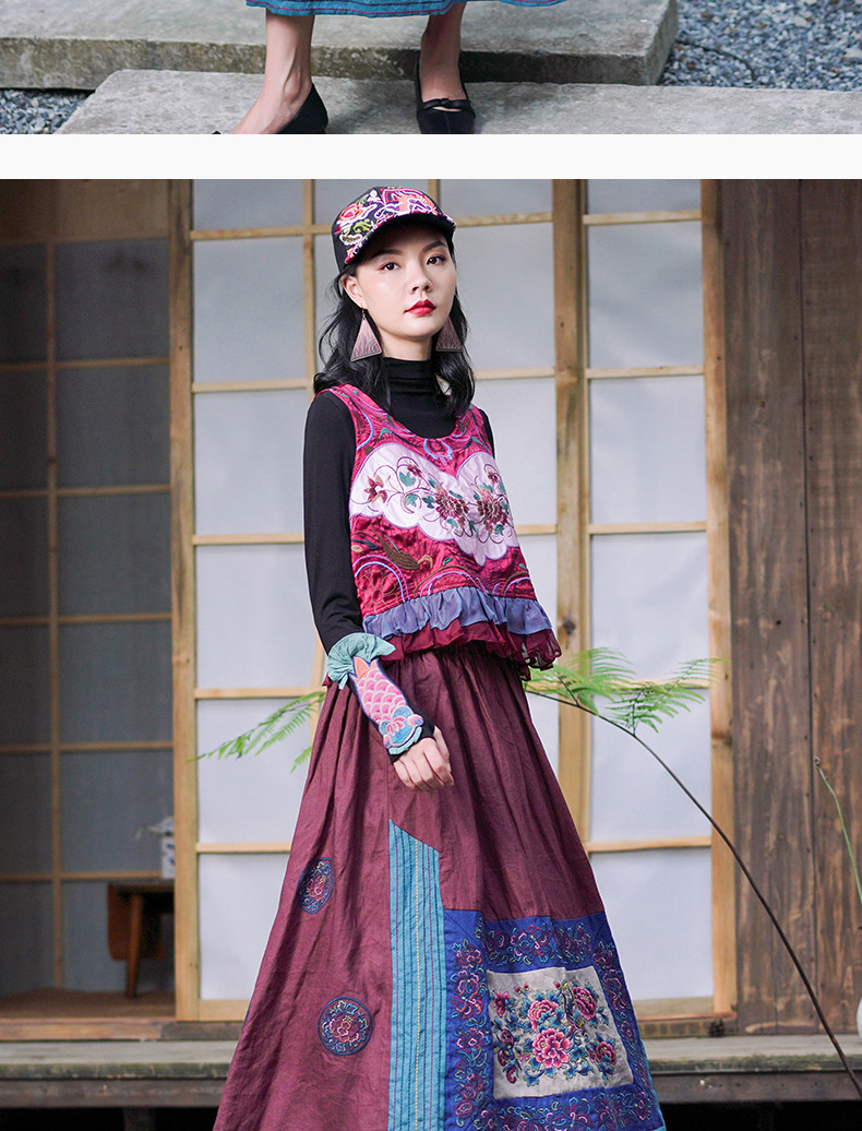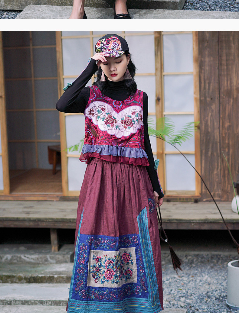 Этнический ретро жилет, майка без рукавов, футболка, нагрудник с круглым воротником, куртка, этнический стиль, с вышивкой