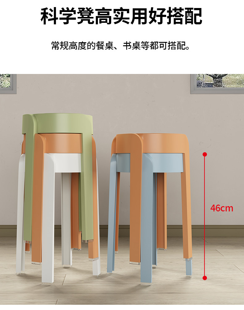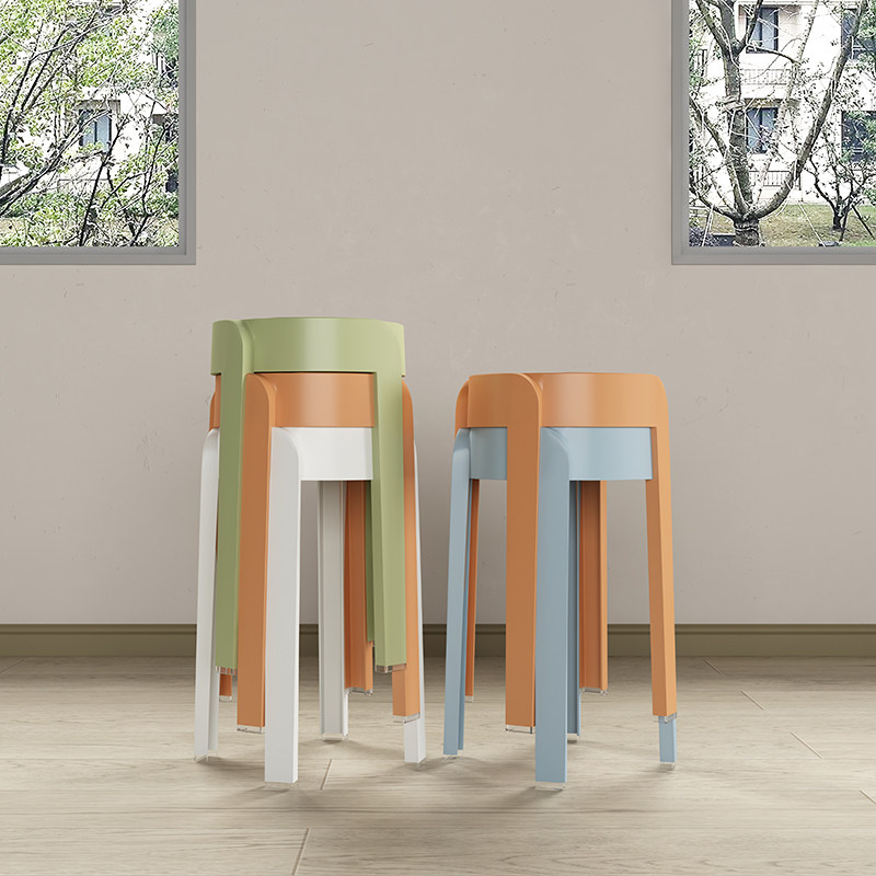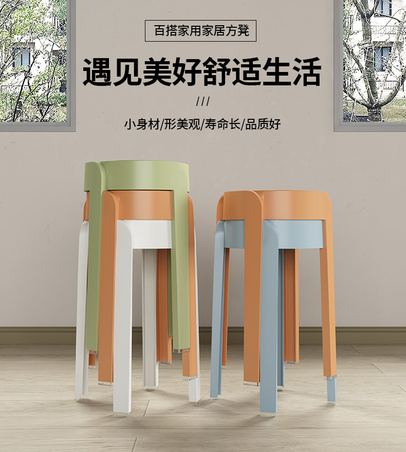 Пластиковый табурет, утолщенный бытовой штабелируемый обеденный стол, скамейка, круглый табурет, модный креативный высокий табурет, простой скандинавский стул