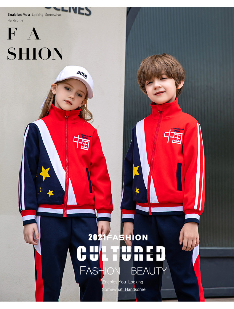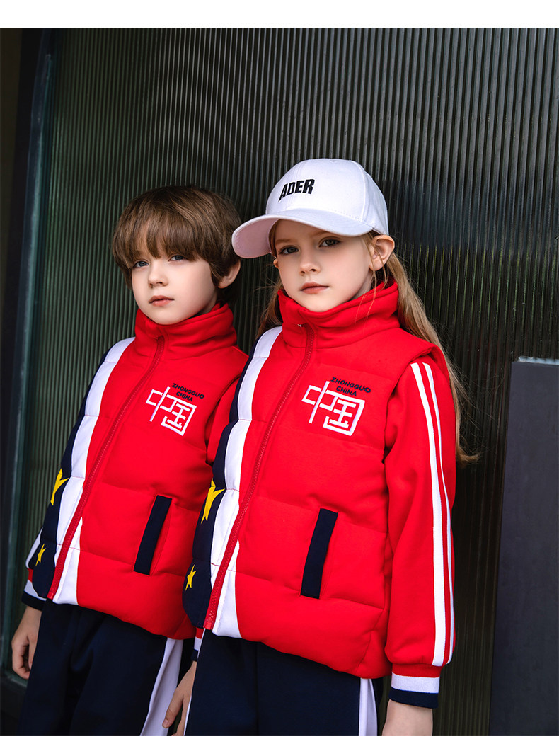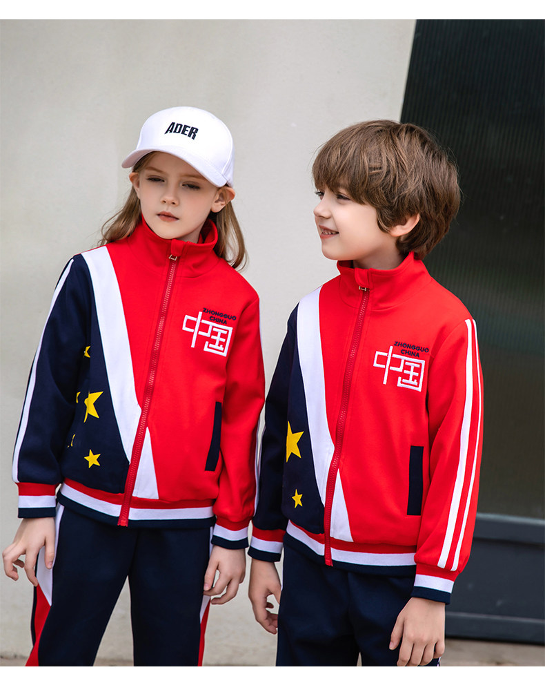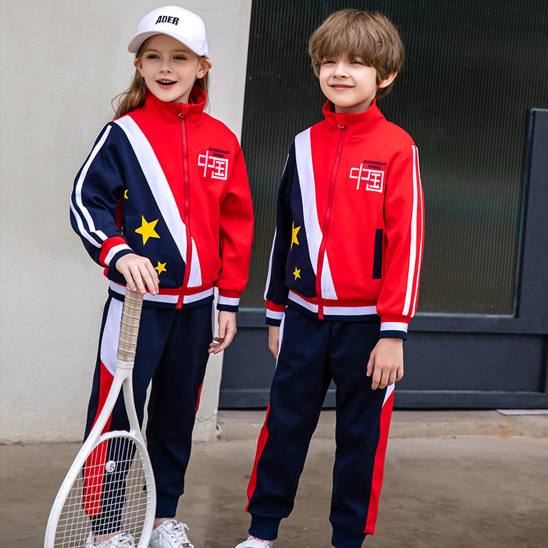 Осенняя детская красная цветная форма для школьников, спортивный зимний жилет для детского сада, комплект, китайский стиль, 3 предмета