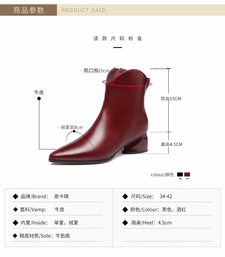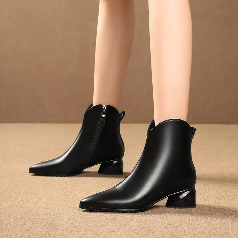 Демисезонные флисовые универсальные короткие сапоги с заостренным носом, большой размер