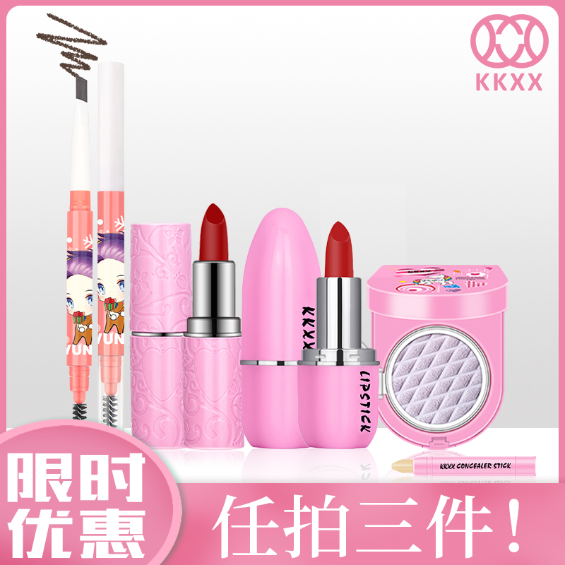 Мультяшная розовая помада, кушон, консилер-стик, карандаш для бровей, комплект, 3 шт, Южная Корея, 3 предмета