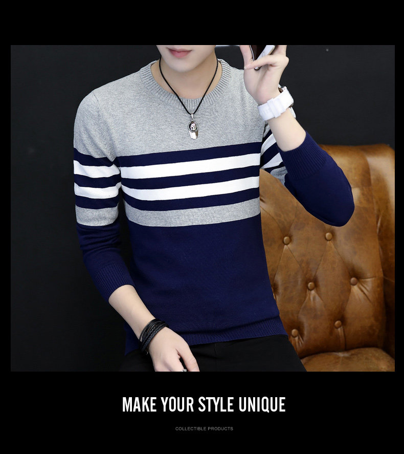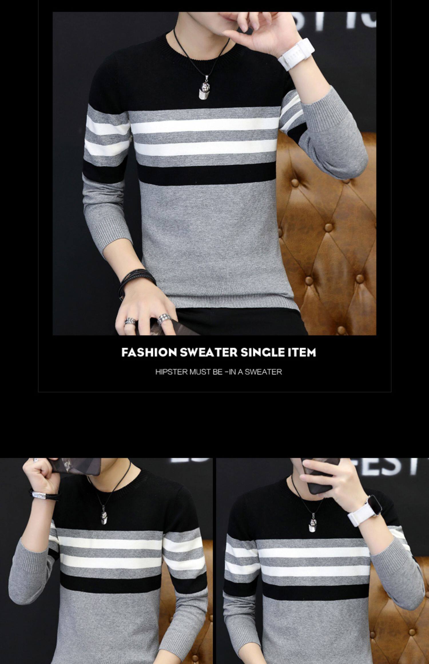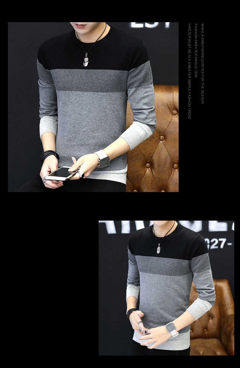Демисезонный трендовый трикотажный шерстяной свитер с круглым воротником