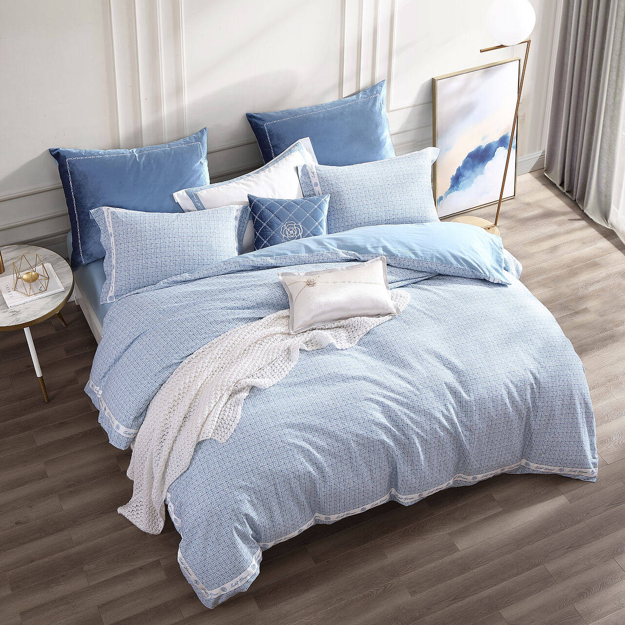 | Ширина кровати: | Подходит для кровати шириной 1,2 м, 150*200 см (комплект из трех предметов), Подходит для кровати шириной 1,5 м, 200*230 см (комплект из четырех предметов), Подходит для кровати длиной 1,8 м, 220*240 см (комплект из четырех предметов), Подходит для кровати длиной 1,8 м, 248*248 см (комплект из четырех предметов) |
