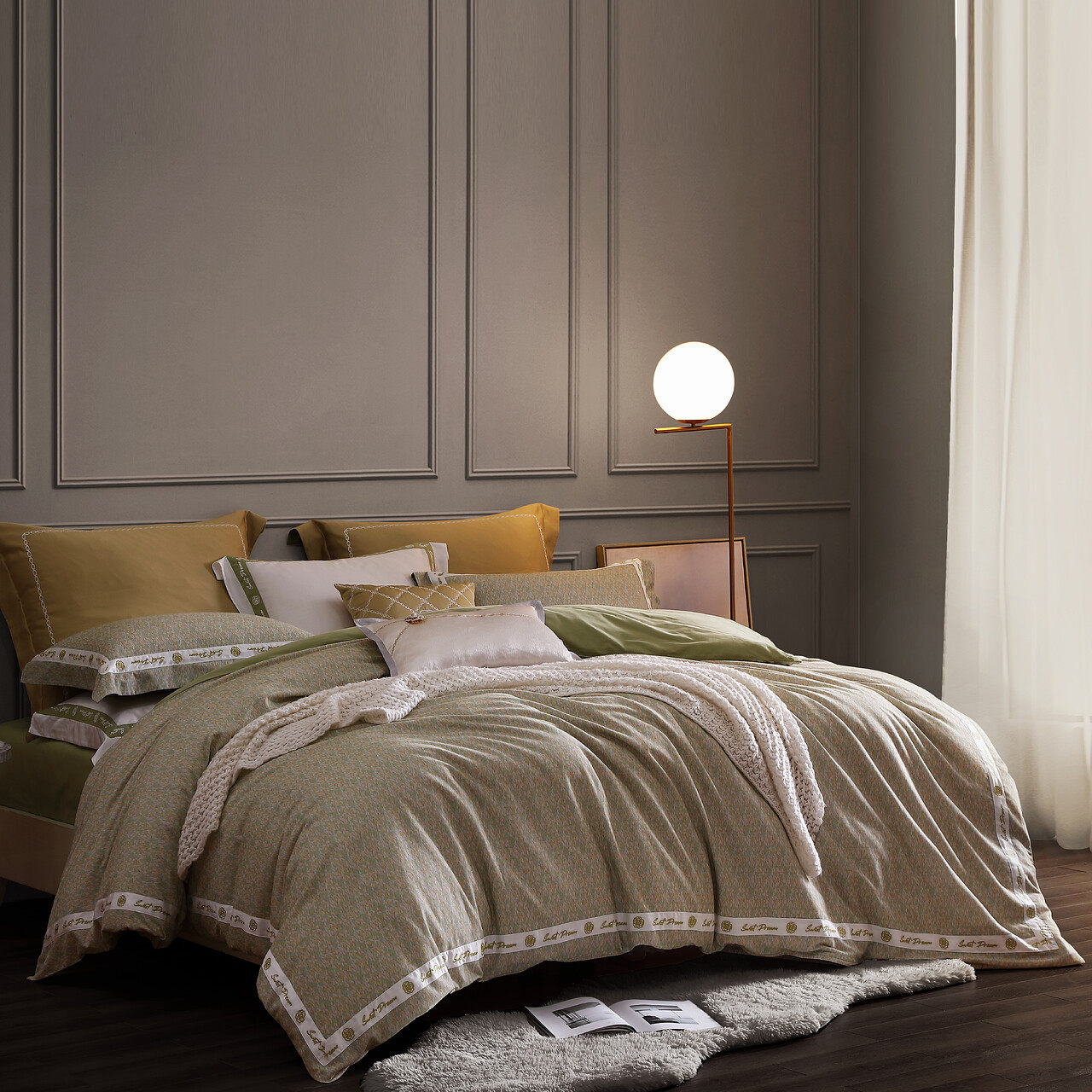 - Подходит для кровати длиной 1,8 м, 220*240 см (комплект из четырех предметов)