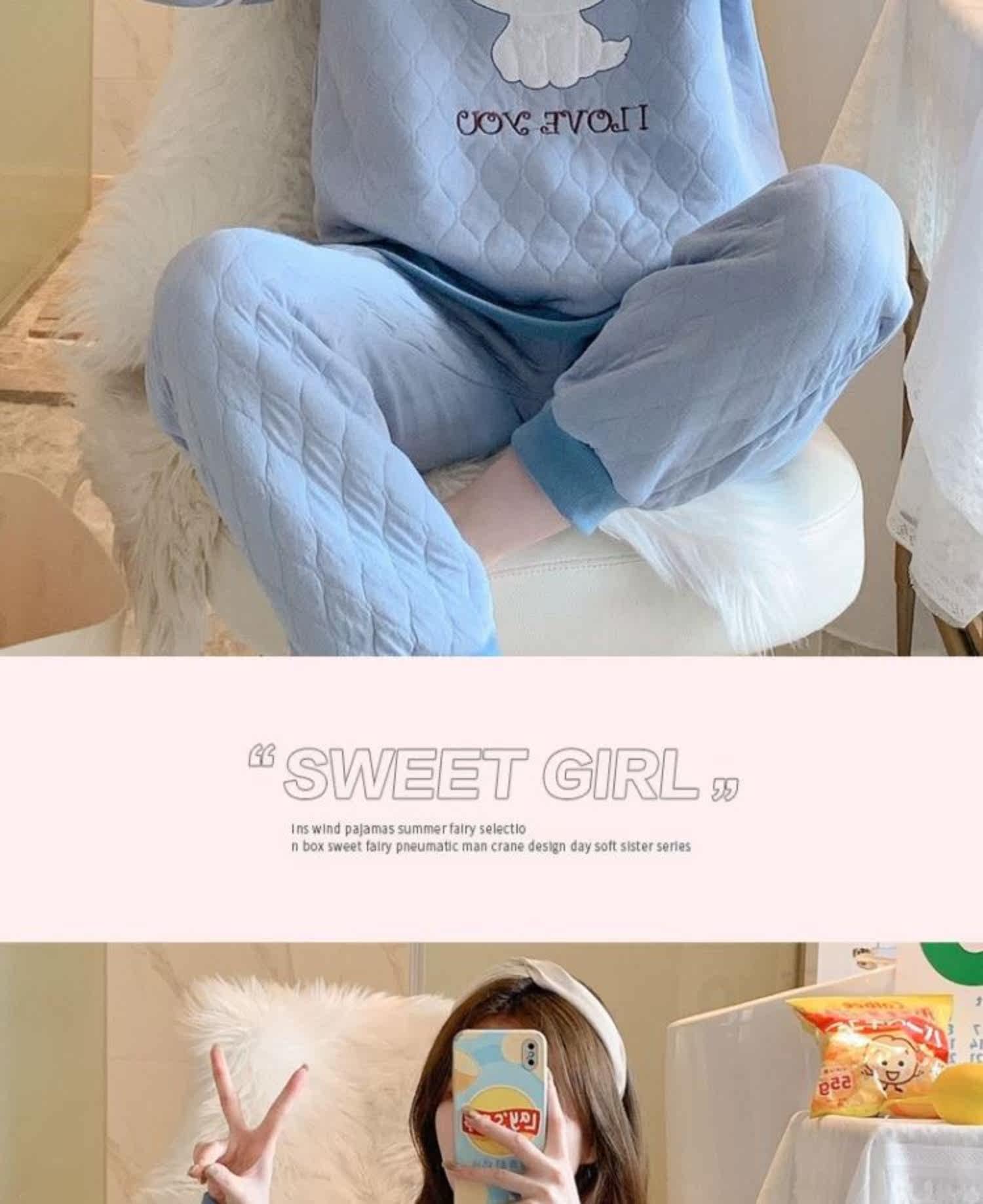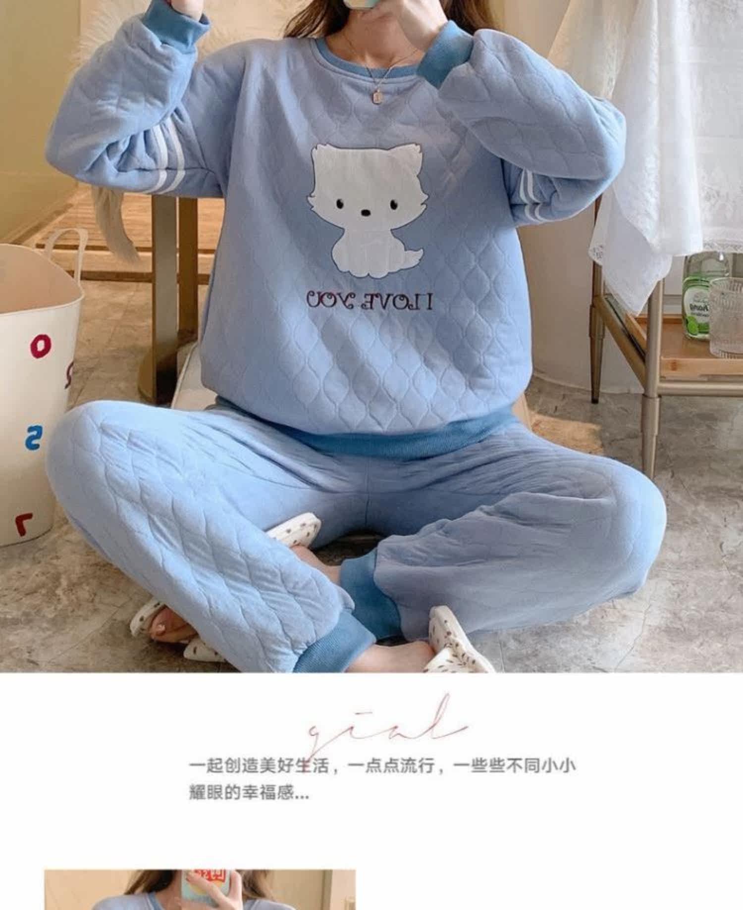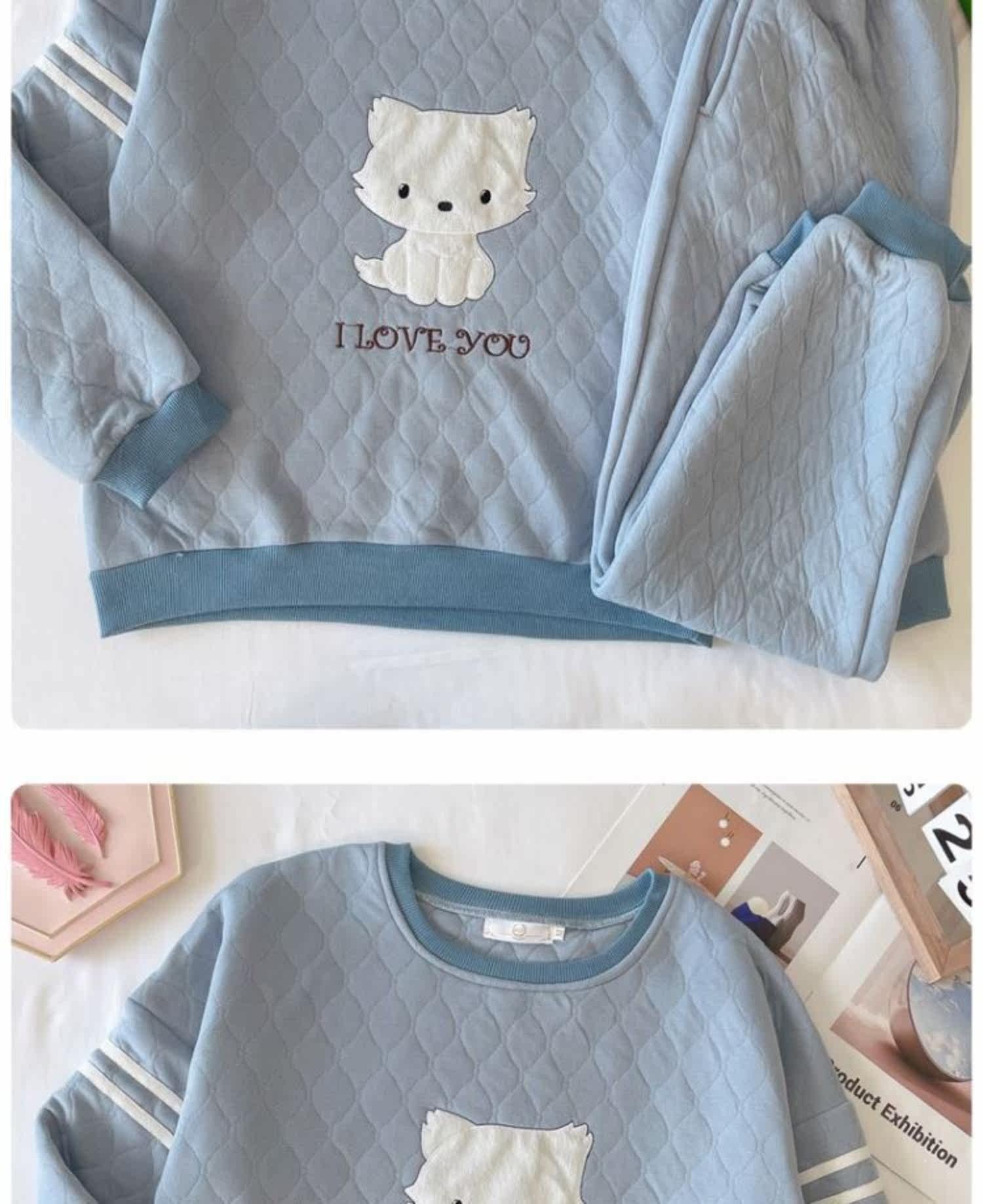 Стеганая пижама, демисезонный мультяшный милый спортивный лонгслив для школьников и студентов, комплект, 2021 года