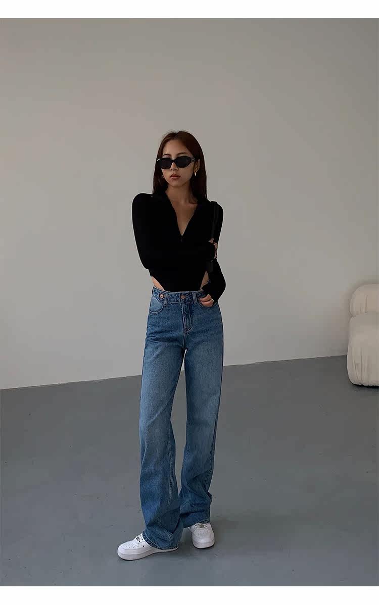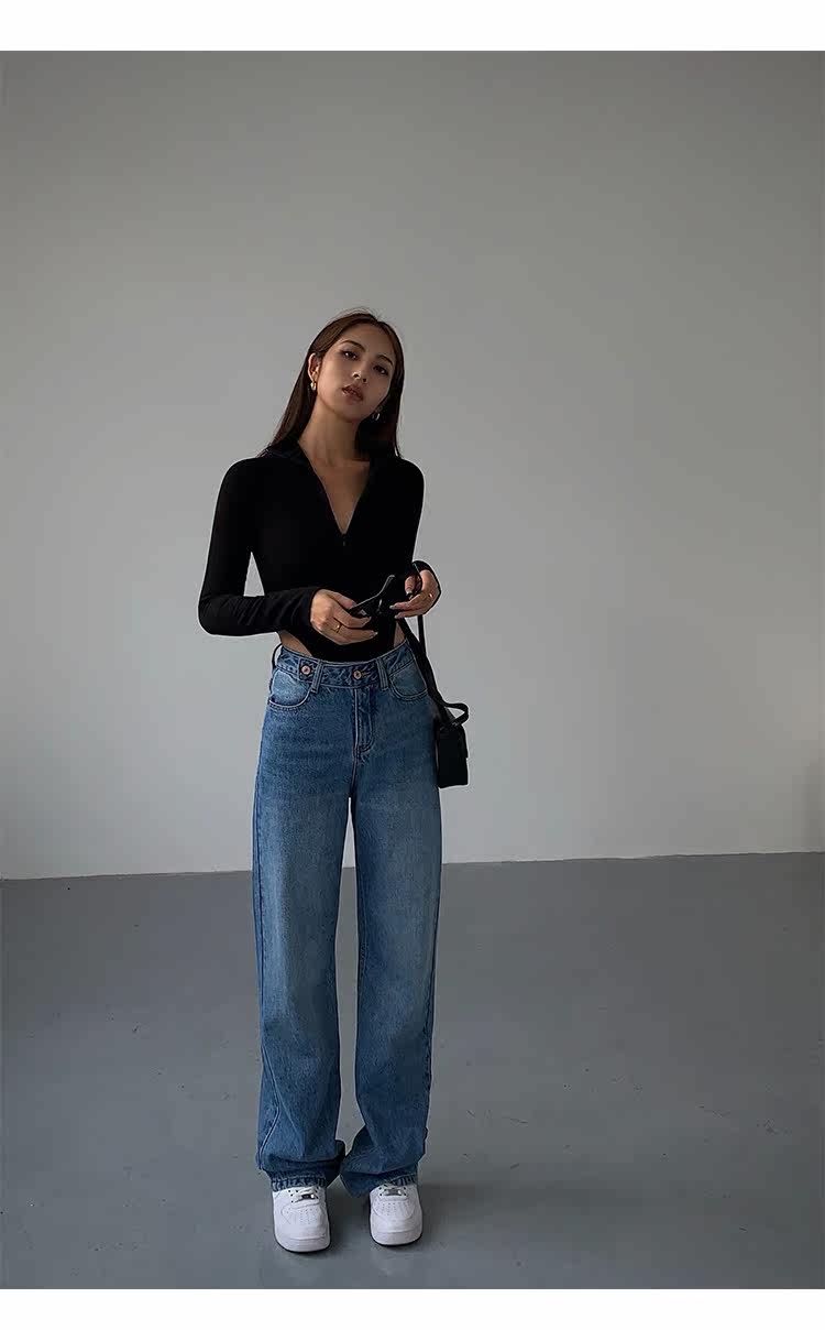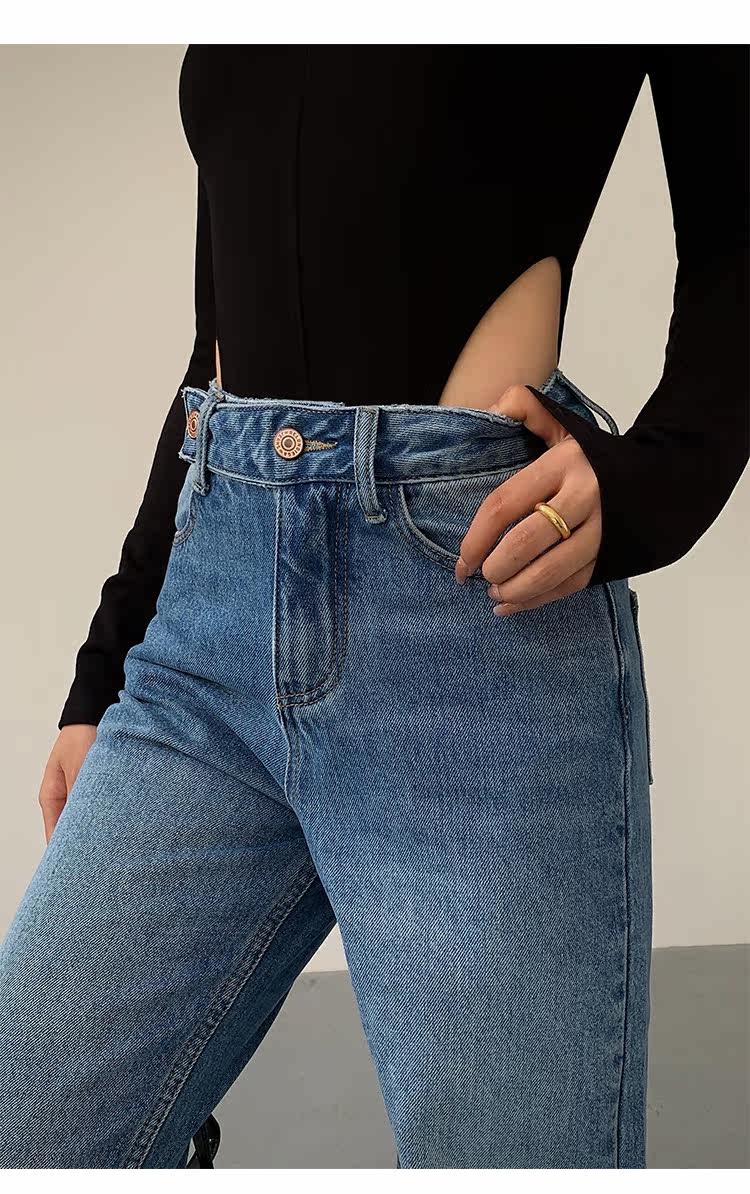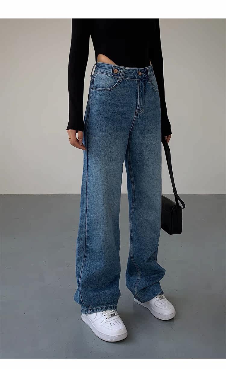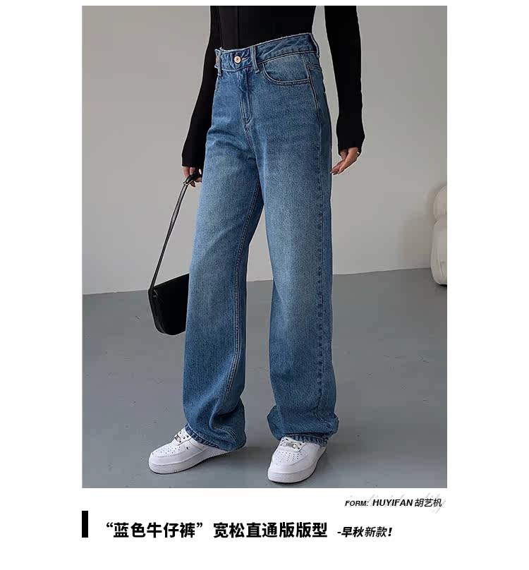 Синие весенние джинсы, штаны, высокая талия, свободный прямой крой