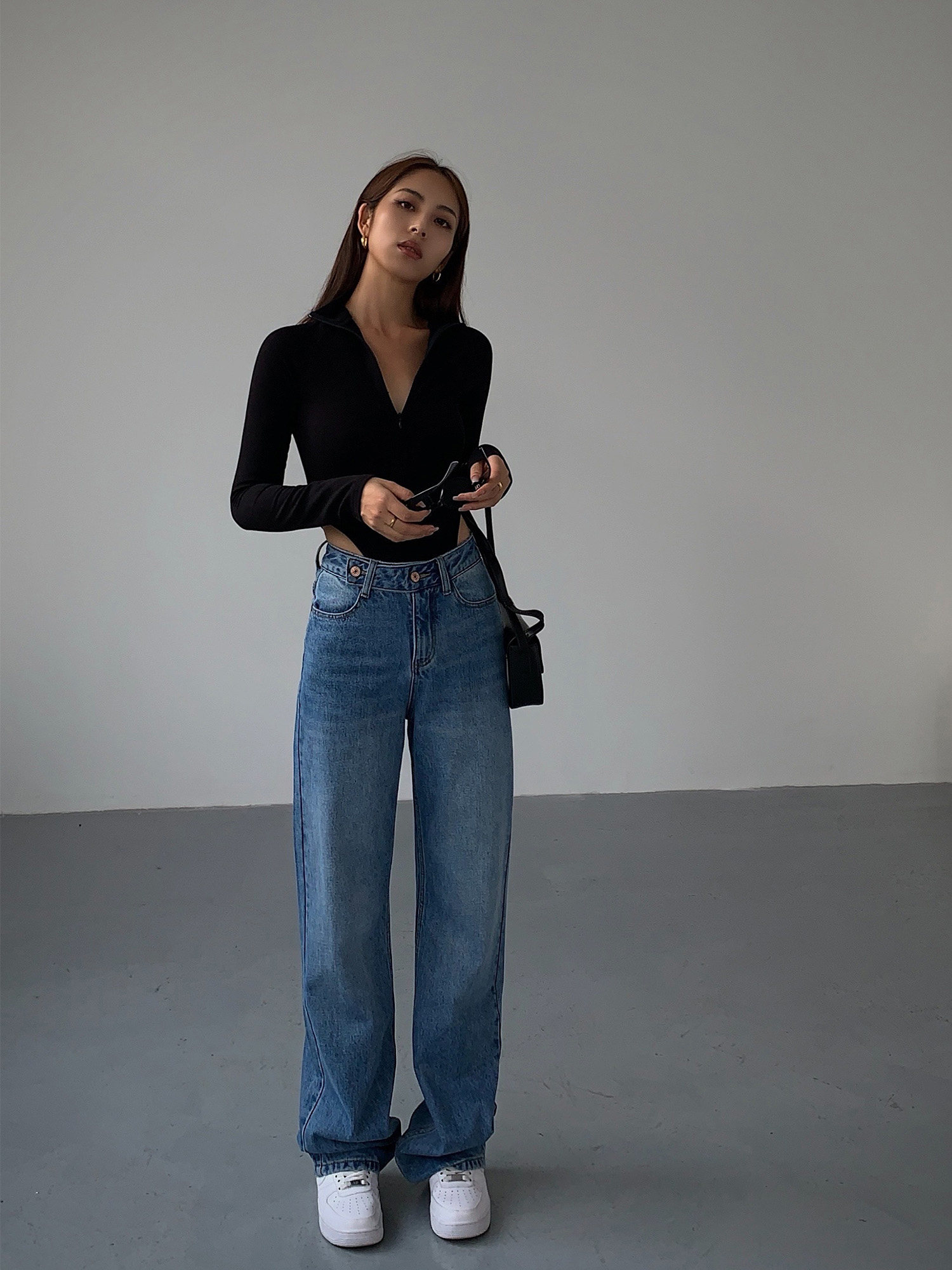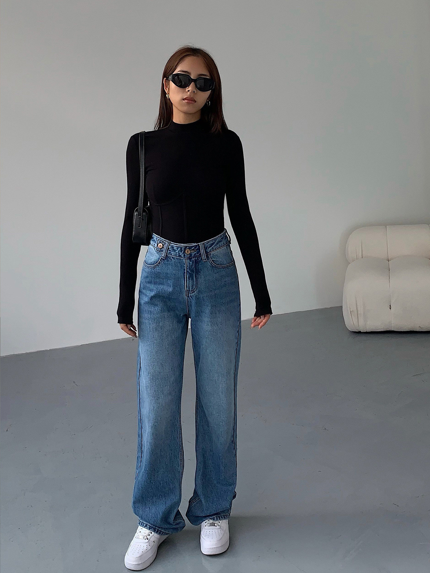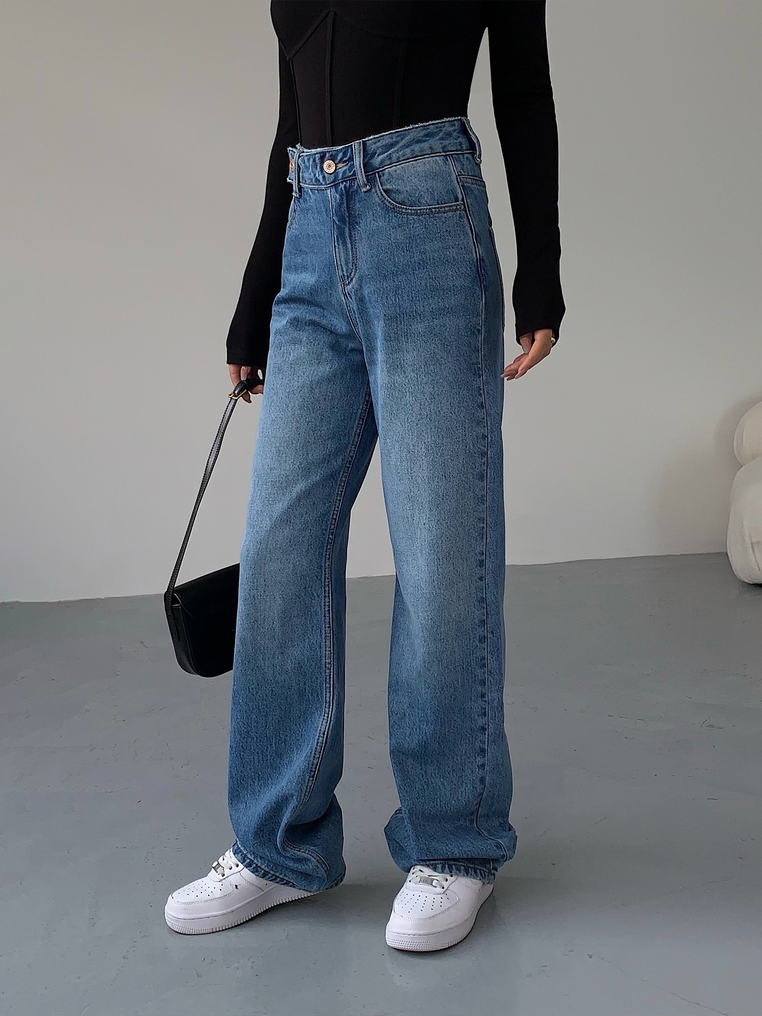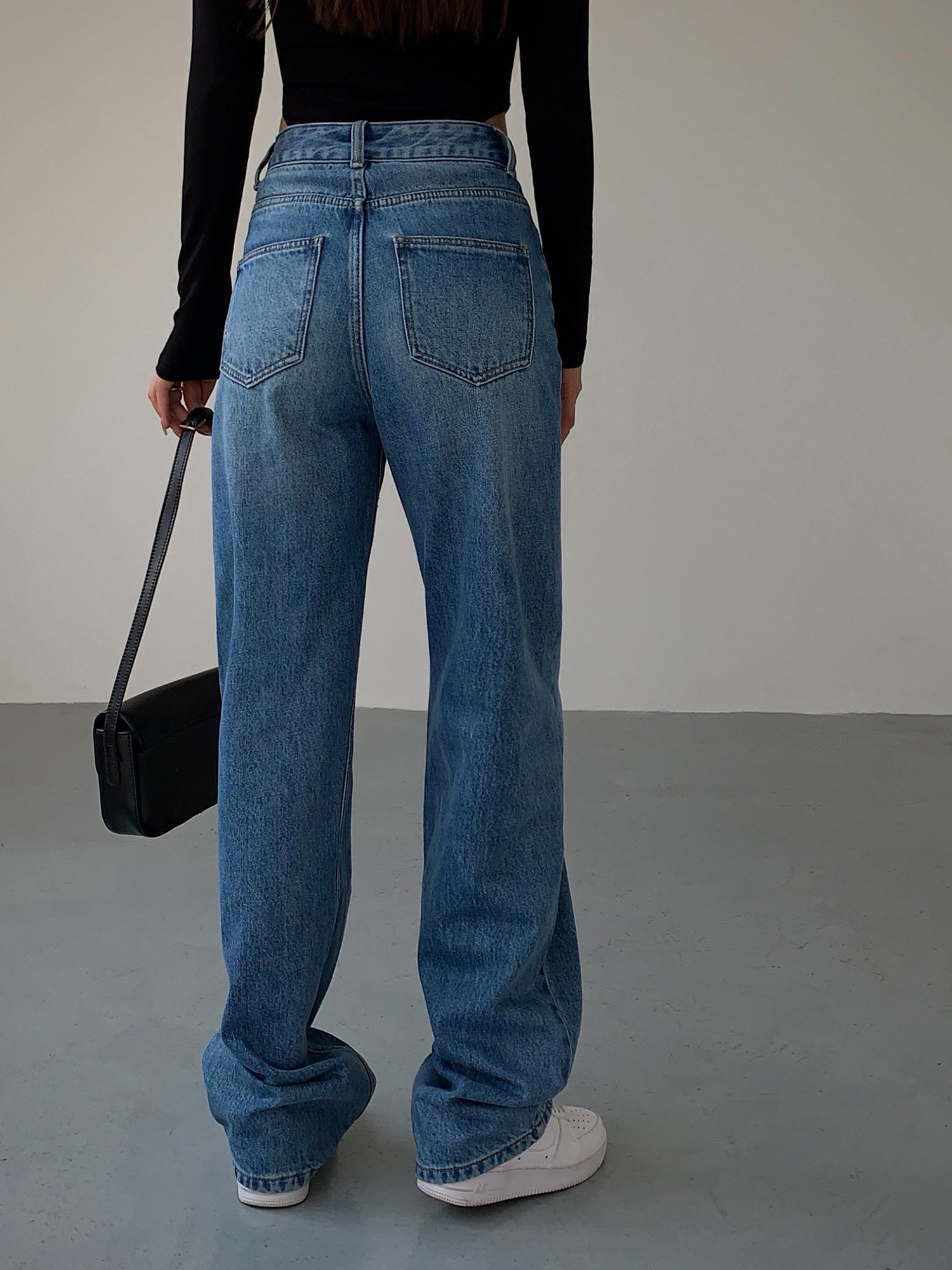 Синие весенние джинсы, штаны, высокая талия, свободный прямой крой
