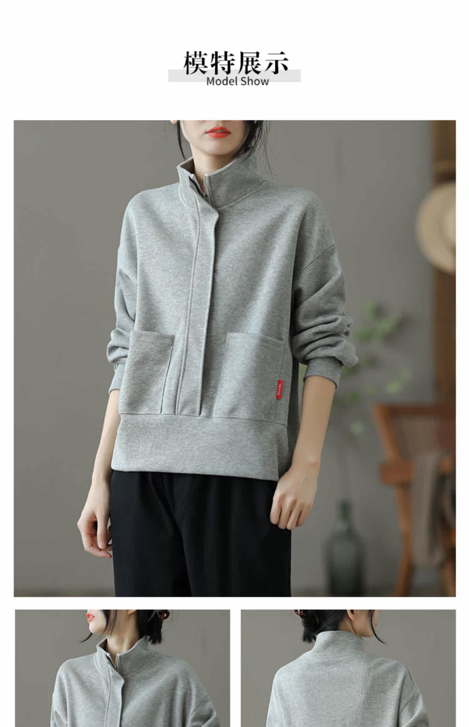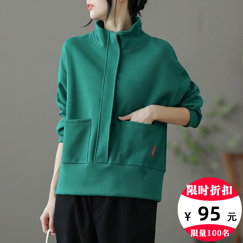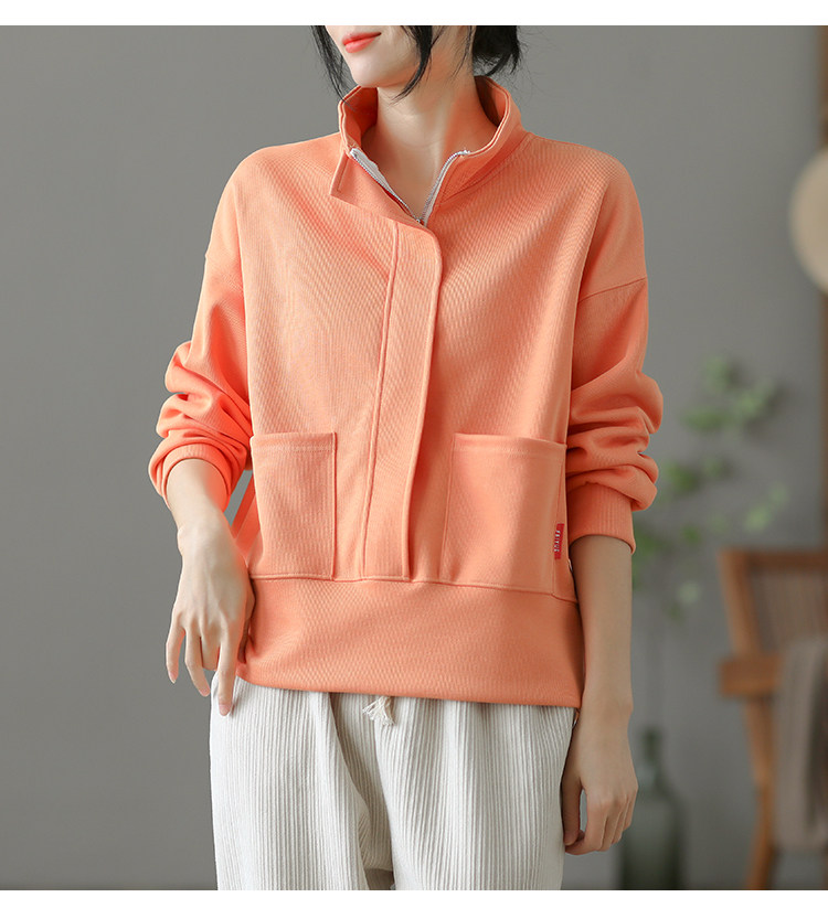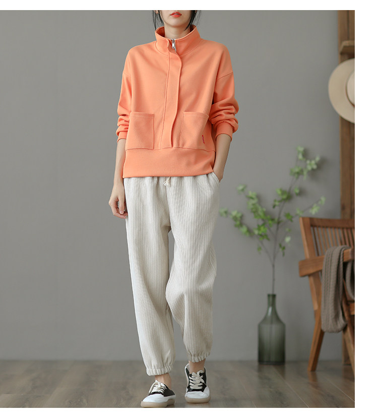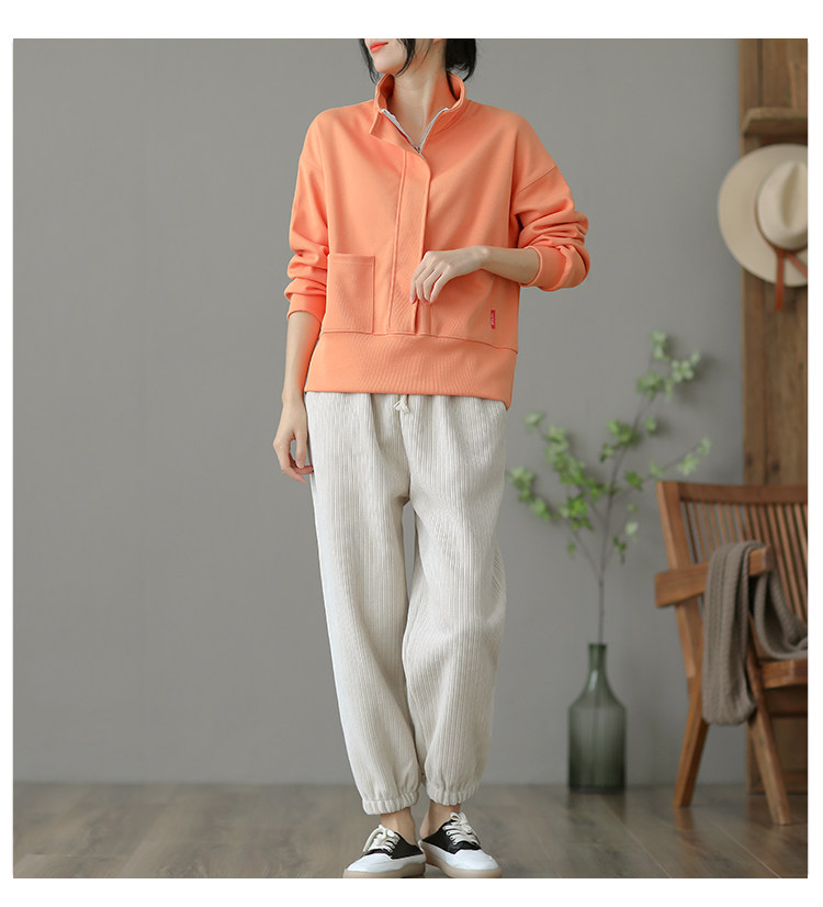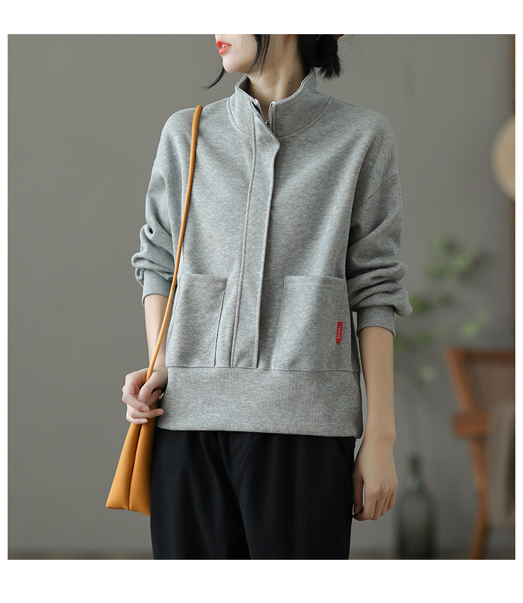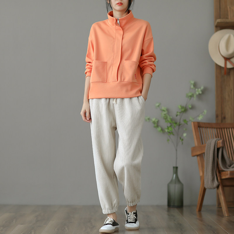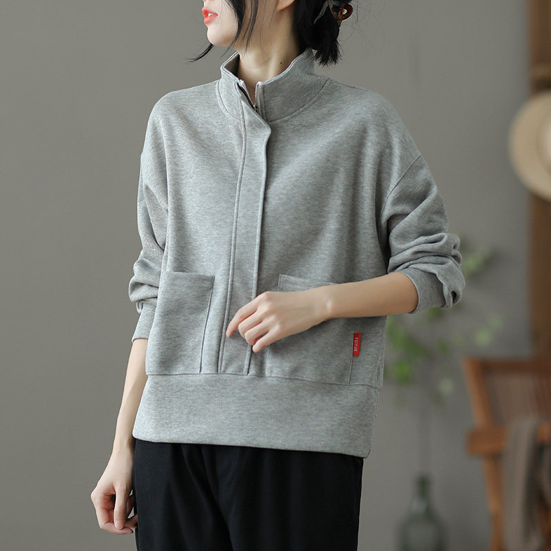 Ретро хлопковая толстовка с молнией, однотонная демисезонная осенняя куртка