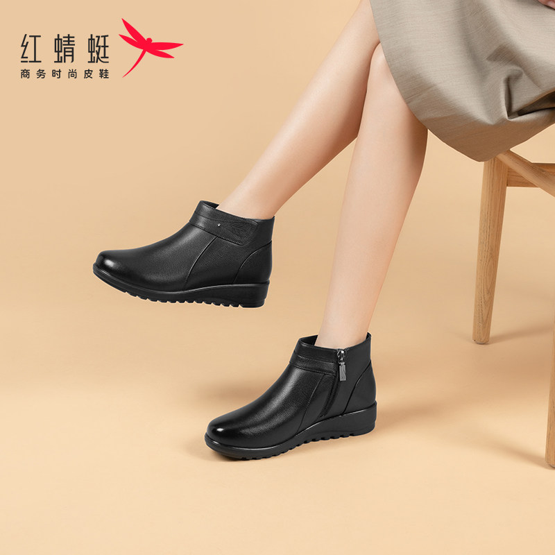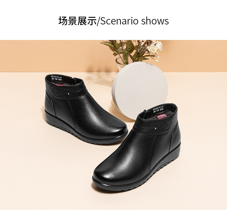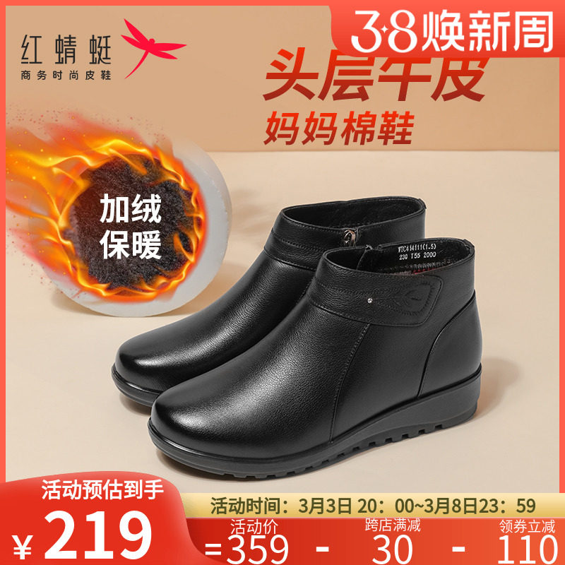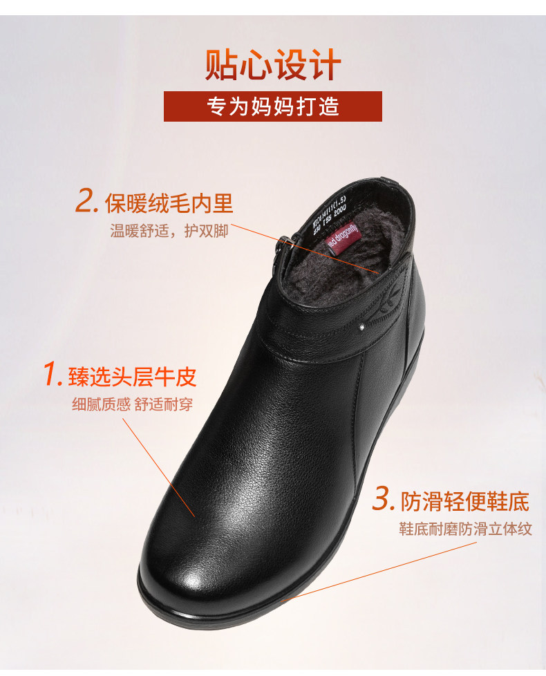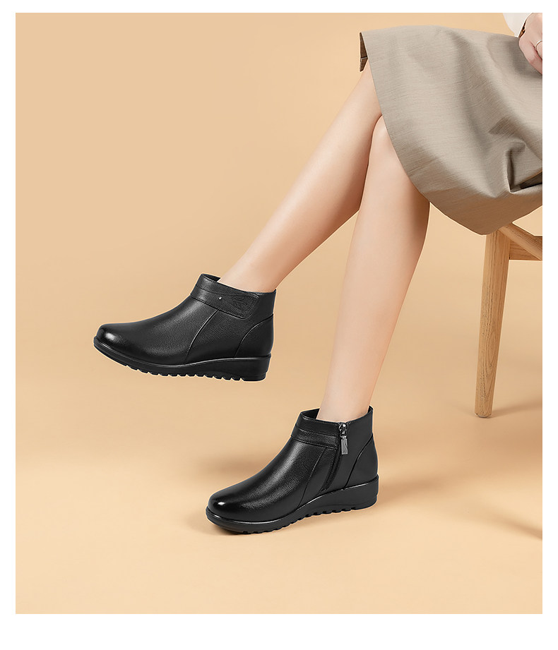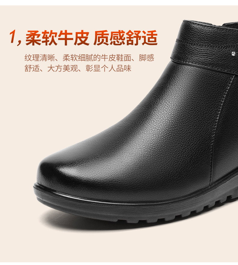 Зимняя флисовая удерживающая тепло обувь для матери, нескользящие короткие сапоги, из натуральной кожи, мягкая подошва, для среднего возраста