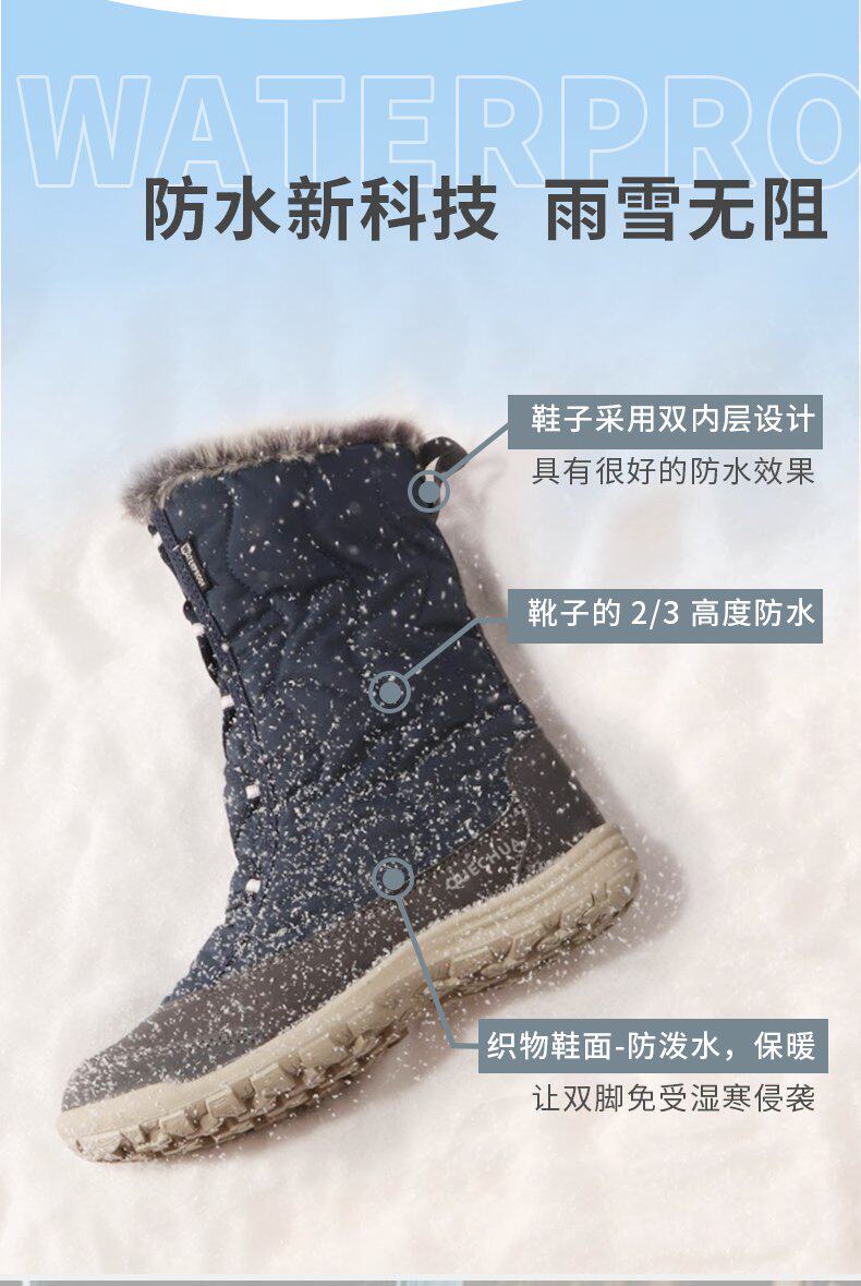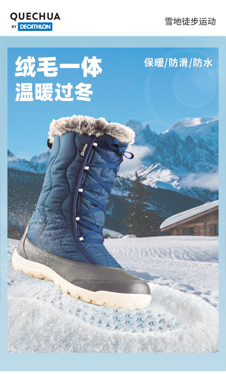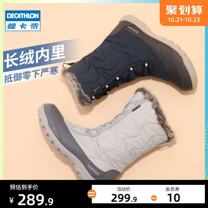Декатлон флагманский магазин Официальный веб -сайт Официальный сайт Официальный веб -сайт теплый хлопковые ботинки Женщины в зимнем сгущенном водонепроницаем