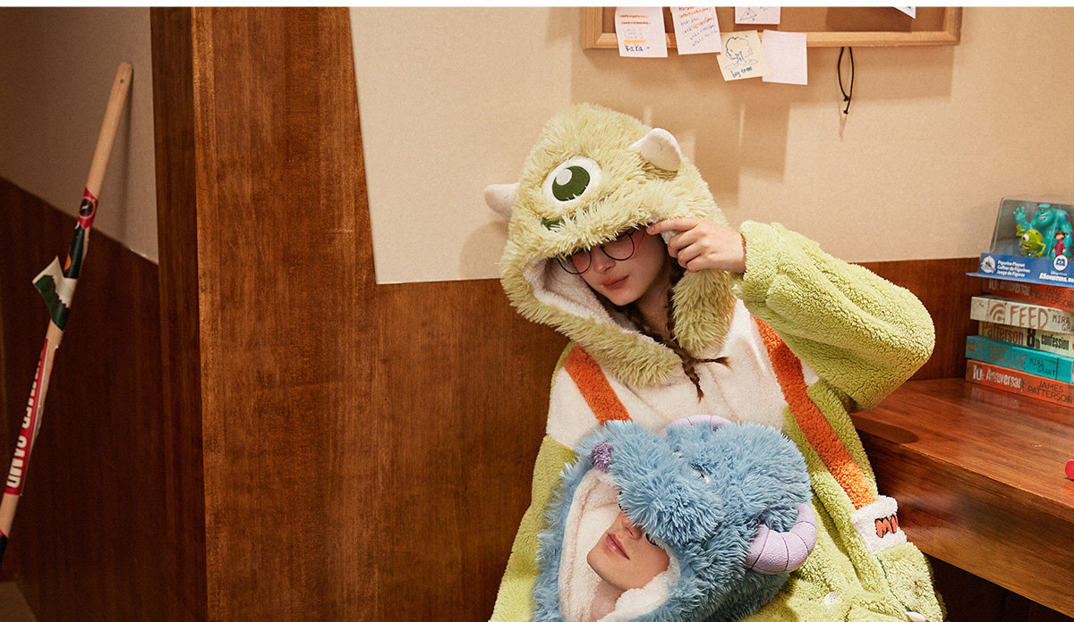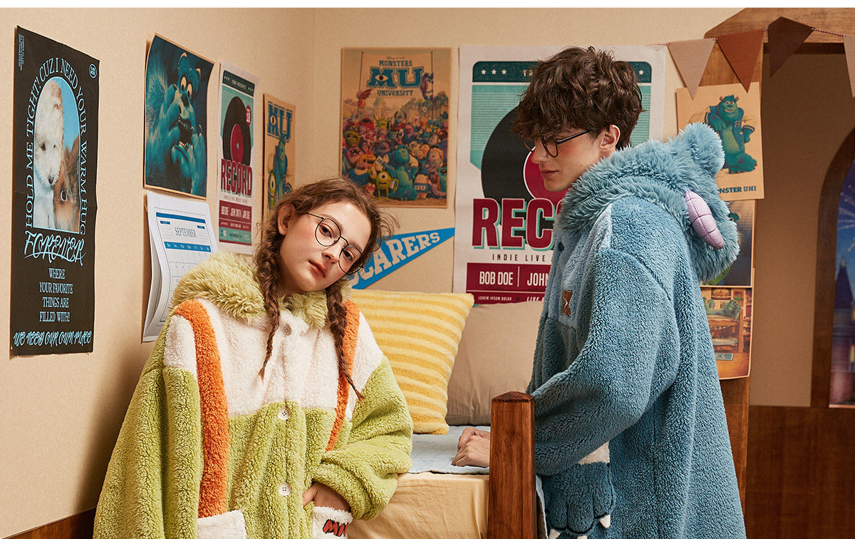 Gukoo/果壳 Монстр, зимняя пижама для влюбленных, коралловая бархатная толстовка с капюшоном, комплект