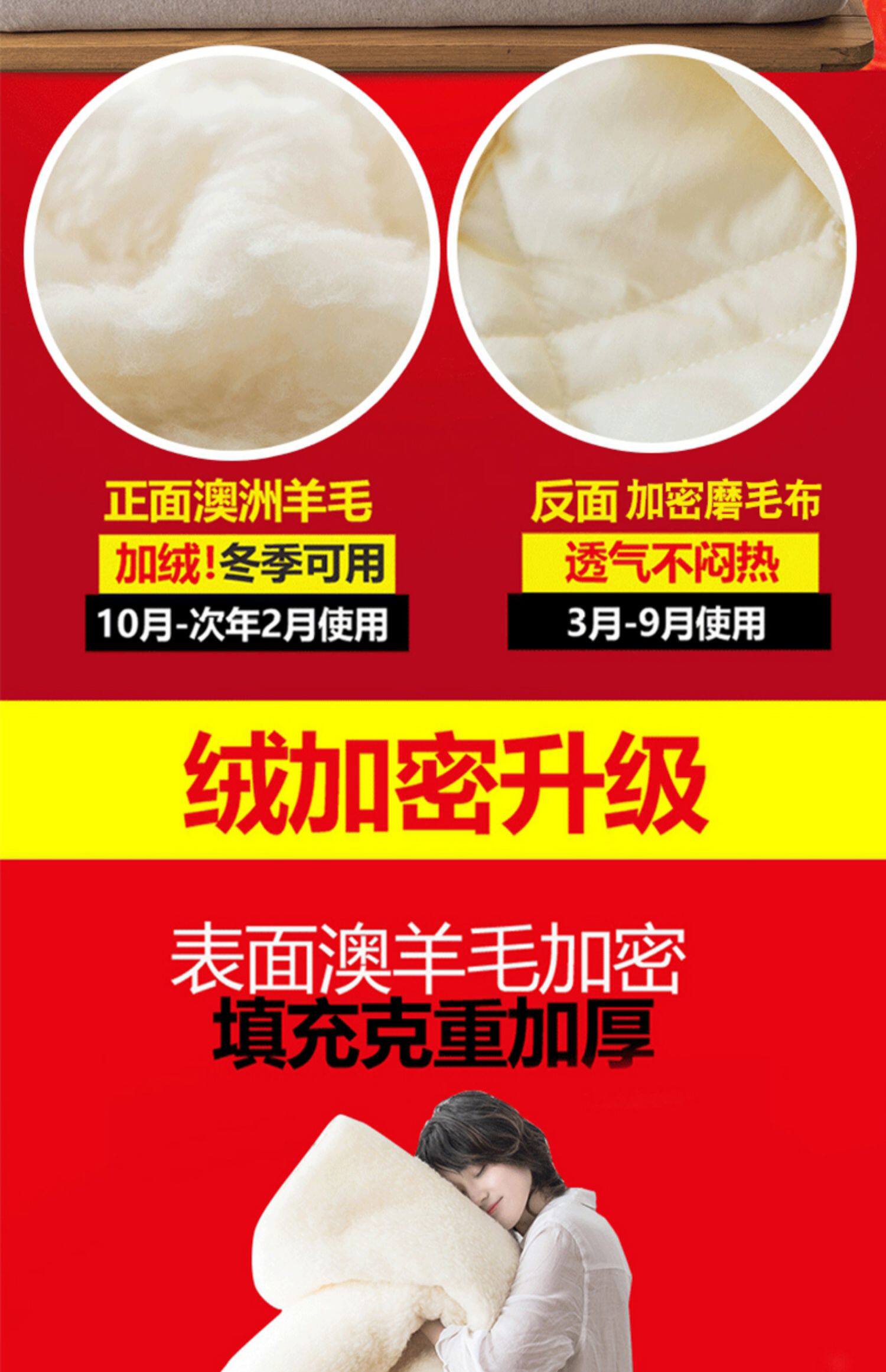 - Двуспальная кровать 200x220 см -Австралийская чистая шерсть двойная, можно сохранить теплую и тепловую хранение