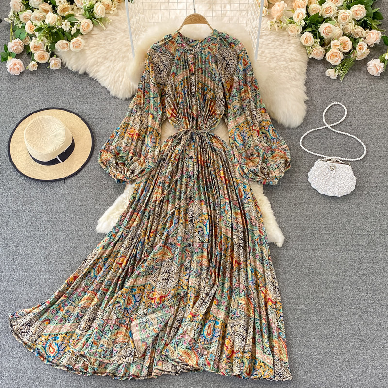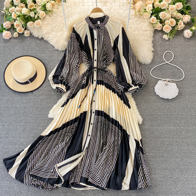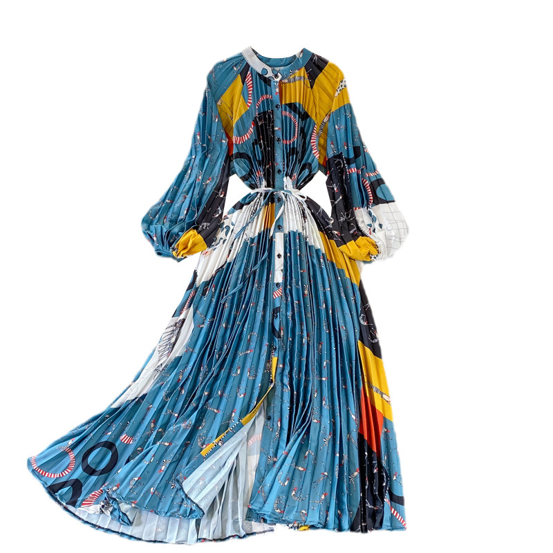 Осенний лонгслив с круглым воротником, элегантное платье, длинная юбка, свободный крой