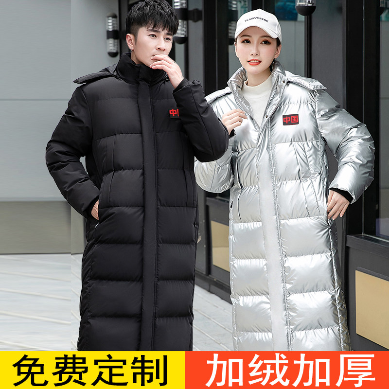 Зимний спортивный длинный пуховик подходит для мужчин и женщин для школьников и студентов для тренировок с пухом, длина макси, увеличенная толщина