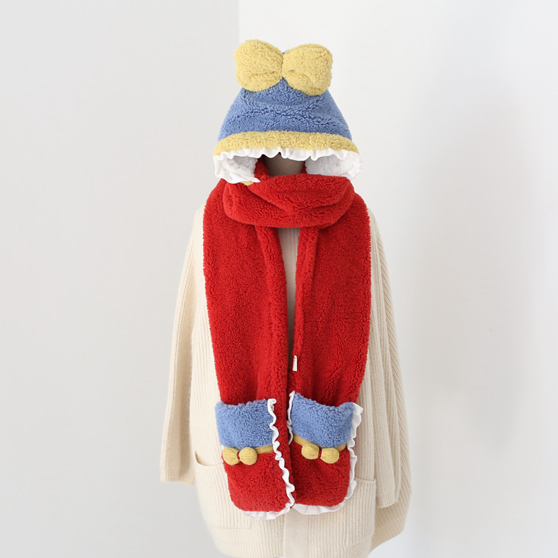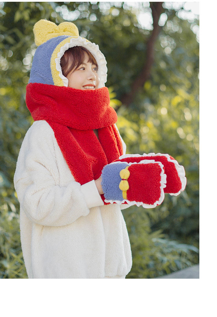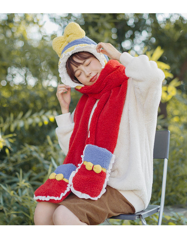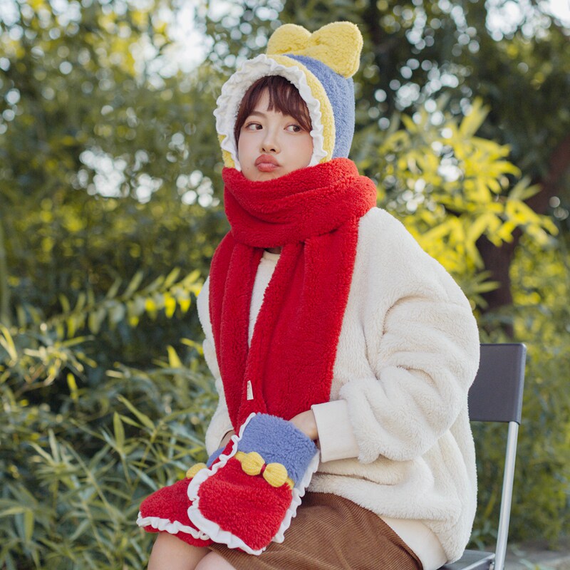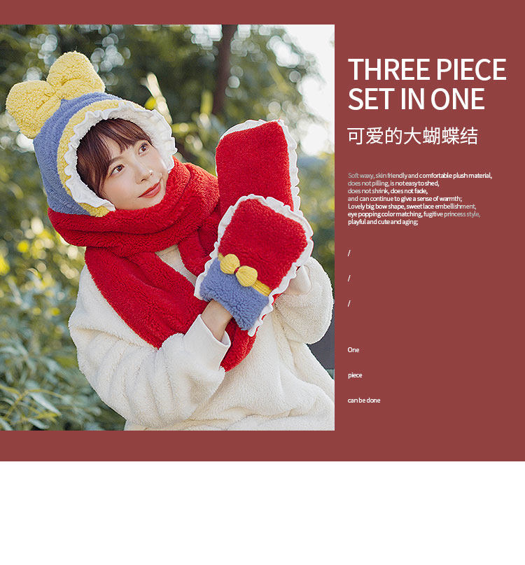 Милый зимний наряд маленькой принцессы, бархатный комплект, шарф, красные перчатки, 3 предмета