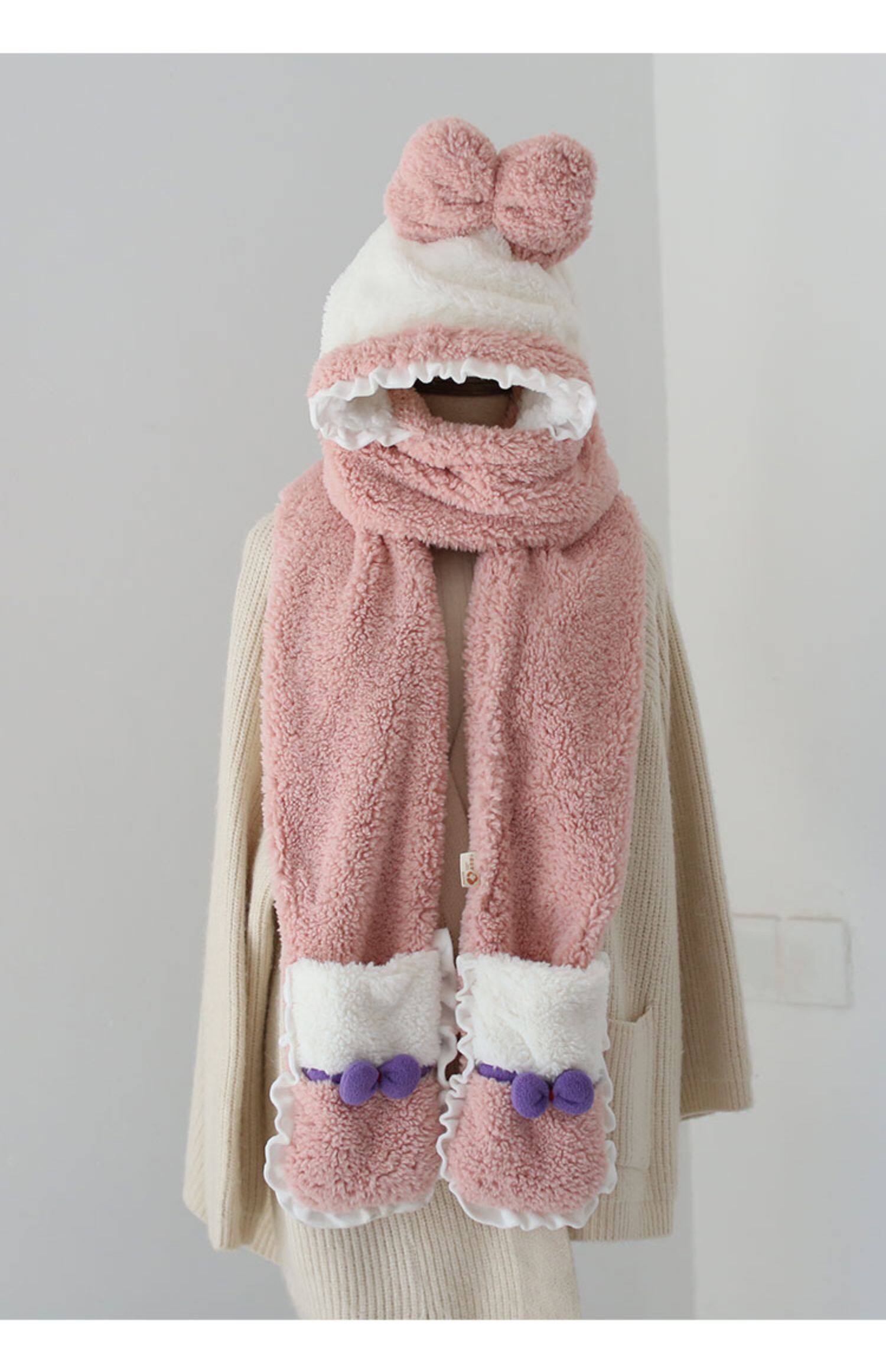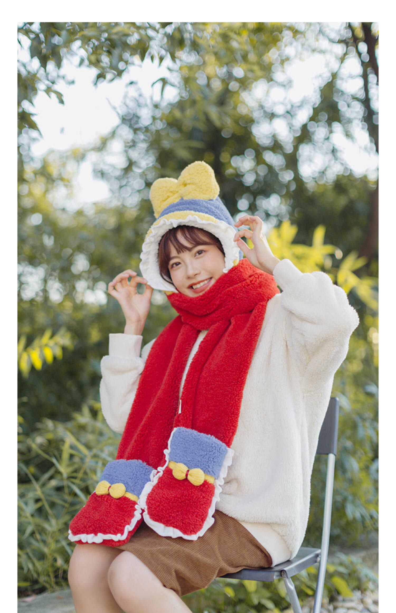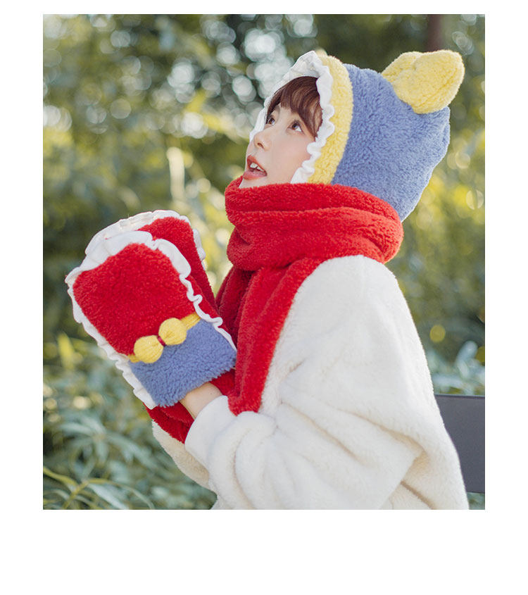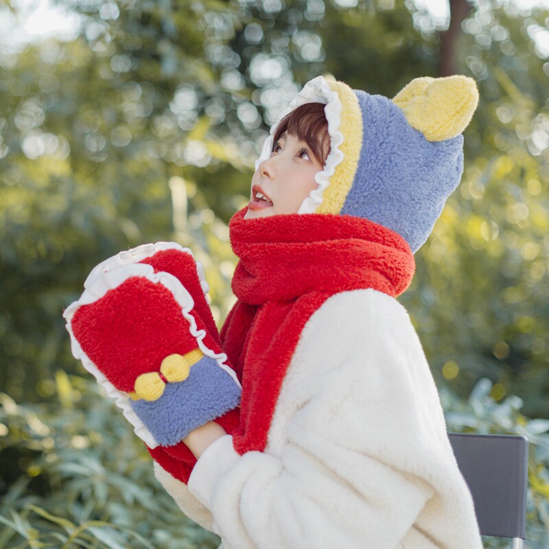 Милый зимний наряд маленькой принцессы, бархатный комплект, шарф, красные перчатки, 3 предмета