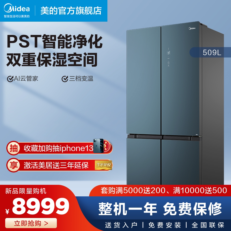 [19 минут чистый вкус] Midea 509L Cross Double -Open Home Home -Carepany Smart Home Hompliance холодильник