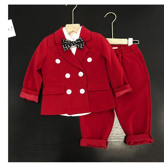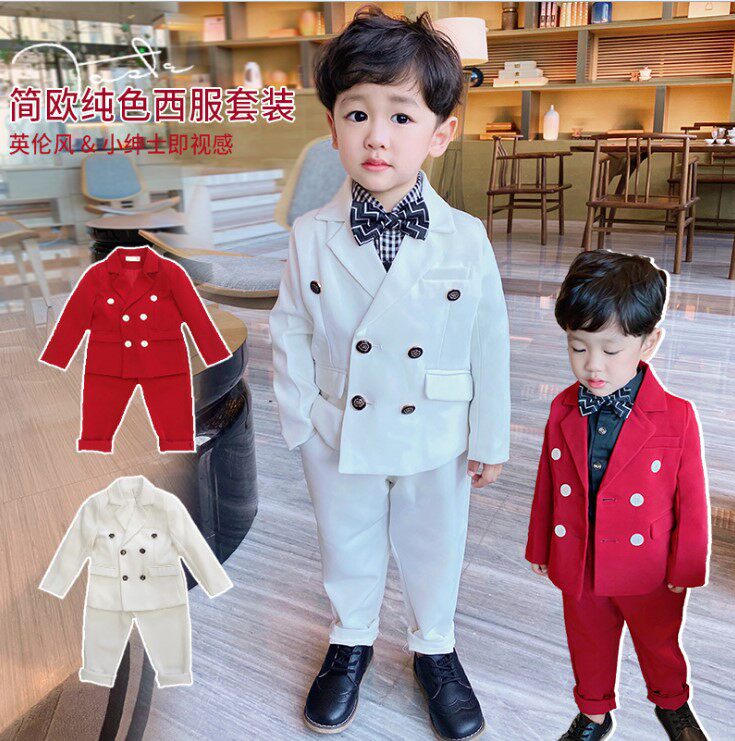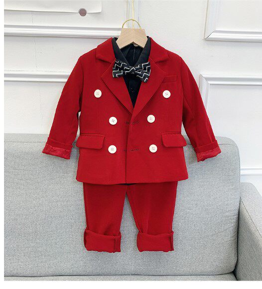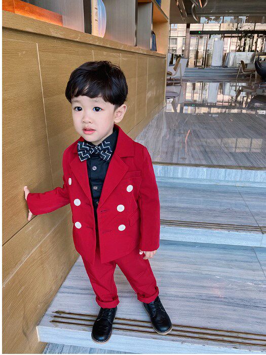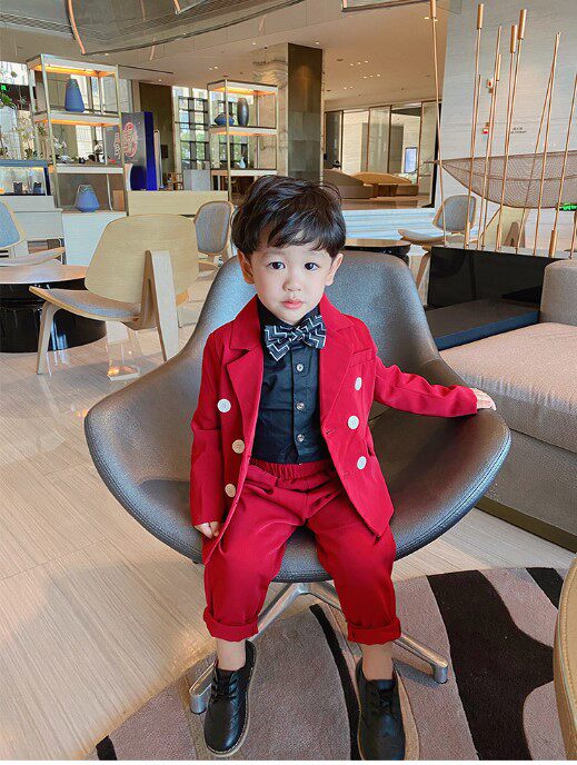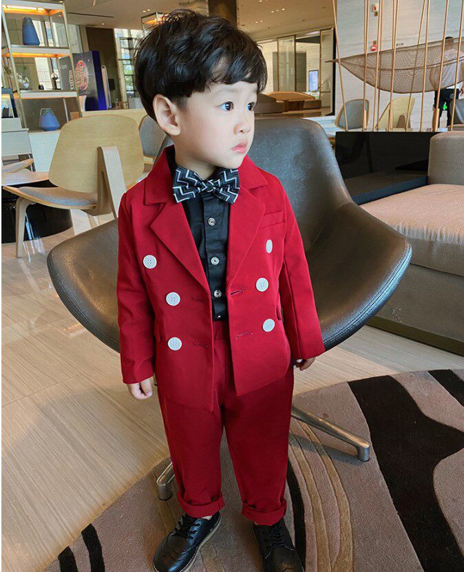 Костюм мальчика цветочника для мальчиков, красный осенний детский классический костюм, свадебное платье