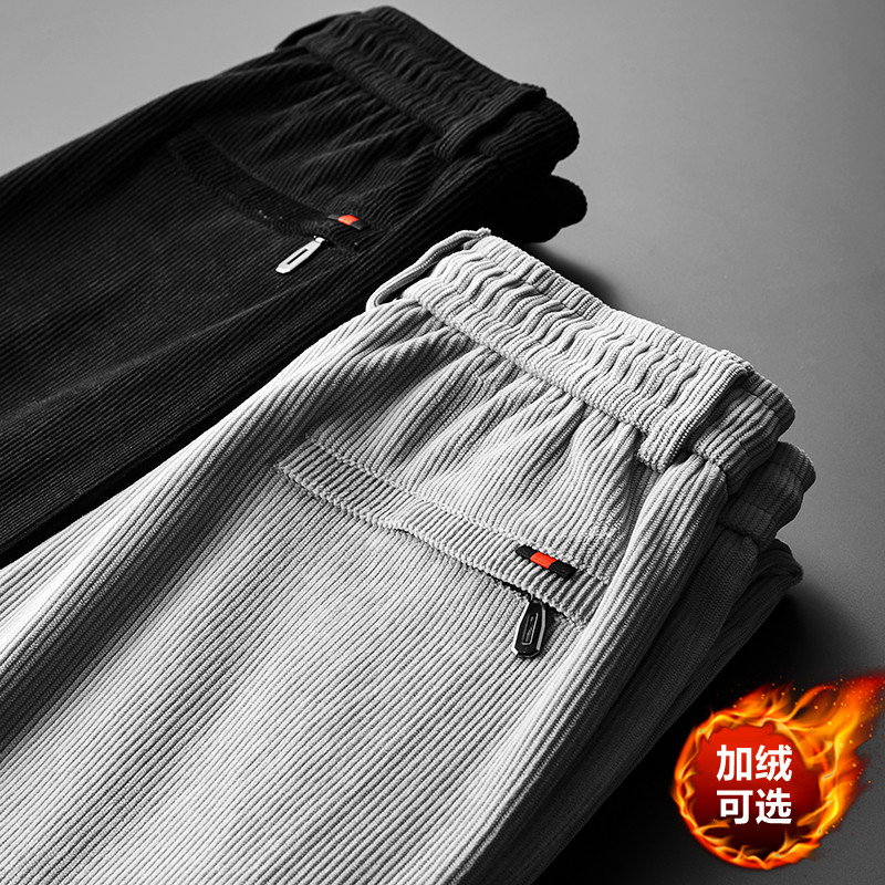 Вельветовые осенние эластичные бархатные утепленные штаны для отдыха, свободный прямой крой, большой размер