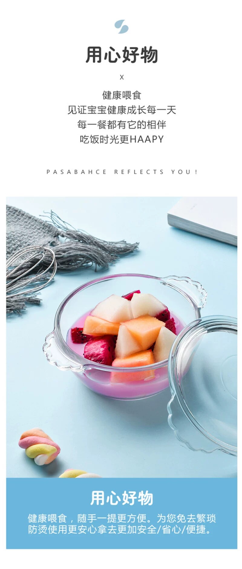 Бесплатная доставка паша Paqi Импортированная теплостойкость стеклянная чаша для домашней детской чаши Дополнительная пищевая фруктная салат десерт парио