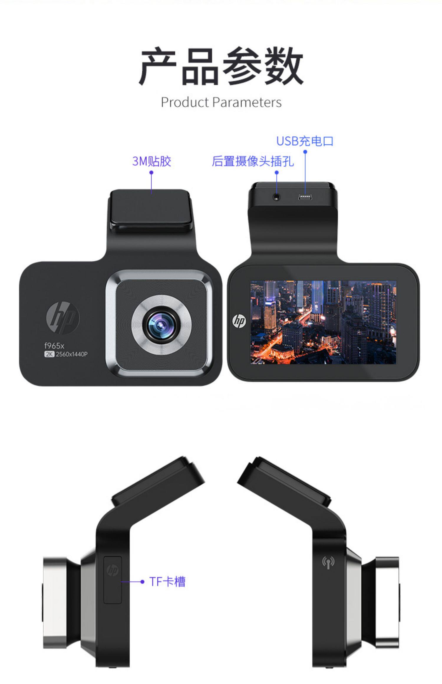HP/HP Двигательный рекордер Передний и задний двойной камеру ультра -высокое обратное изображение All -In -One