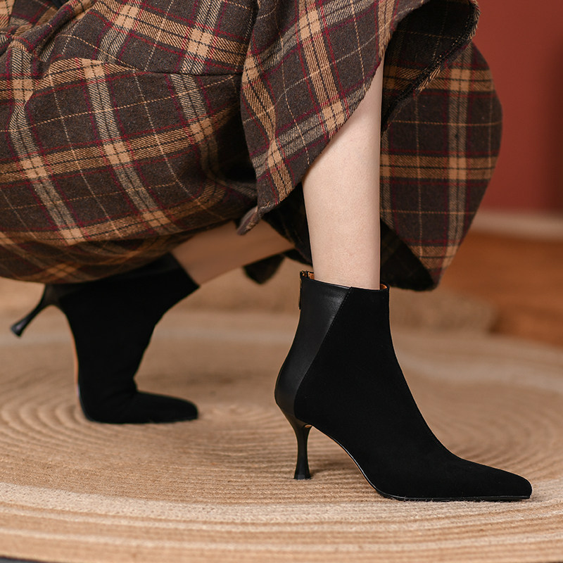 Грейс встречает вас как напиток ~ Кожаная мода универсальные стельки, заостренные и тонкие каблуки, черные высокие каблуки