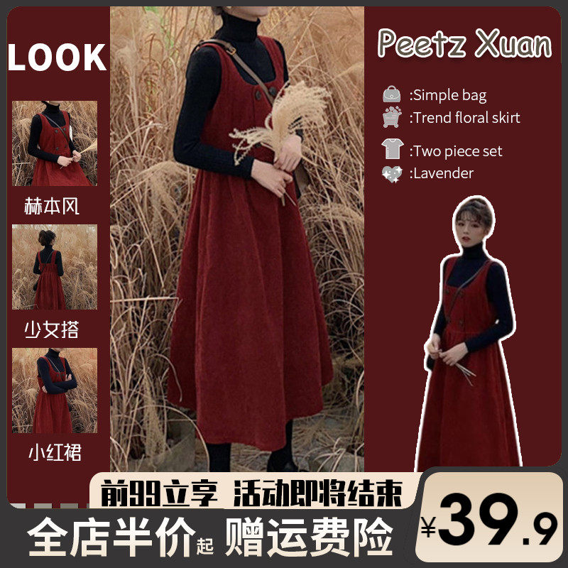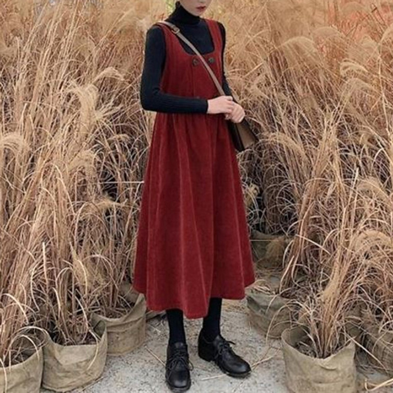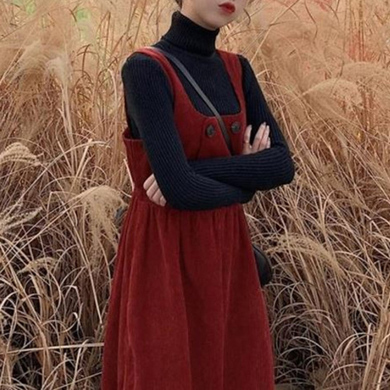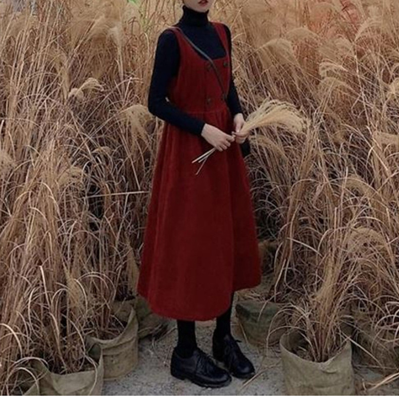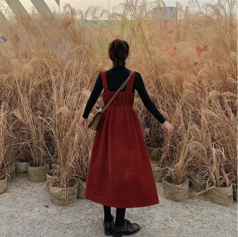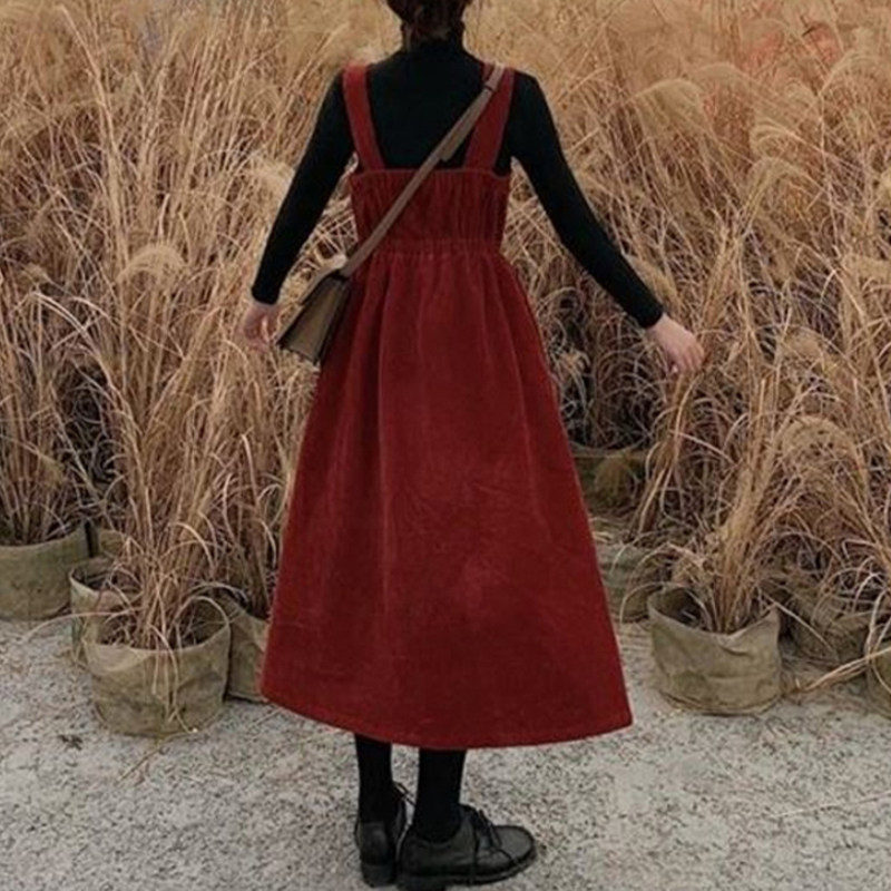 Вельветовые подтяжки, длинная юбка, ретро демисезонное платье, комплект, длина макси, коллекция 2023