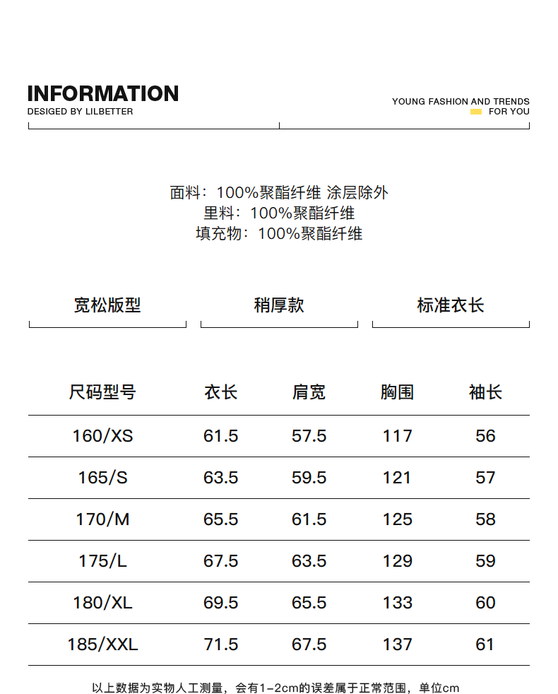- = 185/XXL 175/L 180/XL