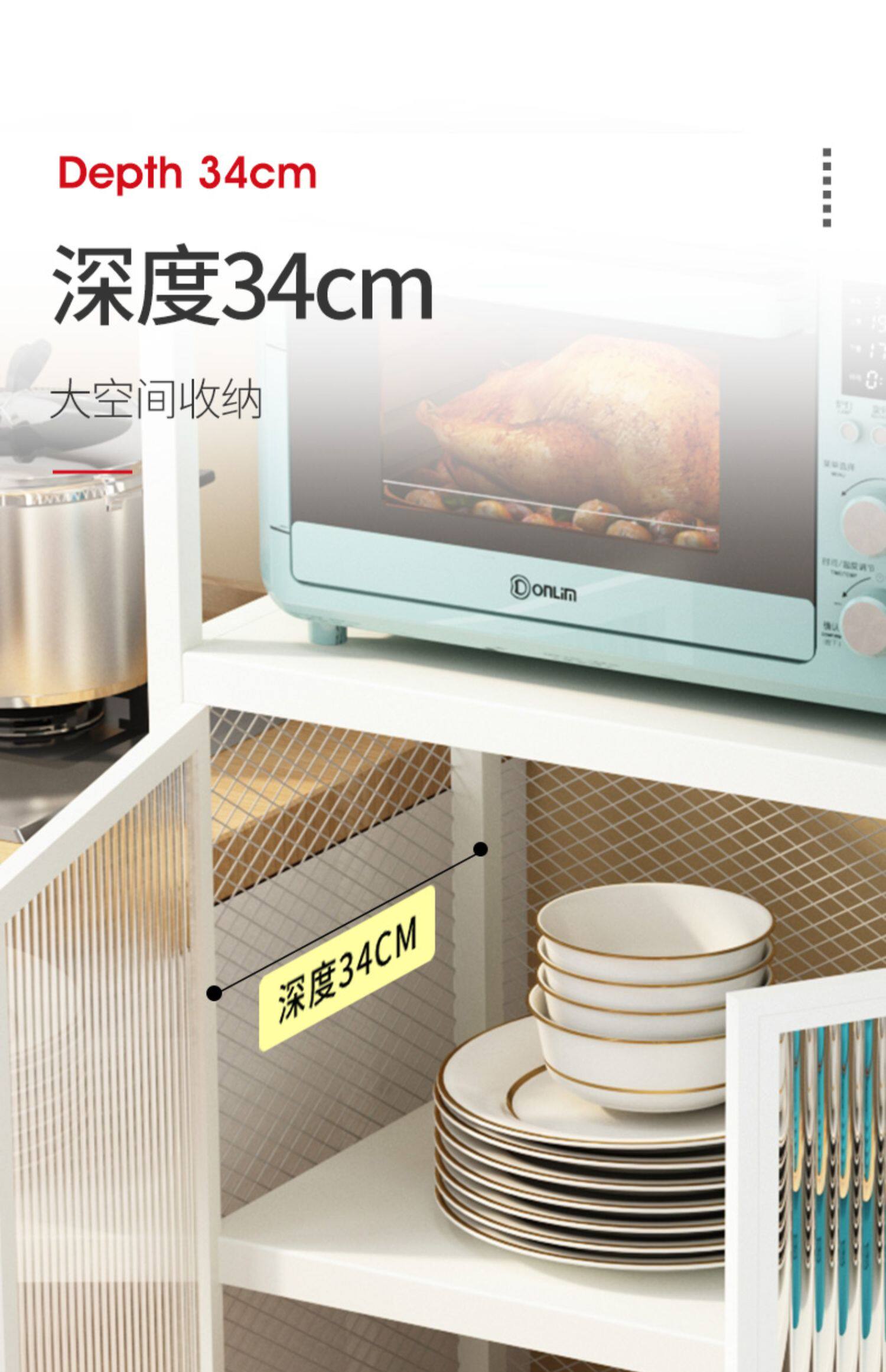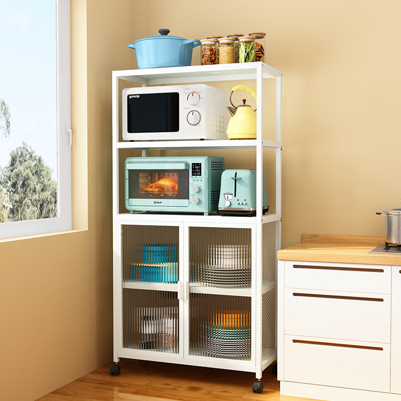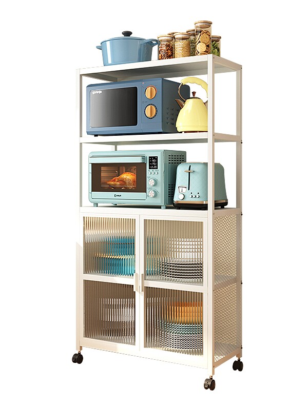 Кухонная полка расположена на полу с многослойным шкафом для хранения домашней микроволновой печи, полки, шкаф для хранения хранения
