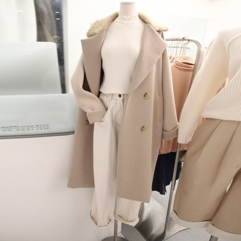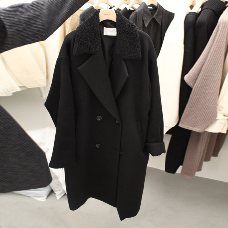 Шерстяное пальто, демисезонная длинная куртка, коллекция 2021, в корейском стиле, оверсайз, средней длины