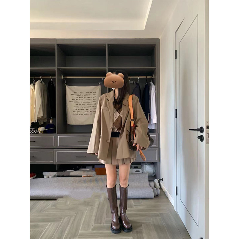 Осенний ретро пиджак классического кроя, комплект, юбка, подходит для подростков
