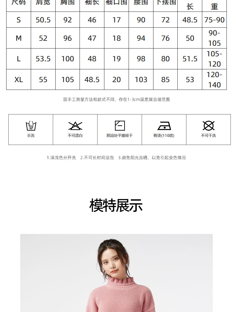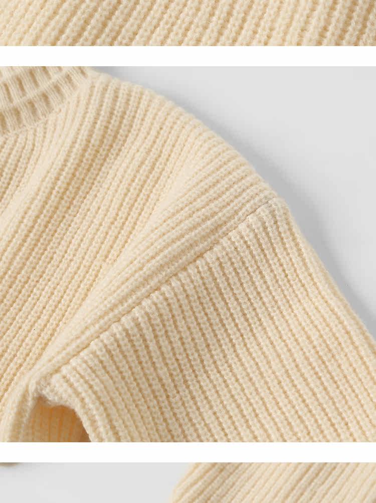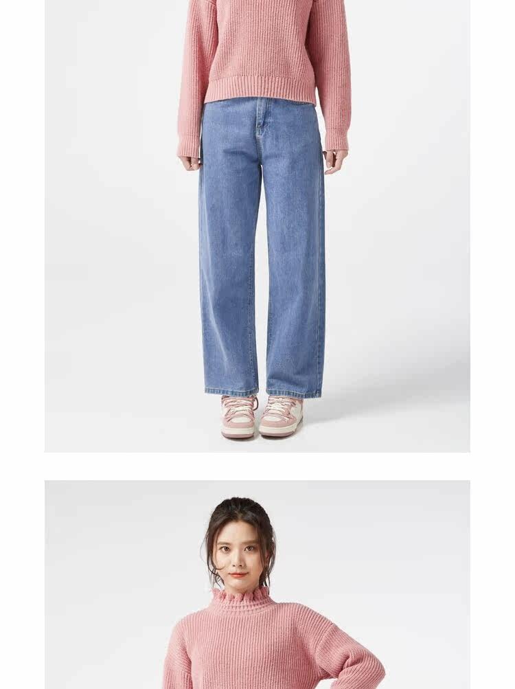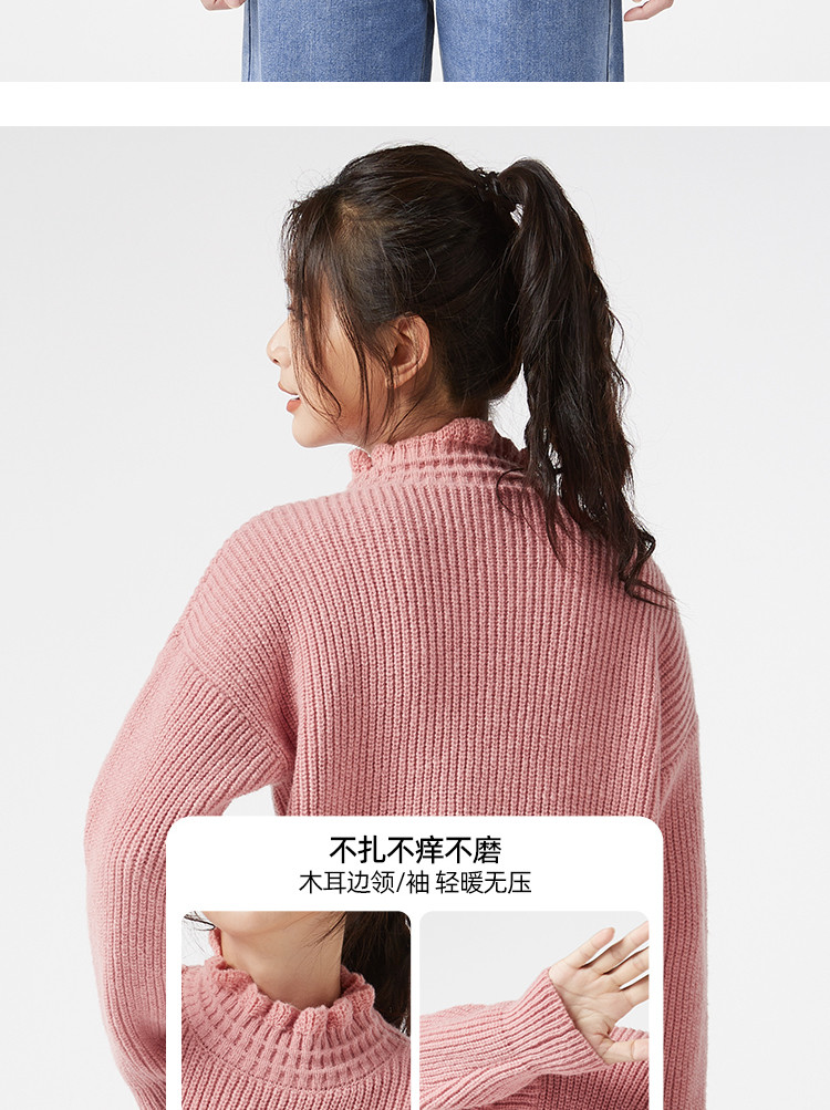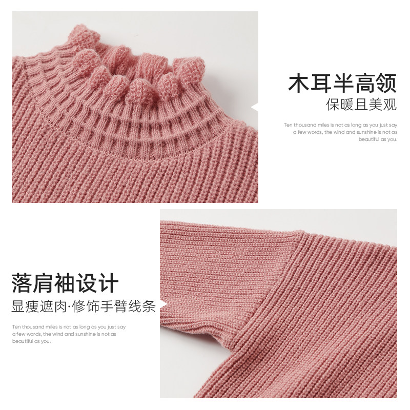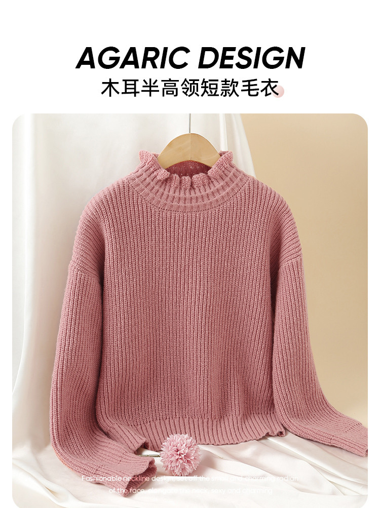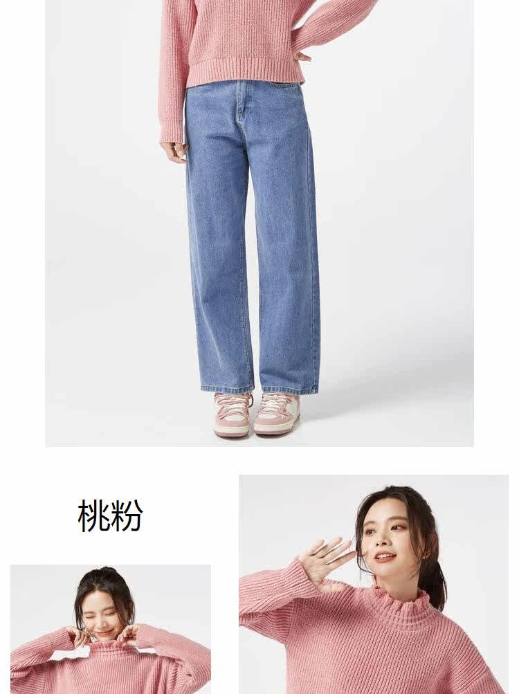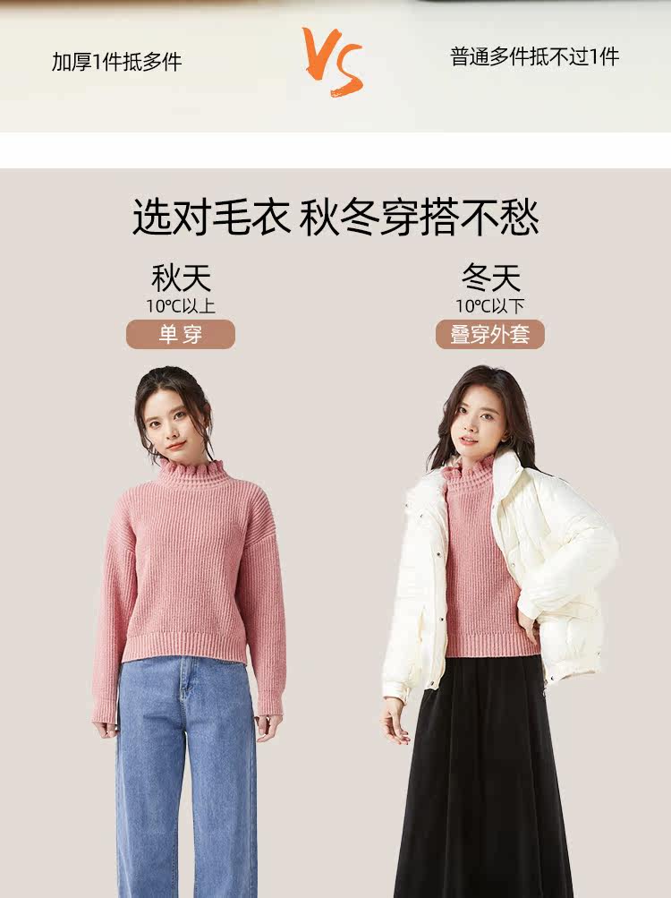 Демисезонный свитер, базовые короткие милые трикотажные джинсы с начесом, высокий воротник, оверсайз