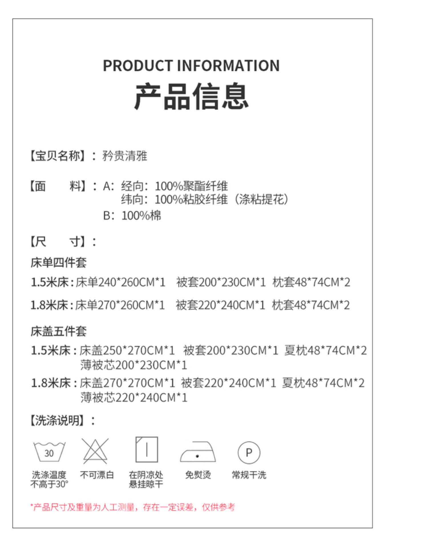 | Ширина кровати: | 1,5 млн. Кровати для однократного набора из четырех -купюр [применимо 200*230 стеганого одеяла], 1,8 млн. Кровати для однократного набора четырехлепа [применимо 220*240 ядро], 1,5 -метровая крышка кровати Пяти -набор [применимо 200*230 стеганого одеяла], 1,8 м кровати Пяти набор [применимо 220*240 стеганого одеяла] |