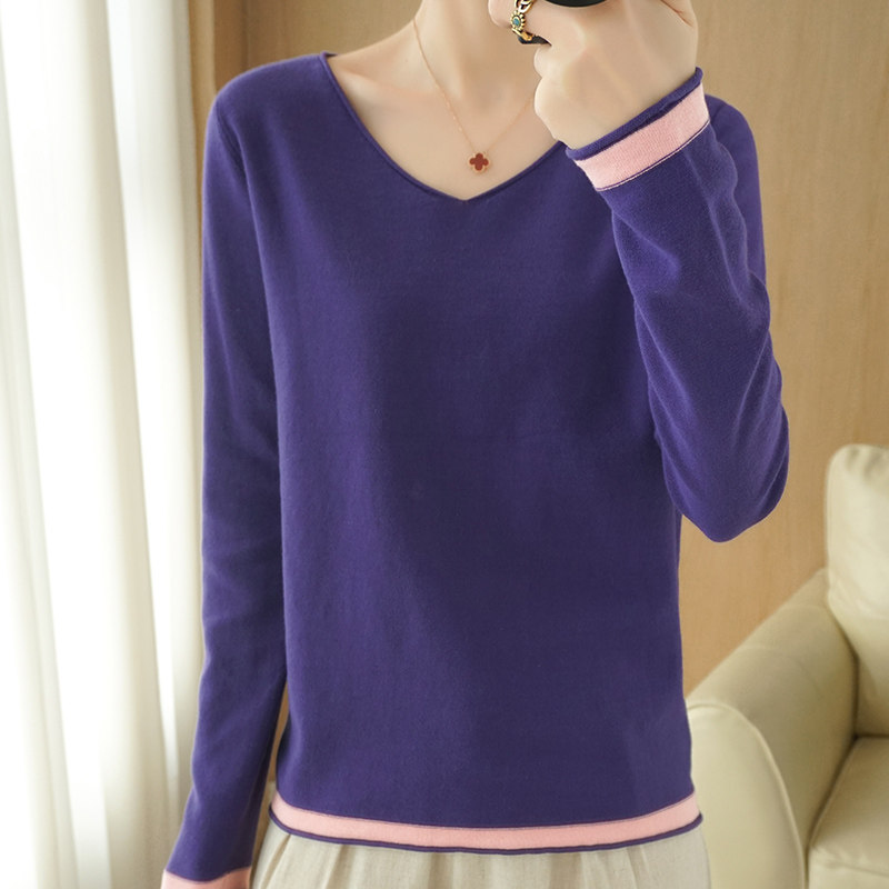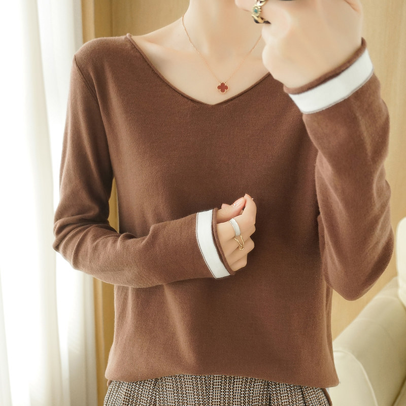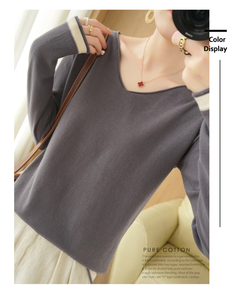 Хлопковый трикотажный свитер, демисезонный базовый лонгслив, хлопковая рубашка, 100% хлопок, коллекция 2021, в корейском стиле