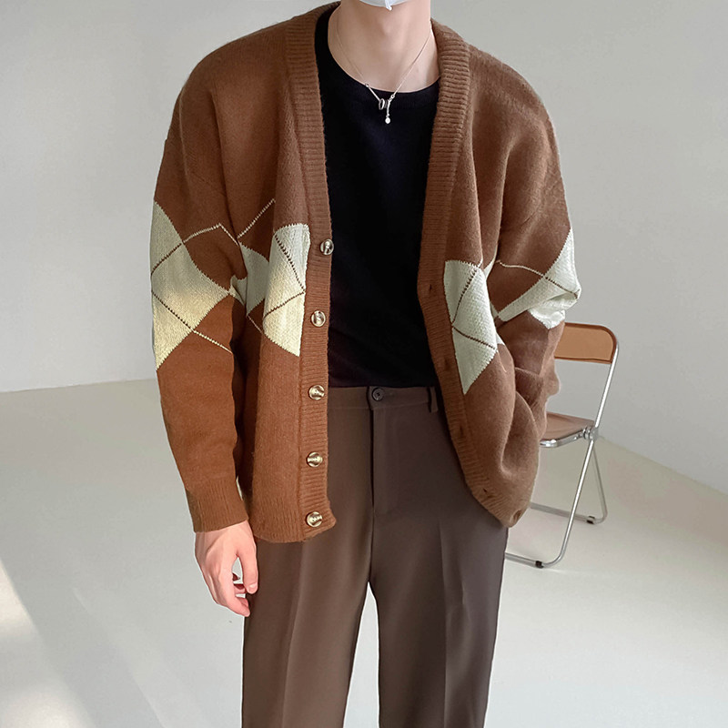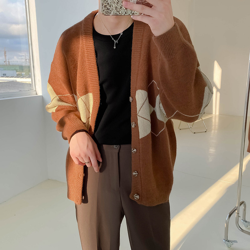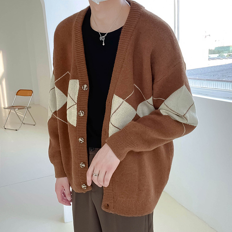 Демисезонный трикотажный кардиган, мужской трендовый свитер, куртка, в корейском стиле, V-образный вырез, подходит для подростков