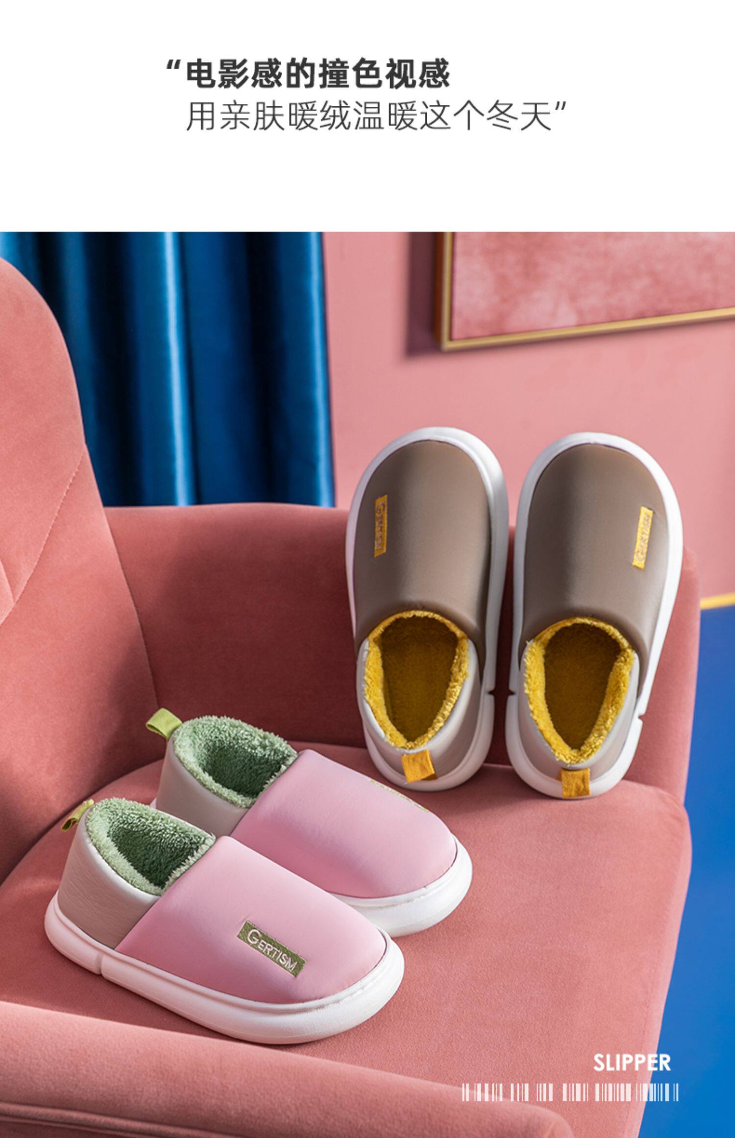 Мужские зимние нескользящие флисовые тапочки, для влюбленных