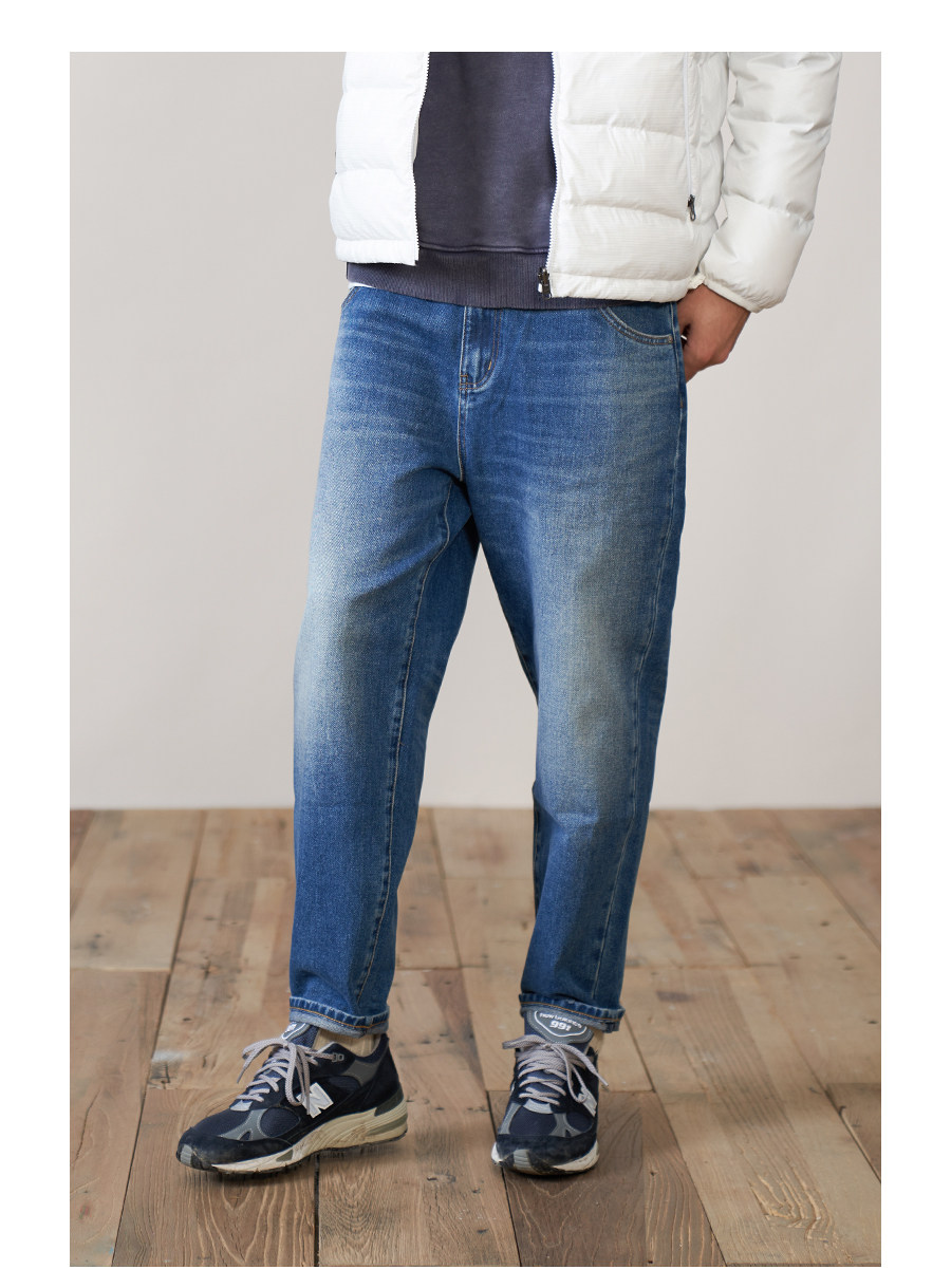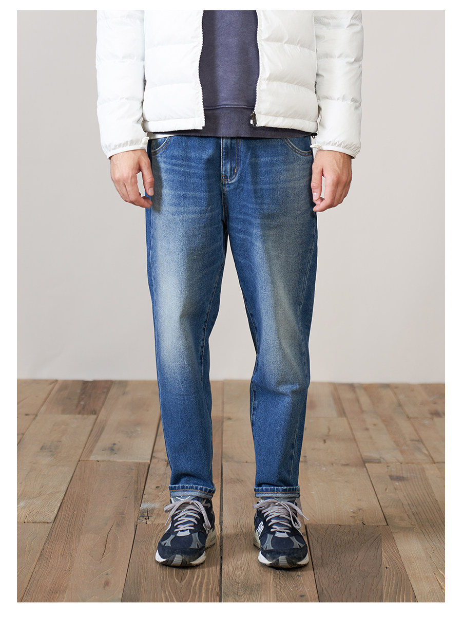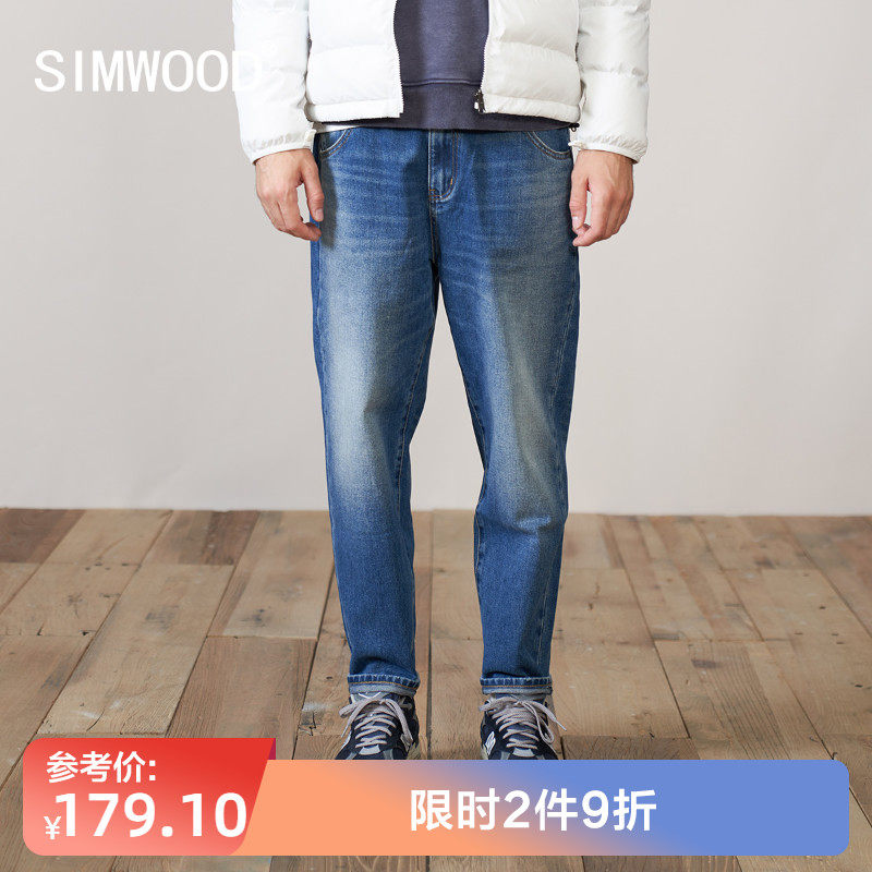 Simwood Простая деревянная мужская одежда [LT02 Loose Taper] Новые осенние стираные неэластичные джинсовые брюки с девятью точками для мужчин