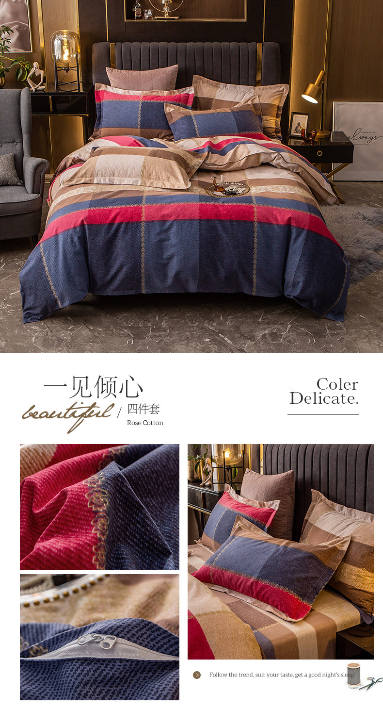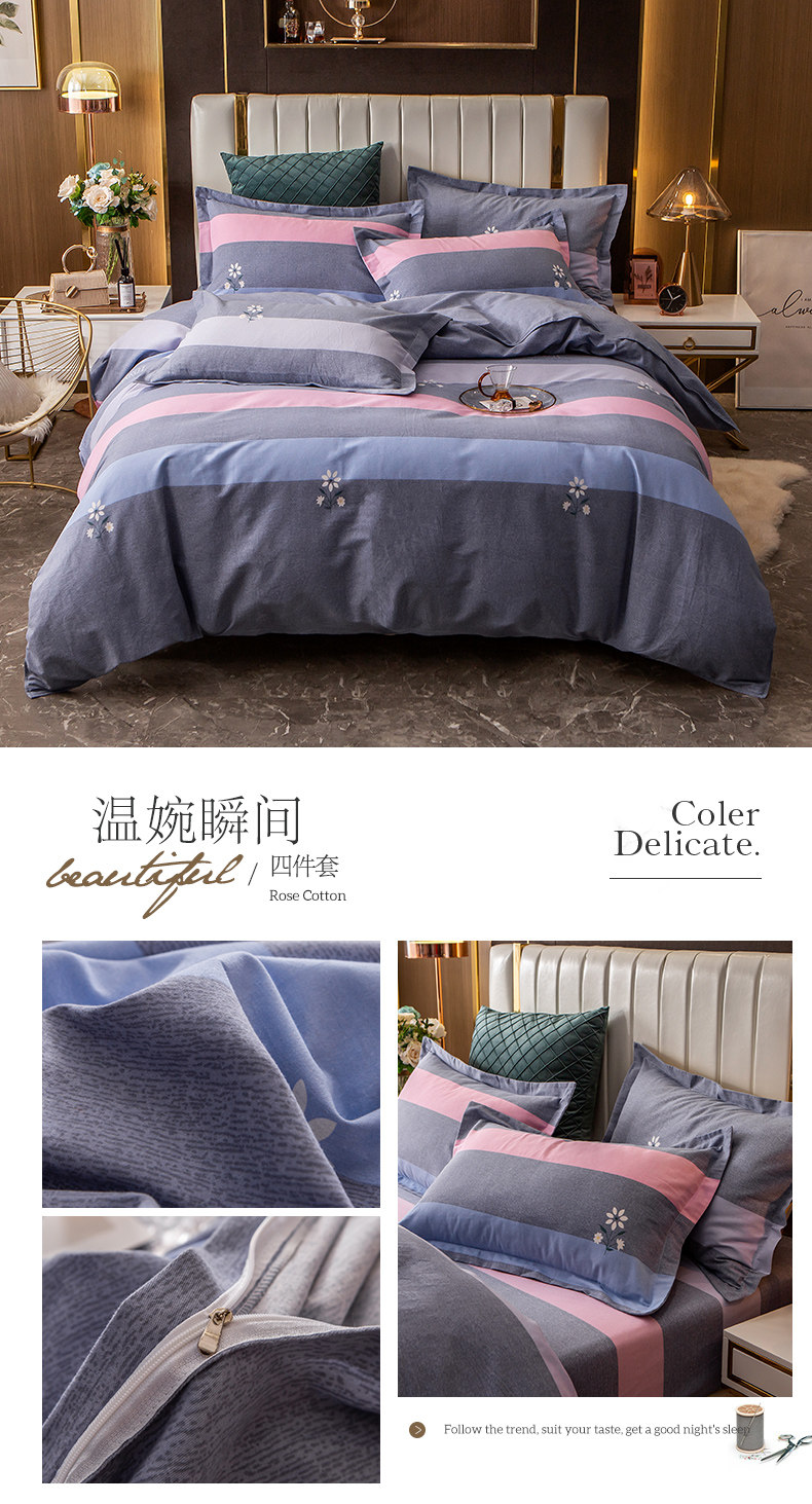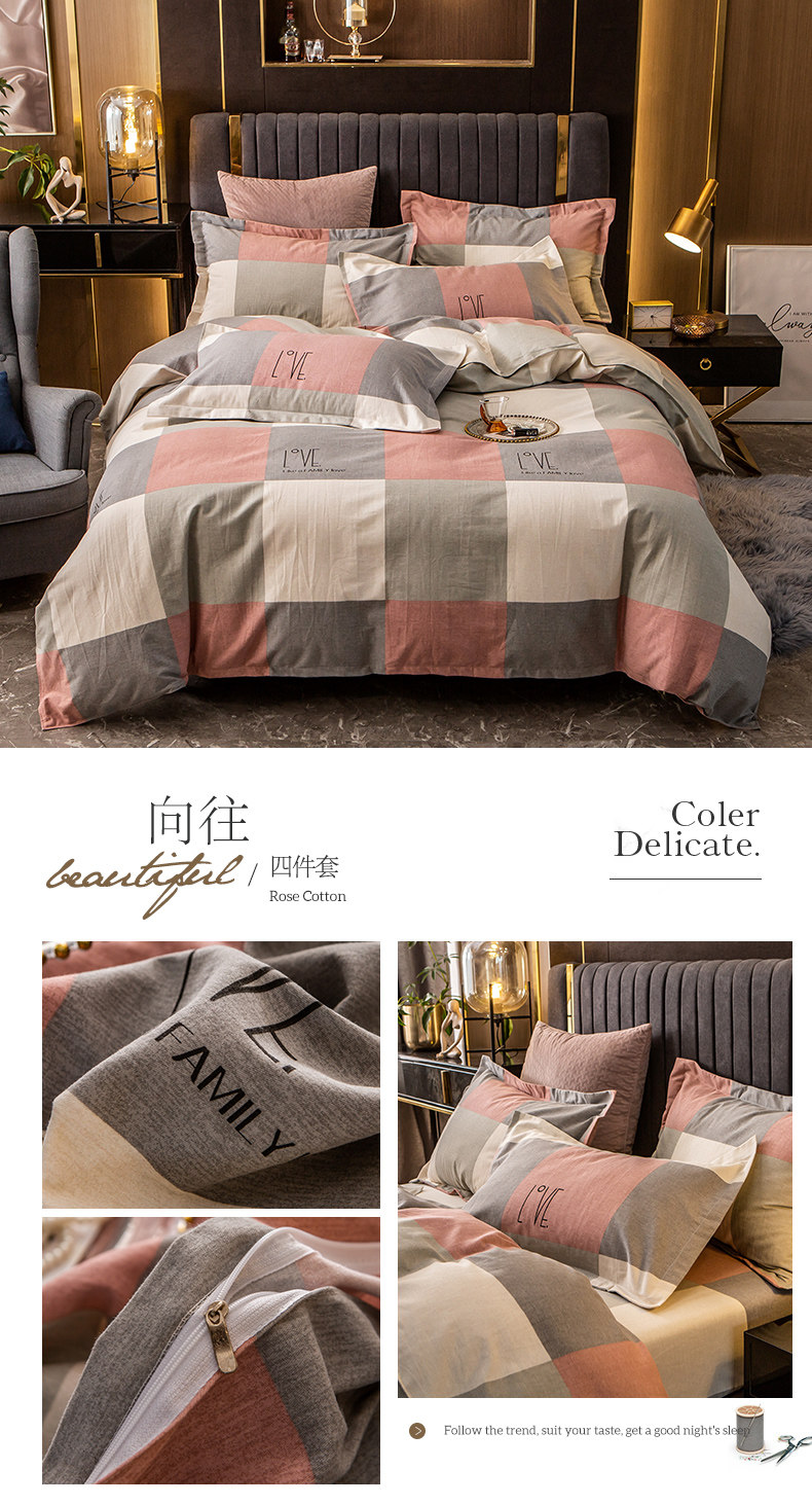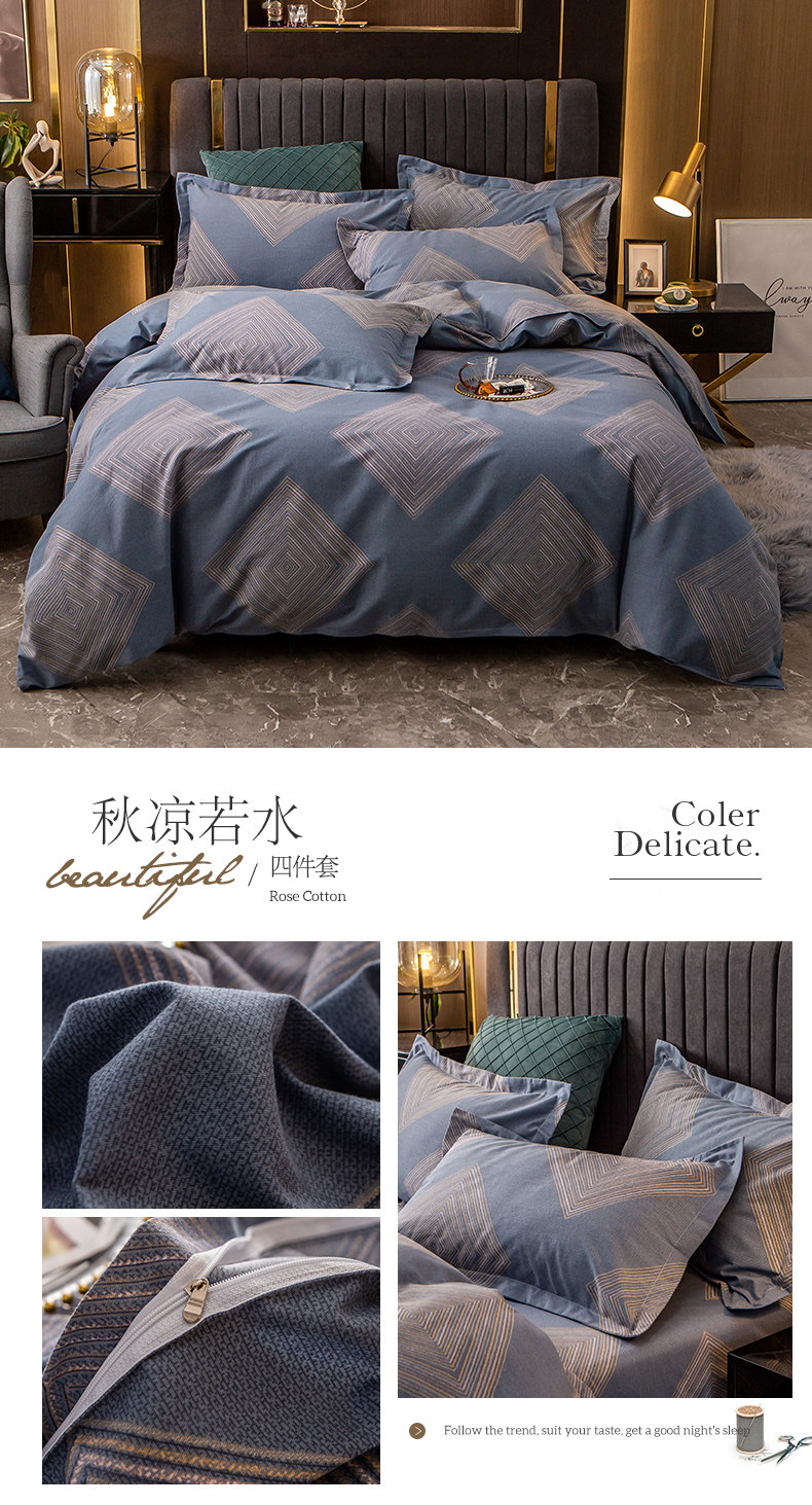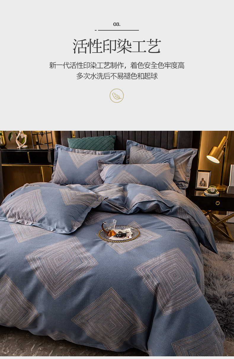 Хлопковый комплект, простыня, мужской пододеяльник, увеличенная толщина, 4 предмета, постельные принадлежности, простой и элегантный дизайн, 3 предмета