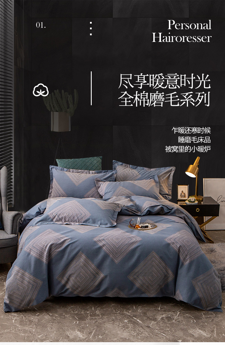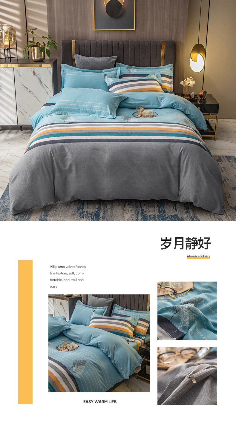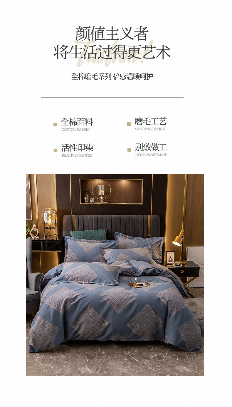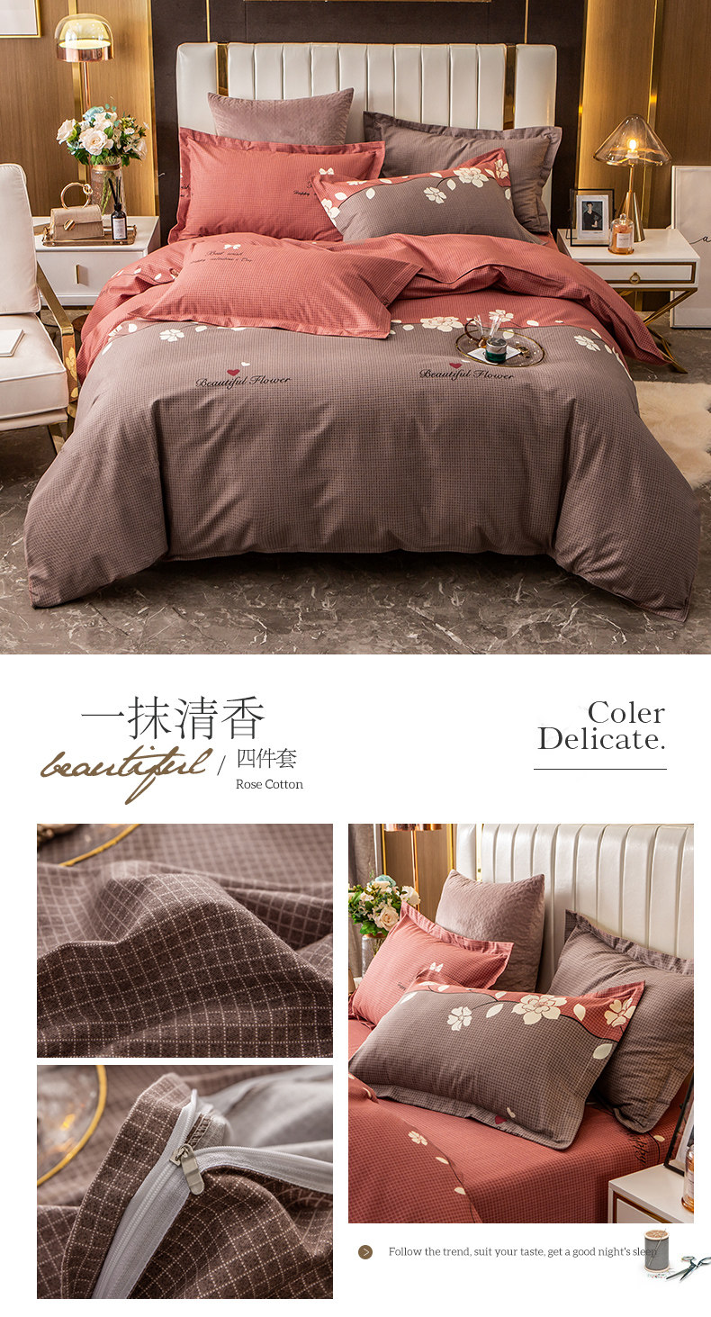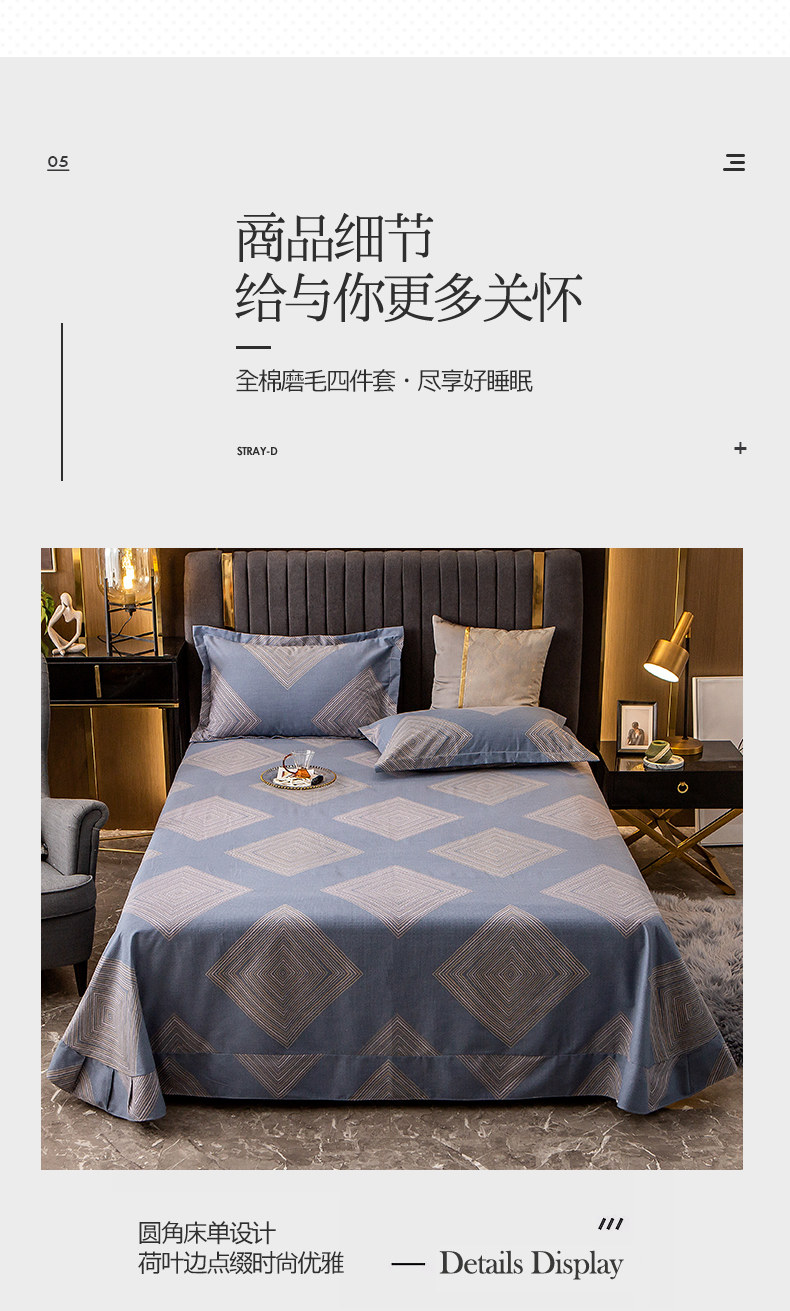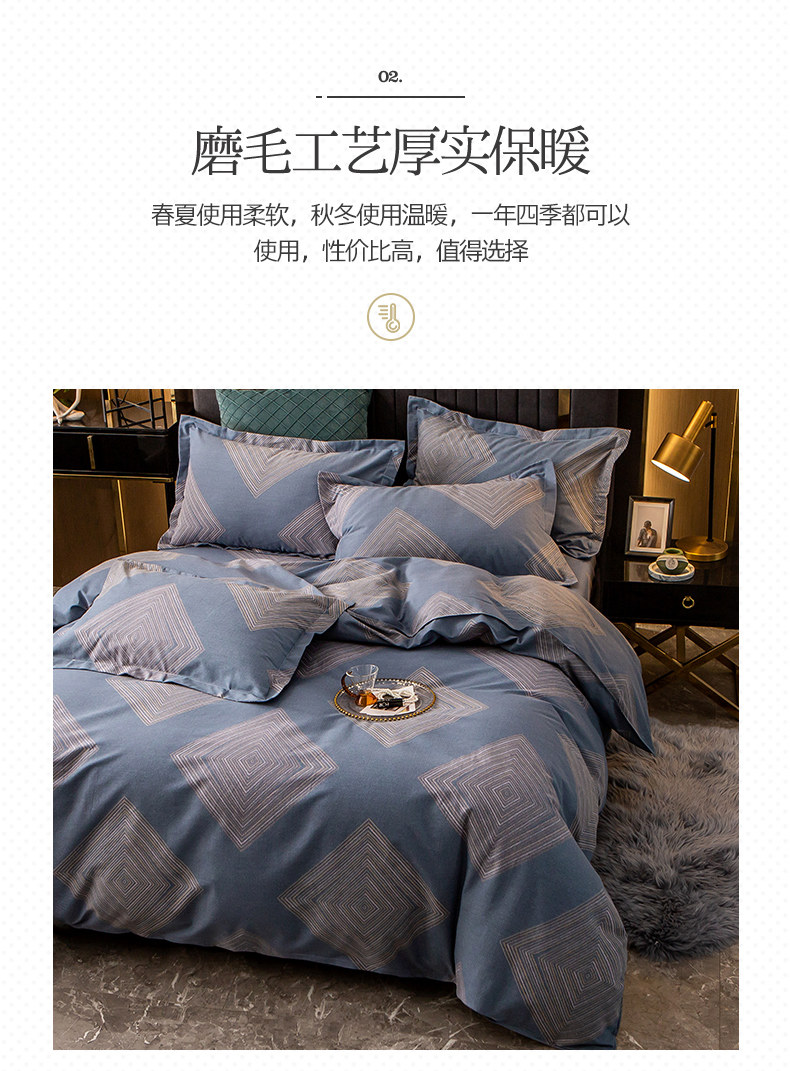 Хлопковый комплект, простыня, мужской пододеяльник, увеличенная толщина, 4 предмета, постельные принадлежности, простой и элегантный дизайн, 3 предмета
