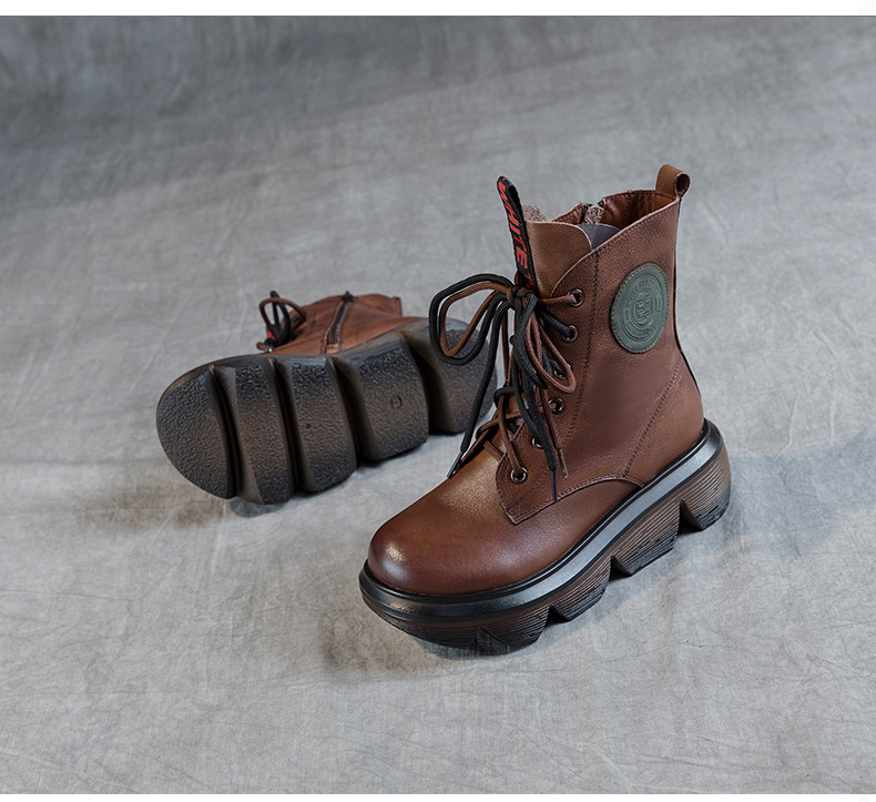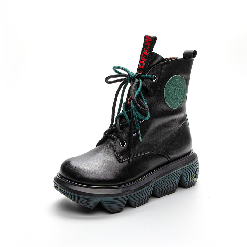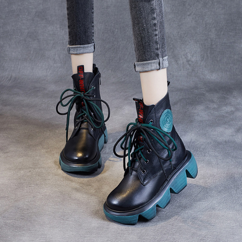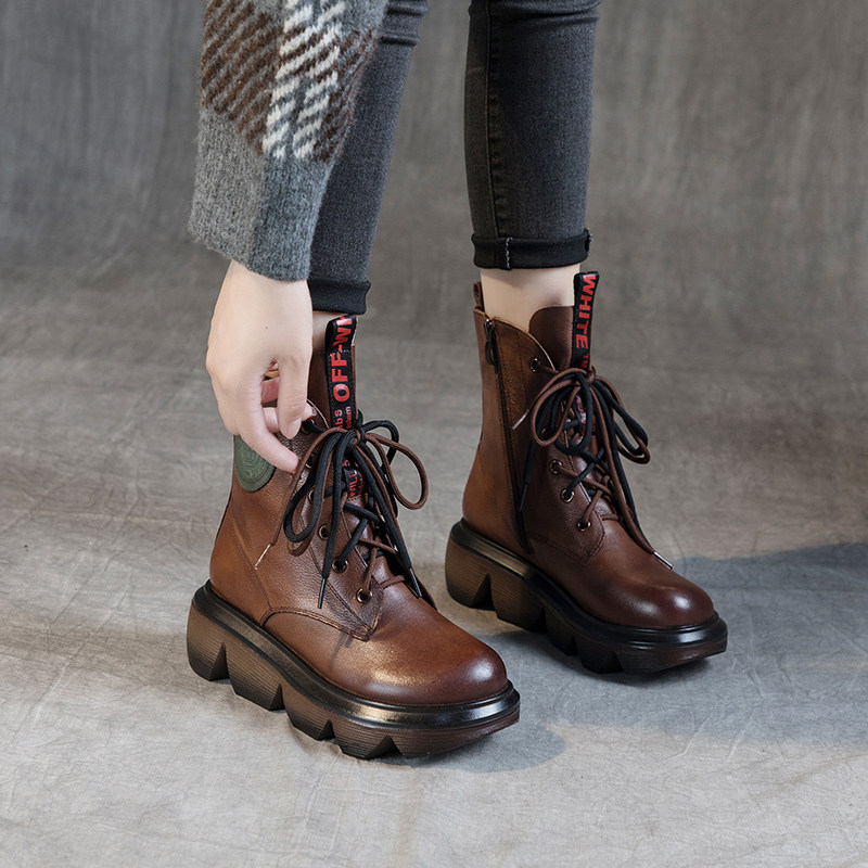 Демисезонные этнические короткие сапоги для отдыха на платформе, этнический стиль, из натуральной кожи, мягкая подошва
