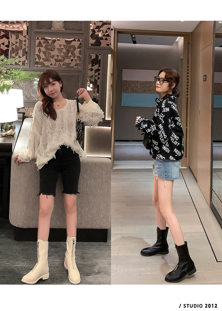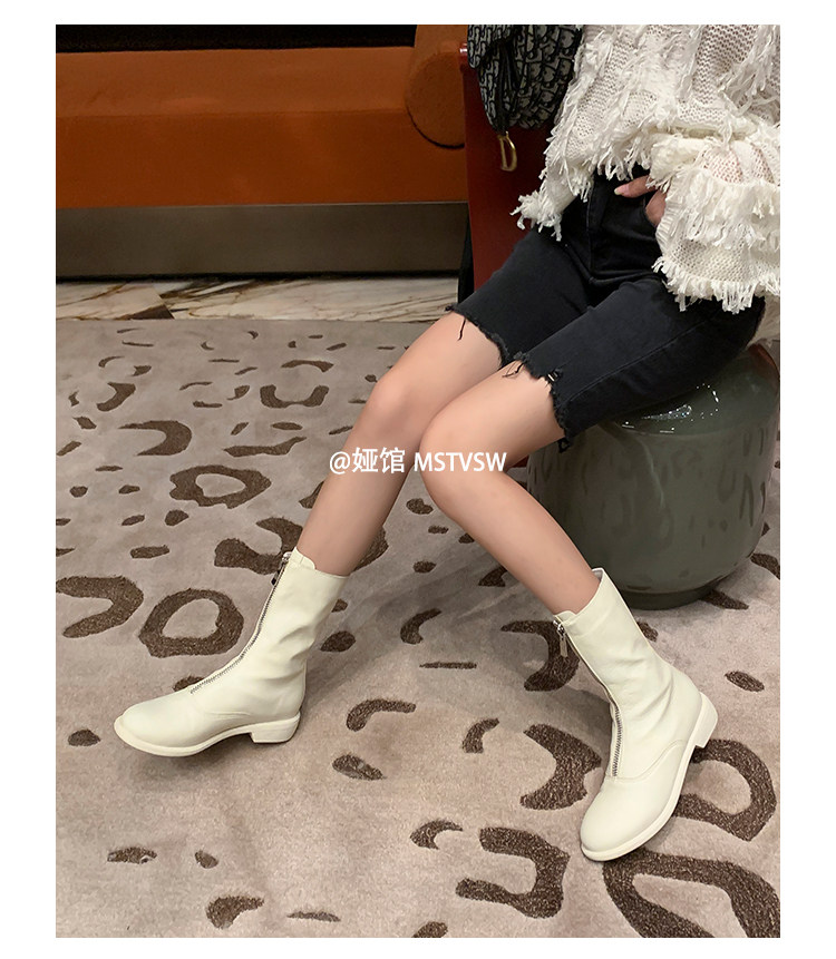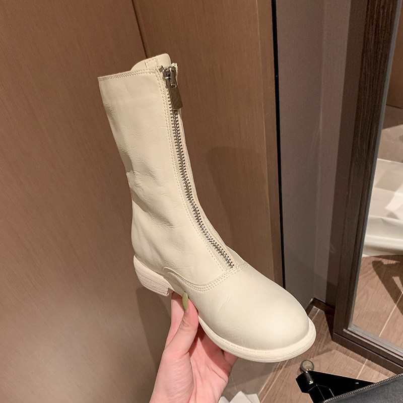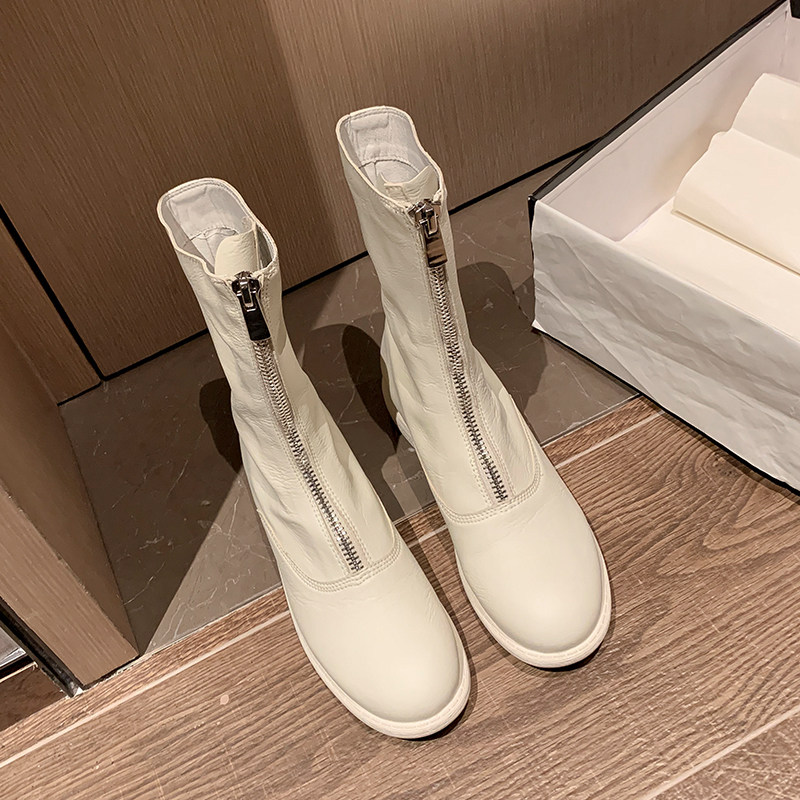 Martens, белые весенние короткие сапоги в английском стиле с молнией, в британском стиле, средней длины, коллекция 2023
