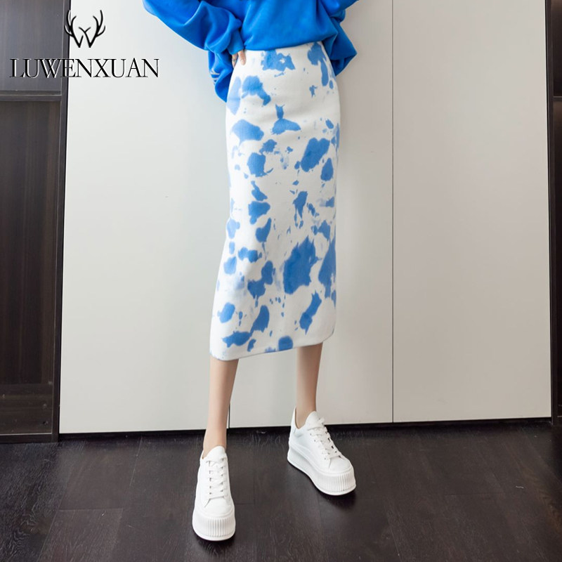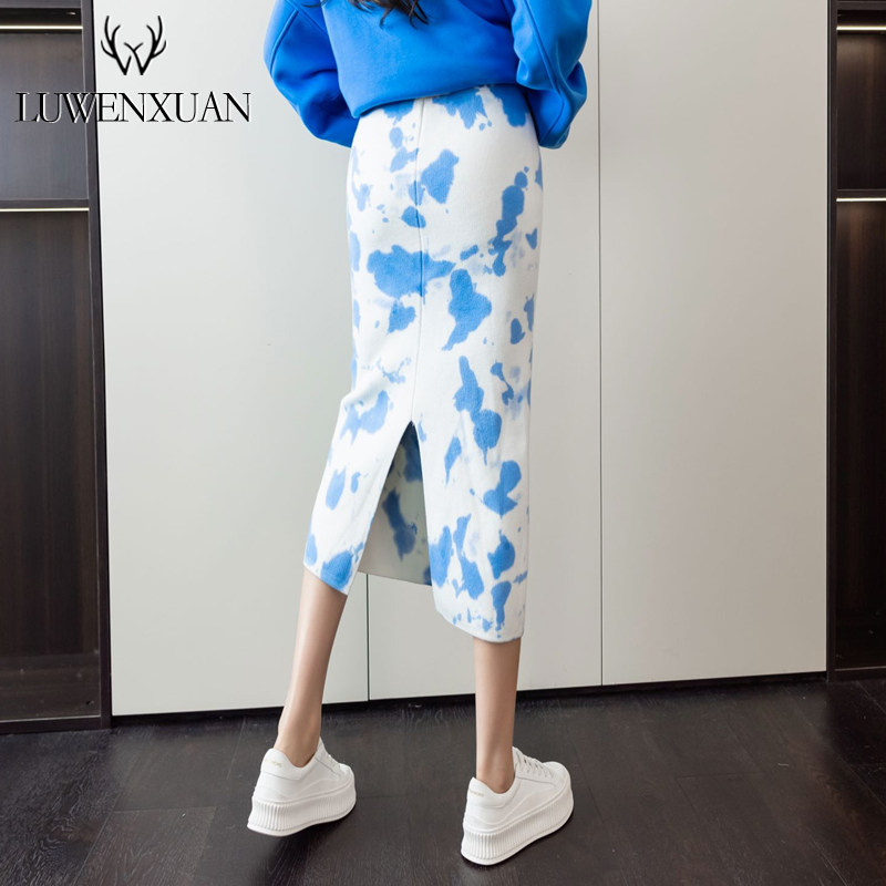 Модная демисезонная приталенная юбка, цветочный принт, 2021 года, высокая талия, с акцентом на бедрах