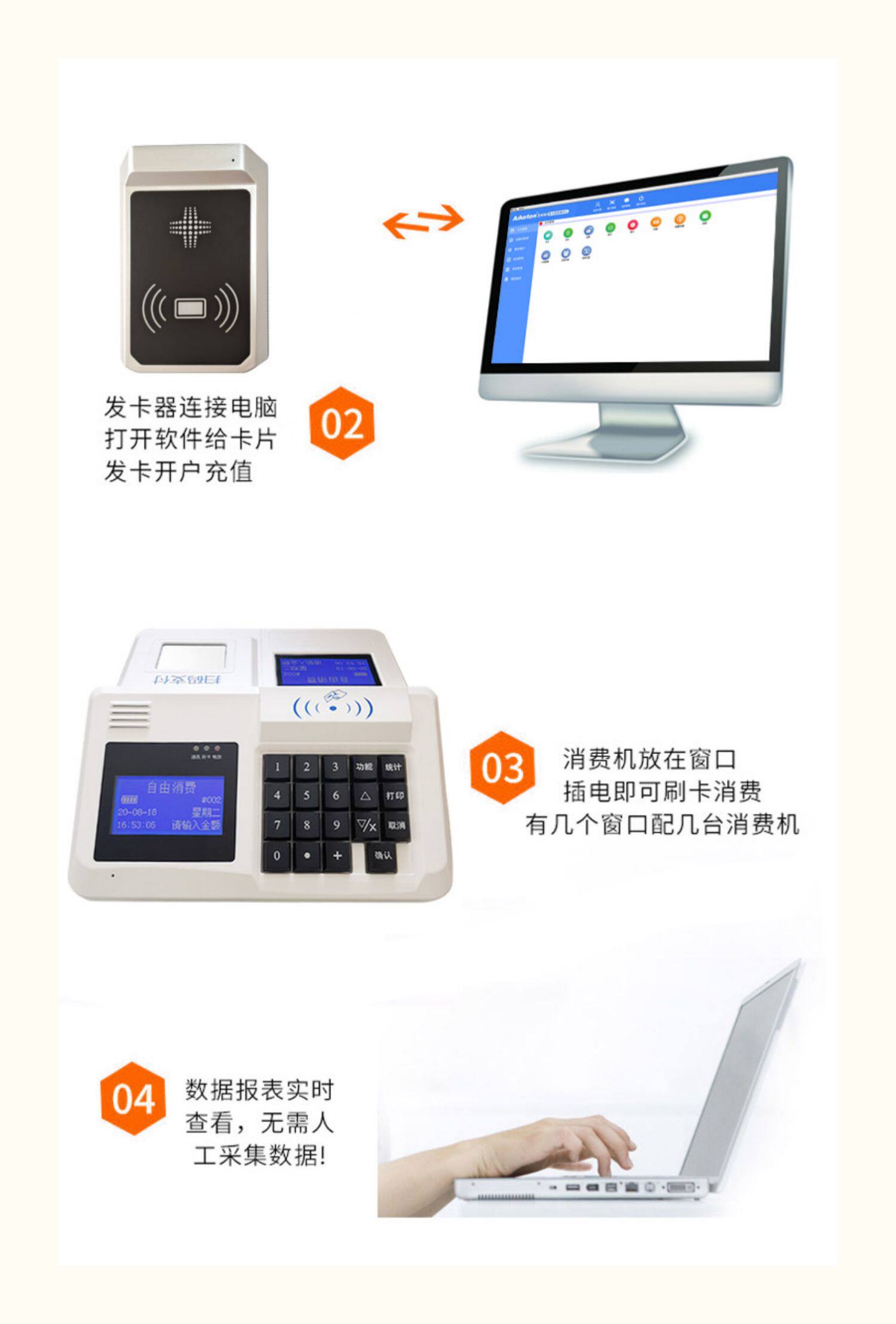 Новая IC Card Card Card Machine Machine Machine Card Card Card Card Commer Scanning Consumer Machine Школьная школьная единица Canteon Cafeteria Setwork System Полный набор ядра китайского управления.