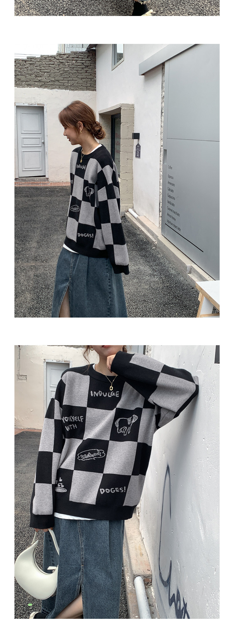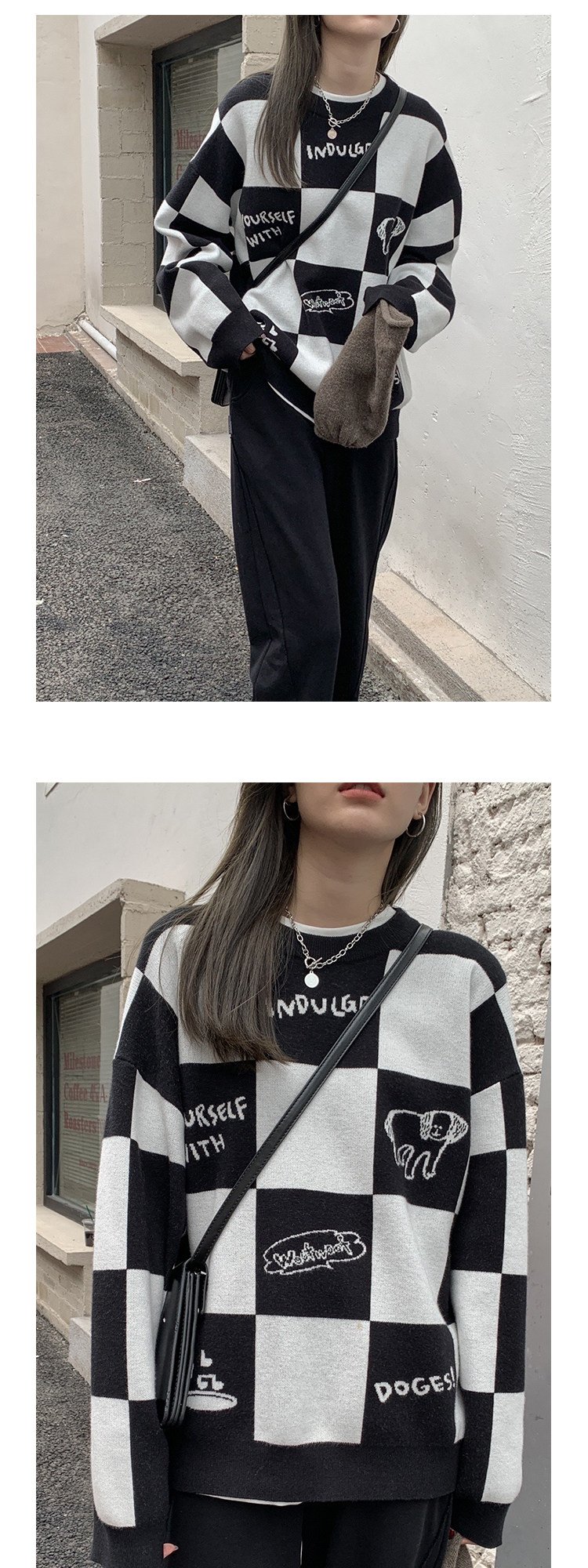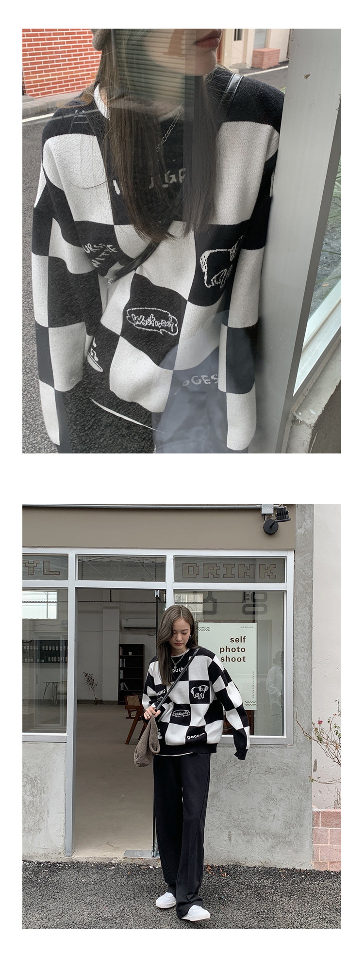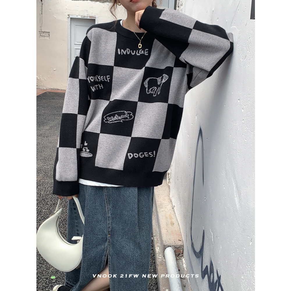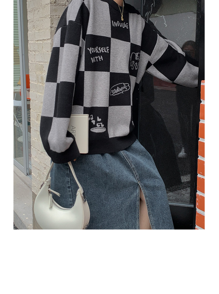 Шахматы, демисезонный свитер, длинная толстовка, в корейском стиле, средней длины