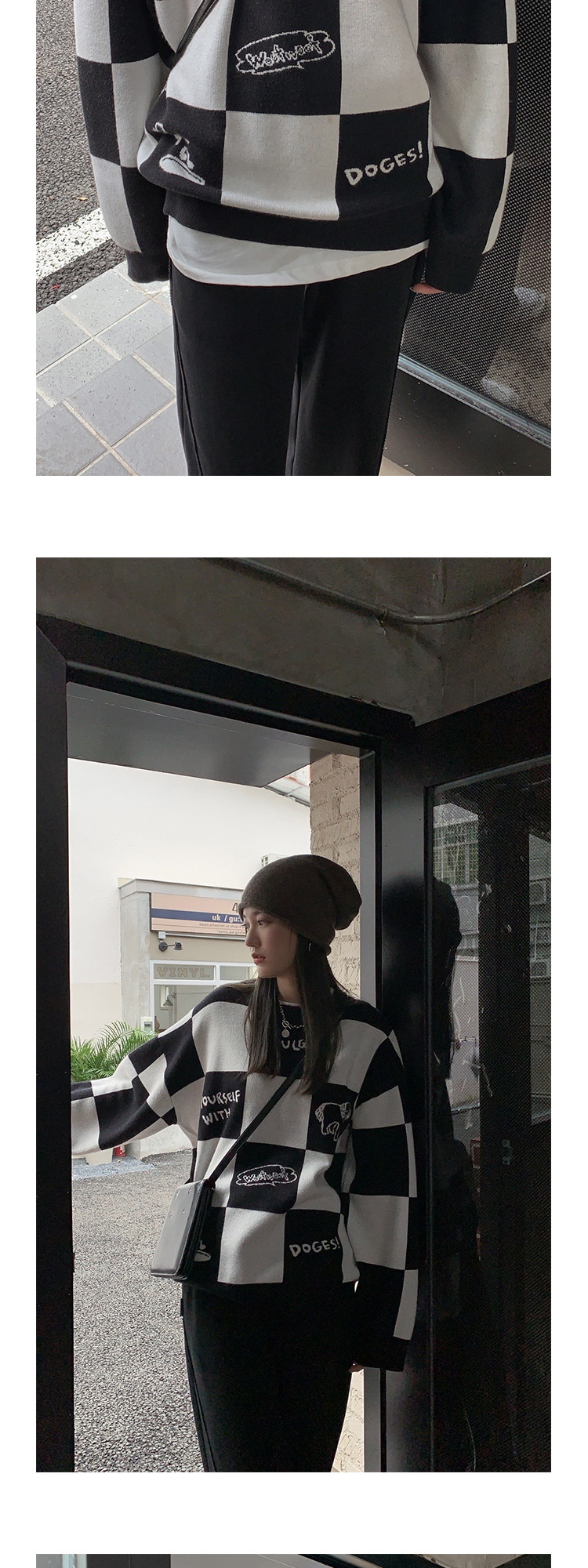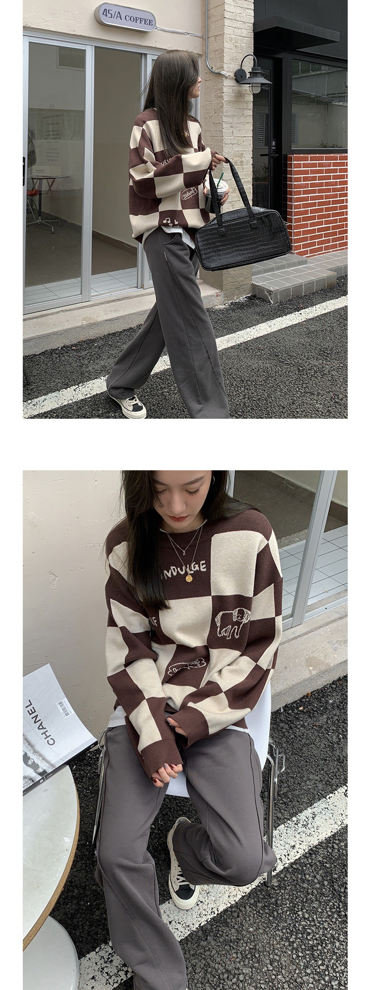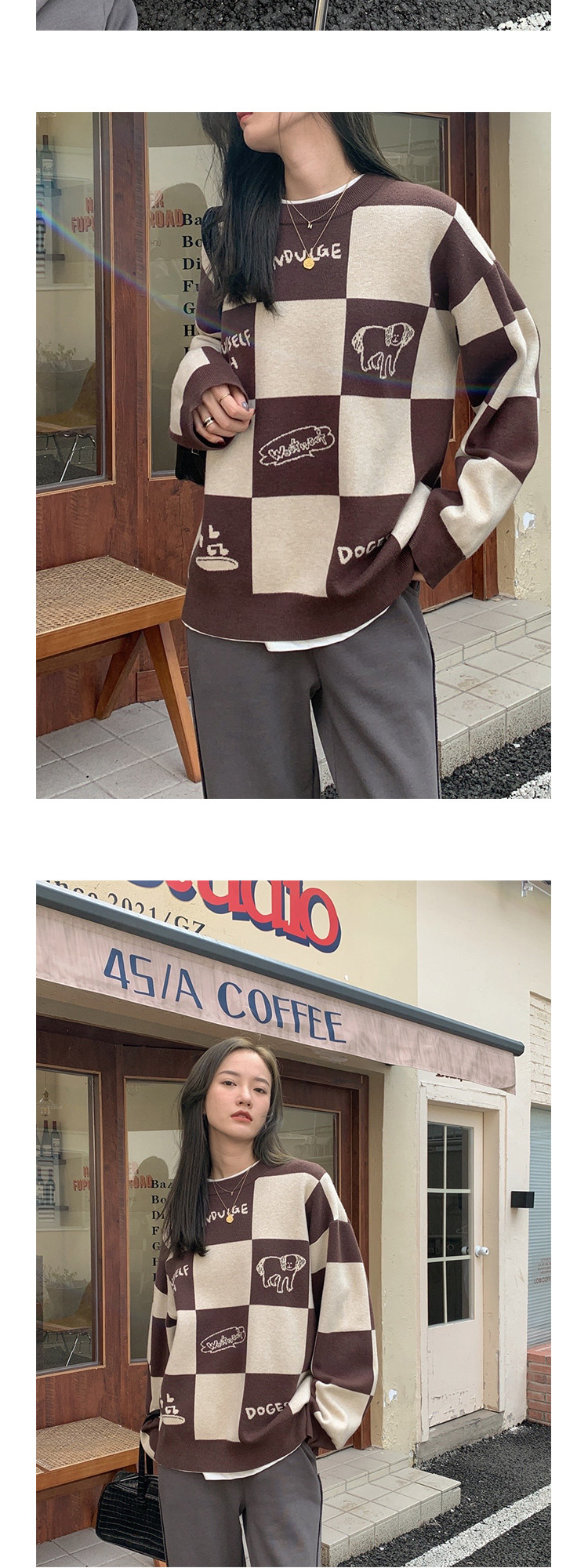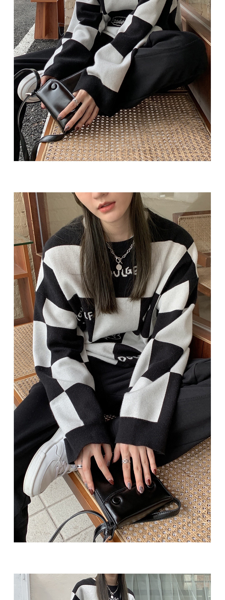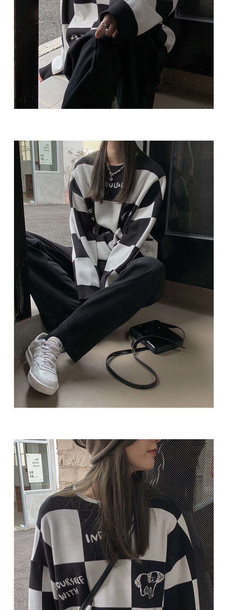 Шахматы, демисезонный свитер, длинная толстовка, в корейском стиле, средней длины