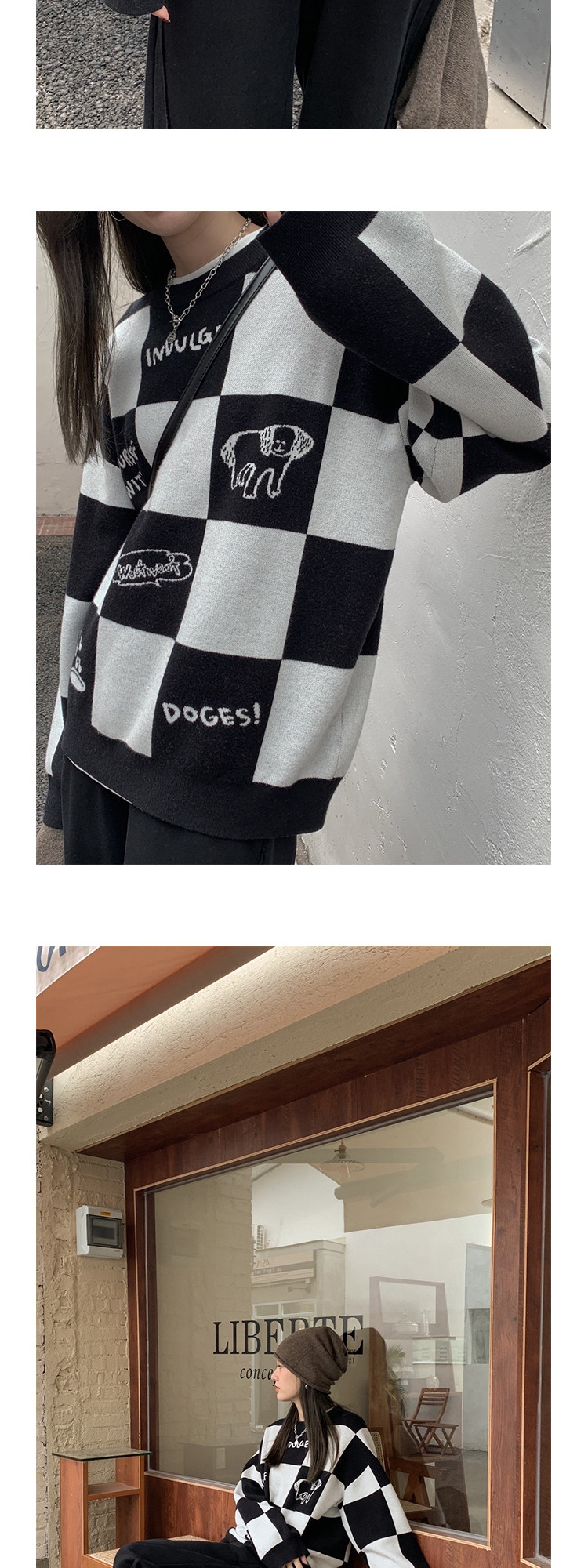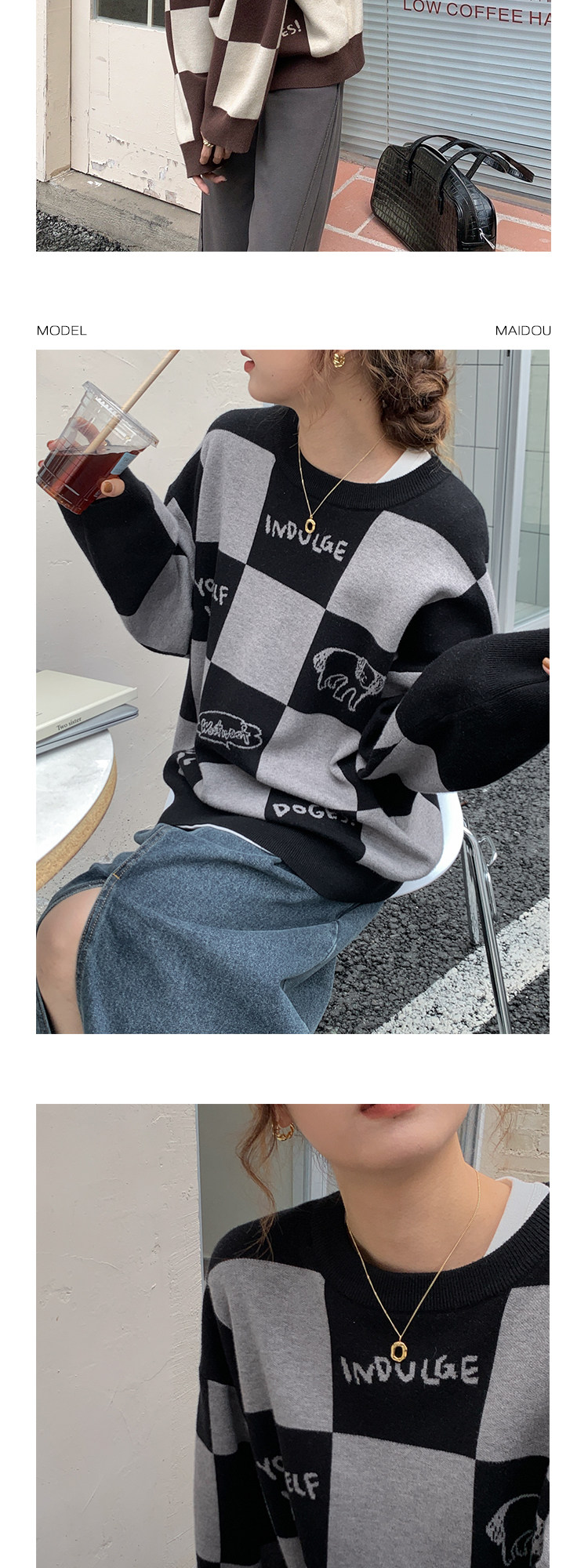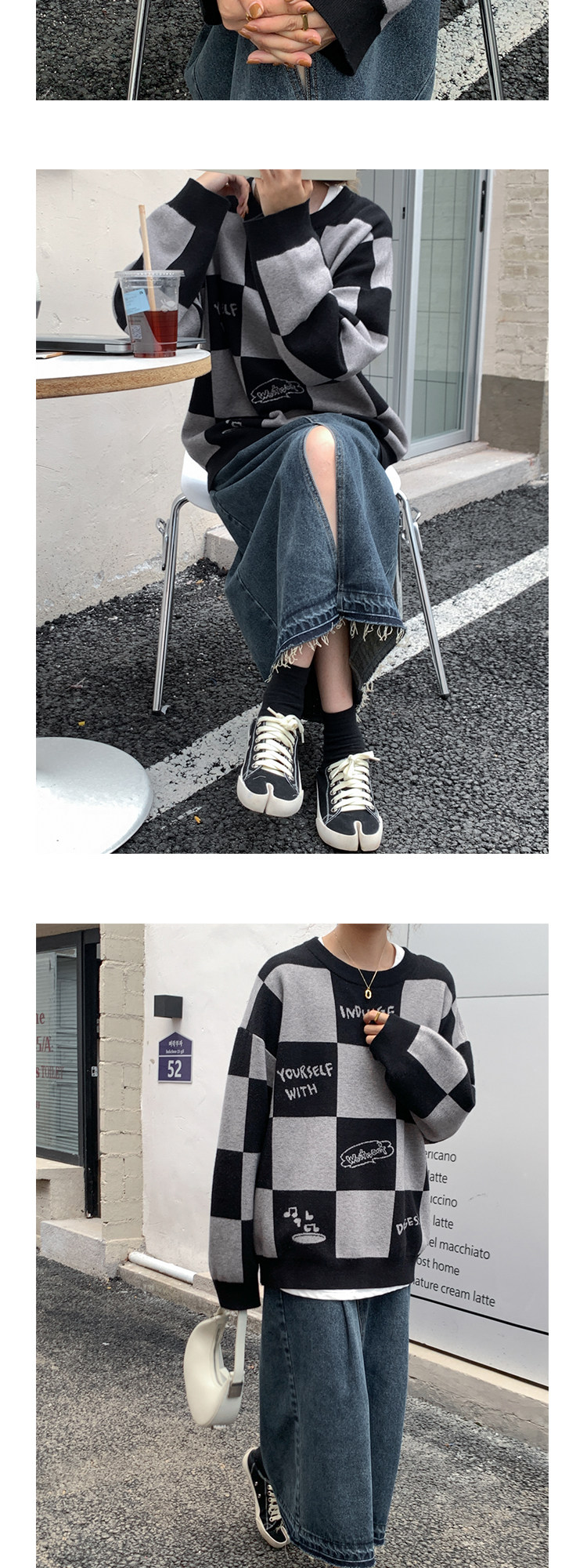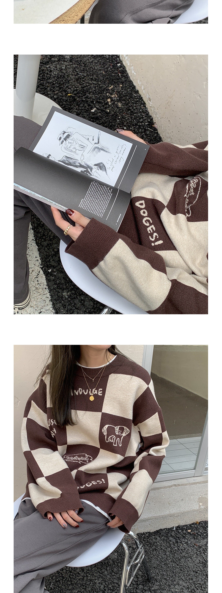 Шахматы, демисезонный свитер, длинная толстовка, в корейском стиле, средней длины