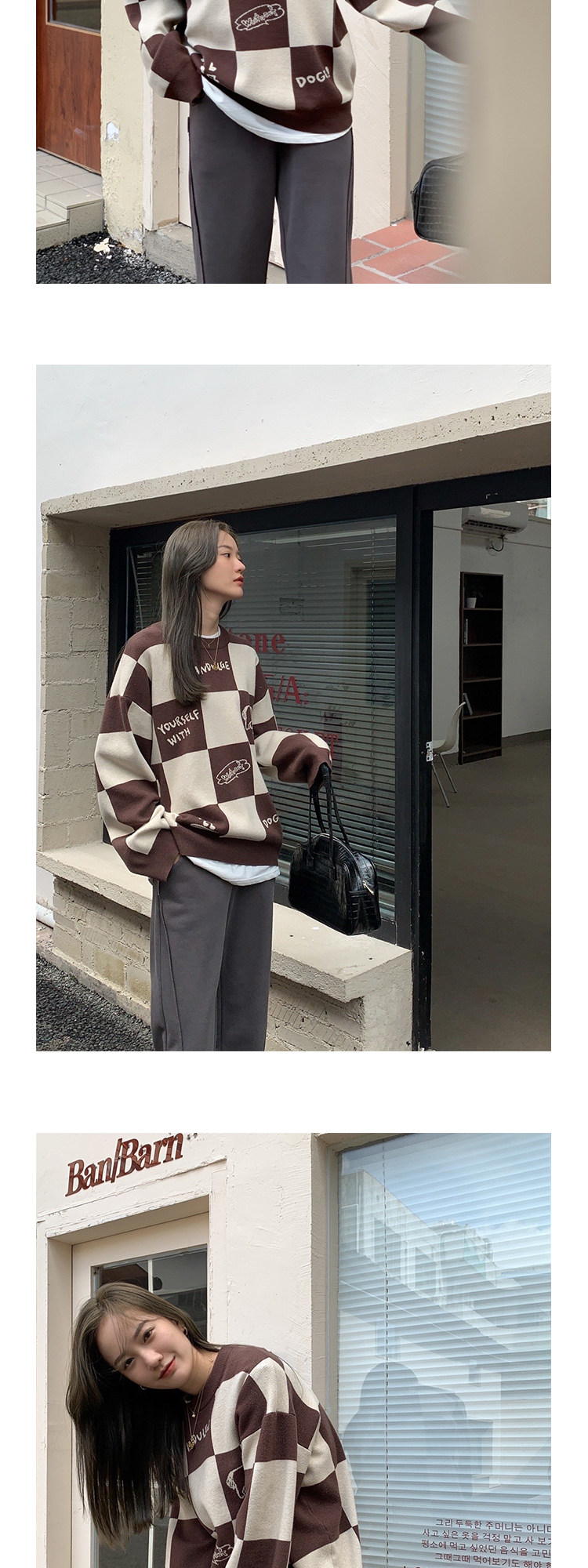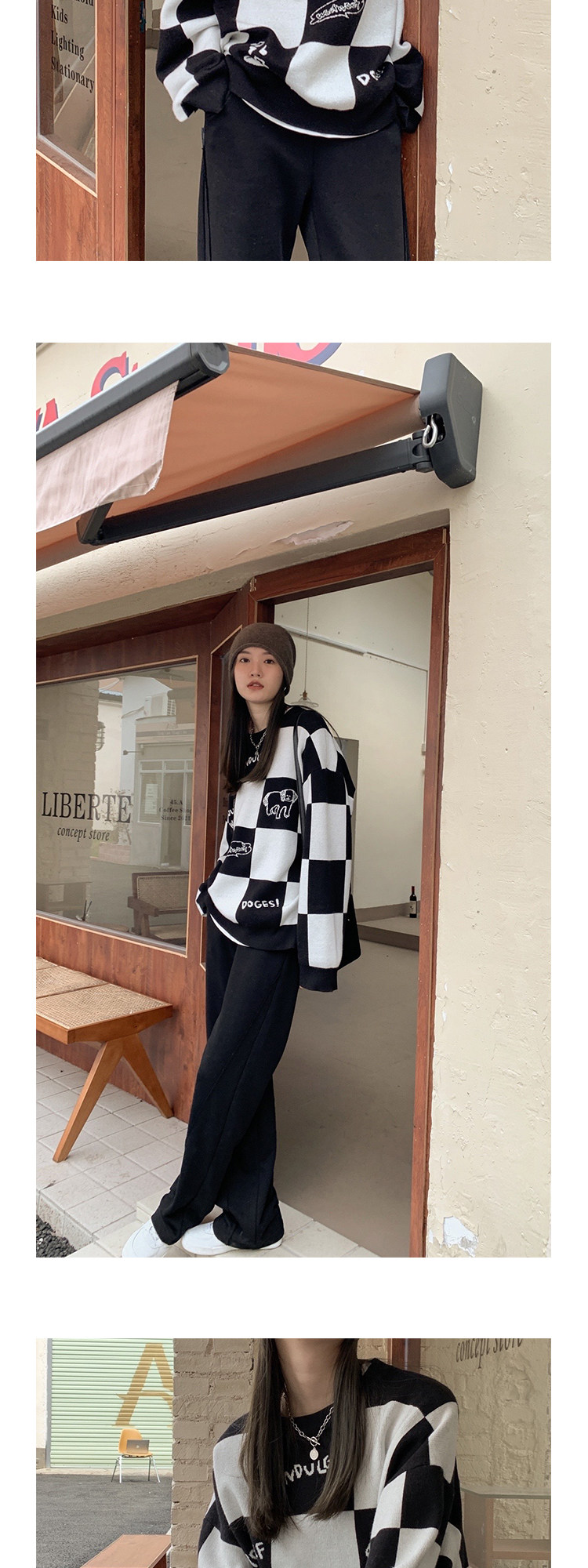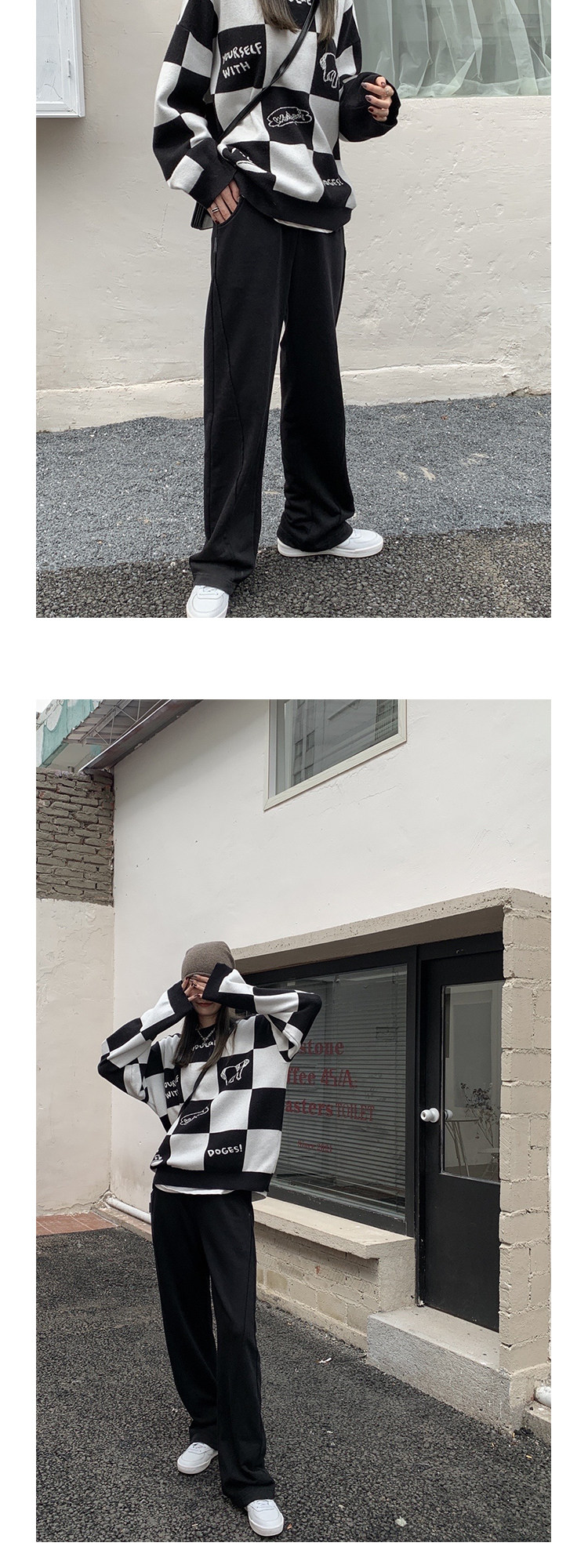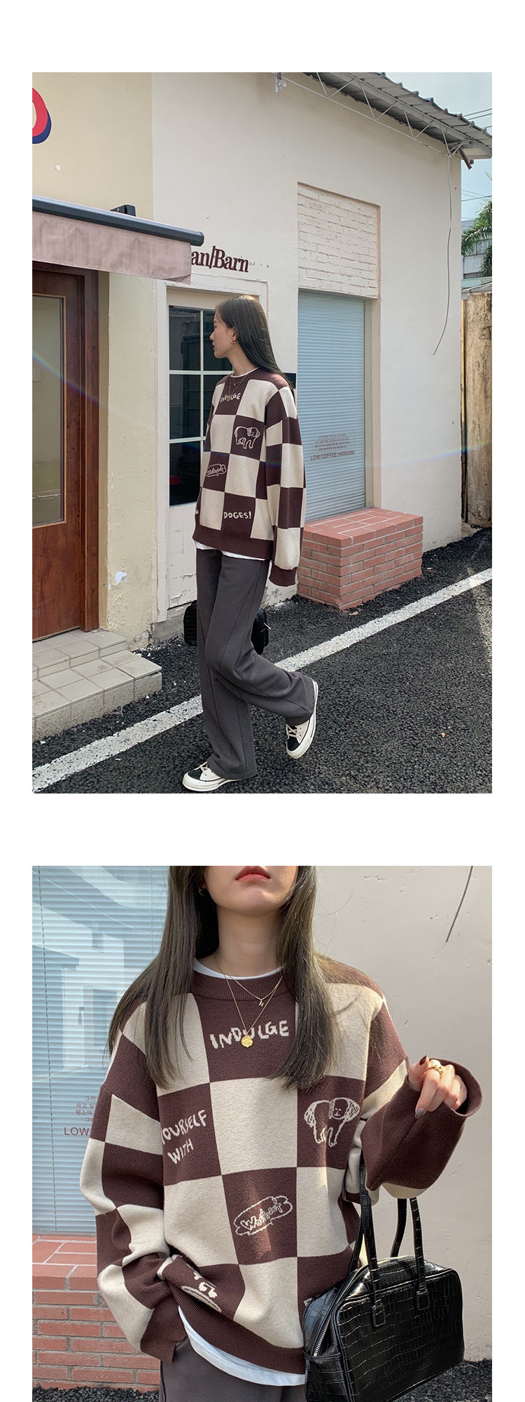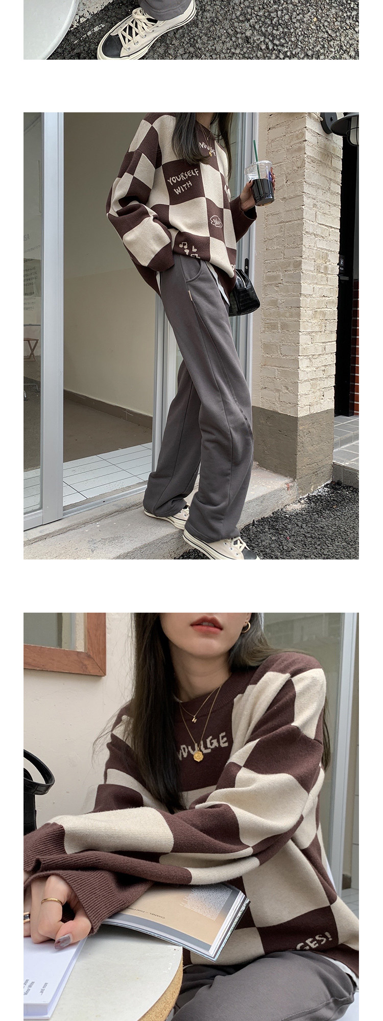 Шахматы, демисезонный свитер, длинная толстовка, в корейском стиле, средней длины